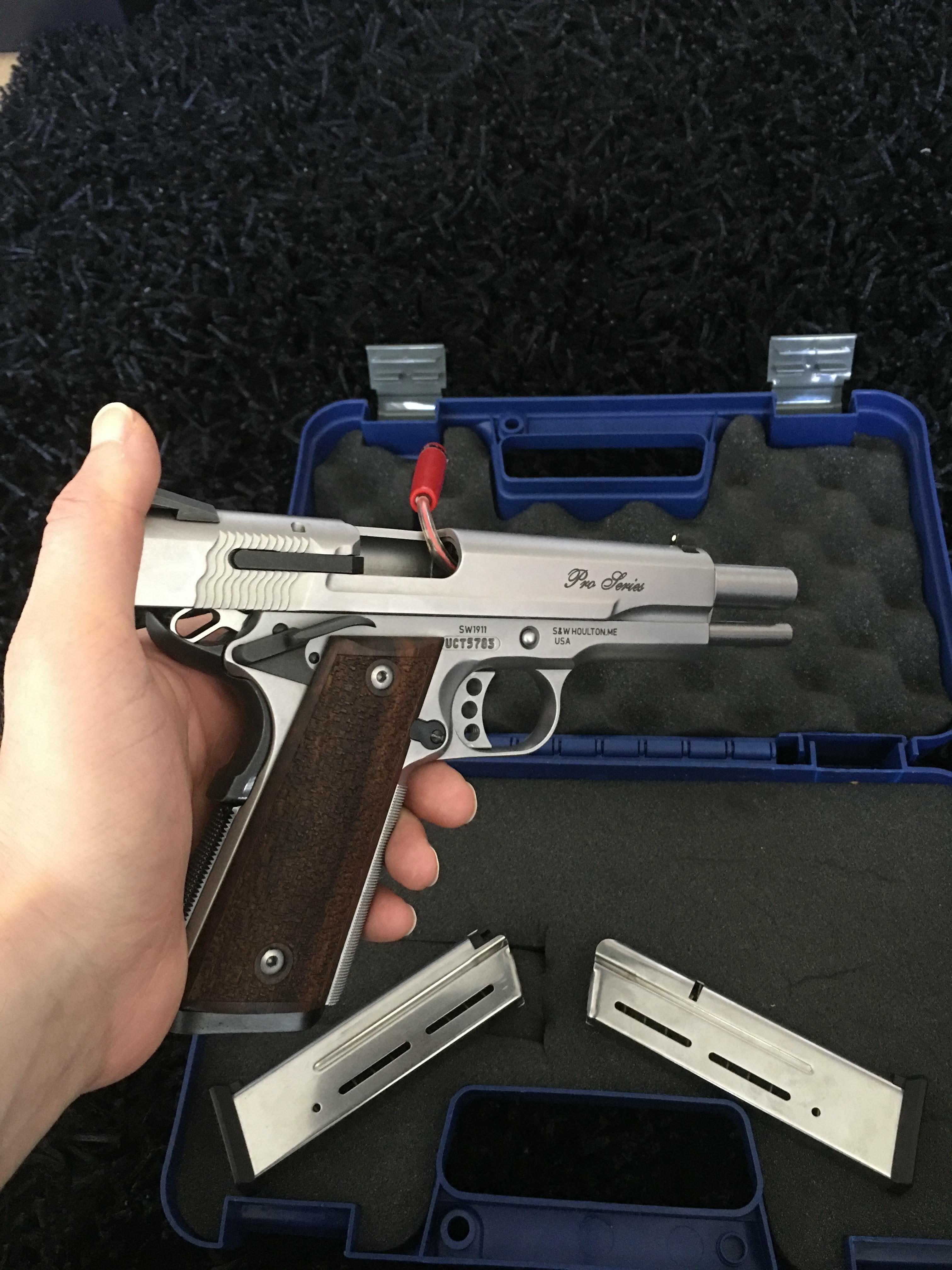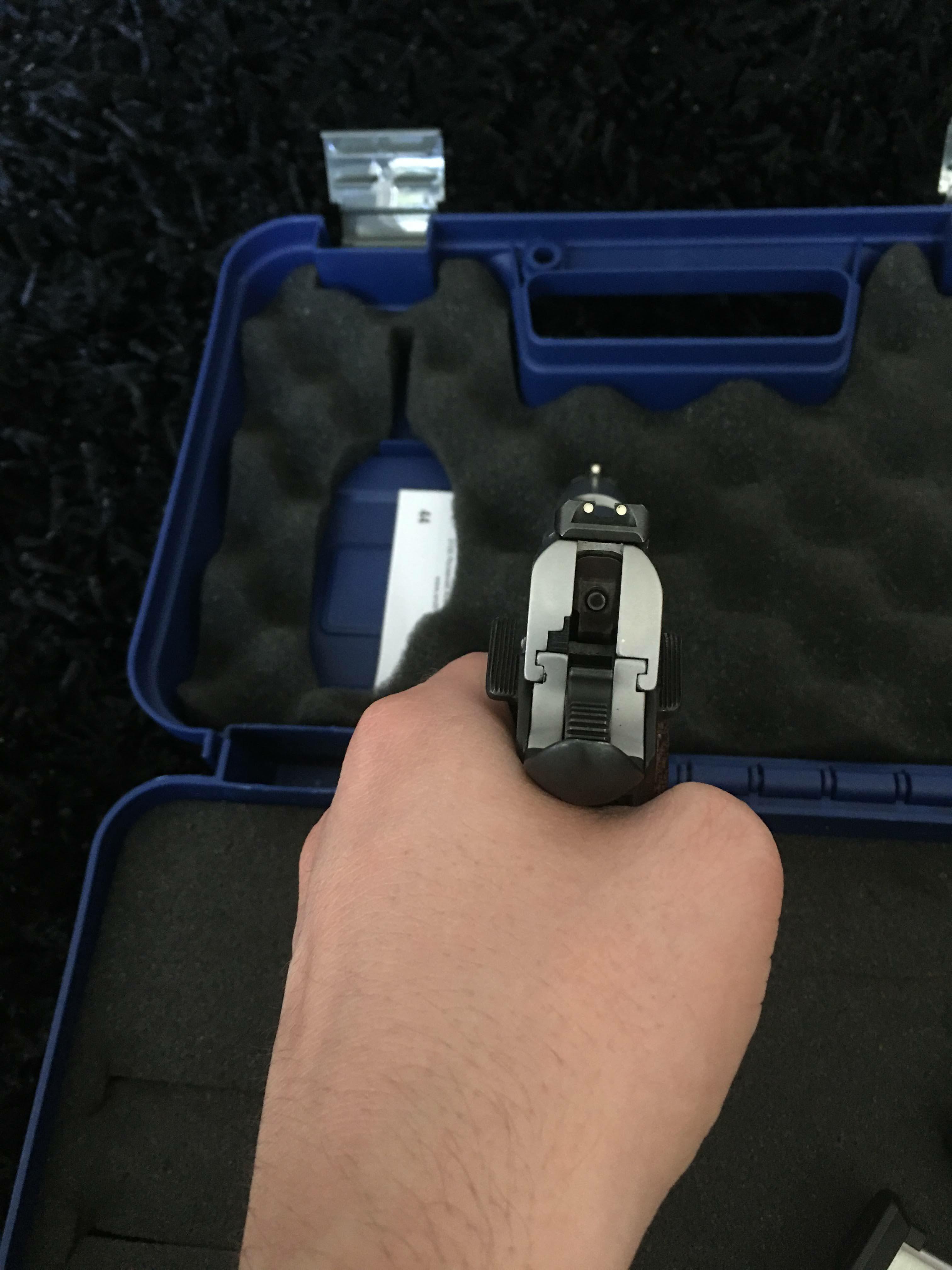 Min tanke är en 1911 5" 9*19 med fasta riktmedel.