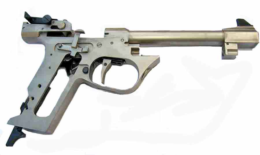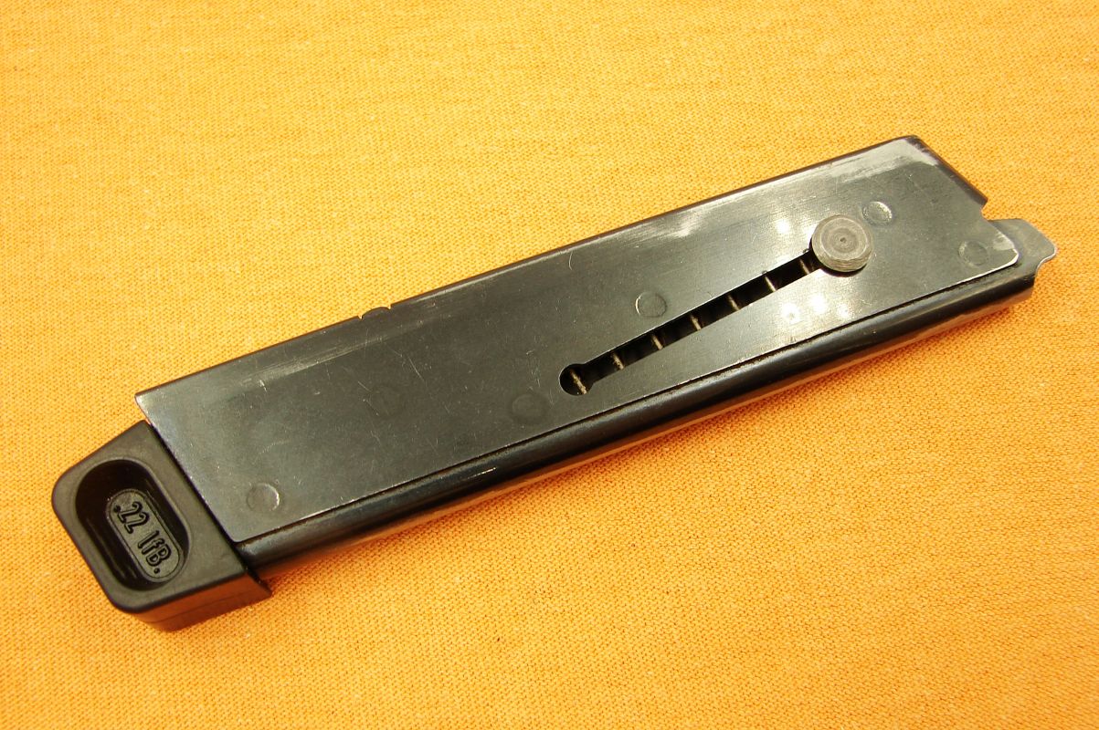 Bilden är ganska liten men du ser hur min ser ut, där går det ner en arm mot magasinbrunnen som tar i “knappen” på magasinet och trycker haken upp vid sista skottet.