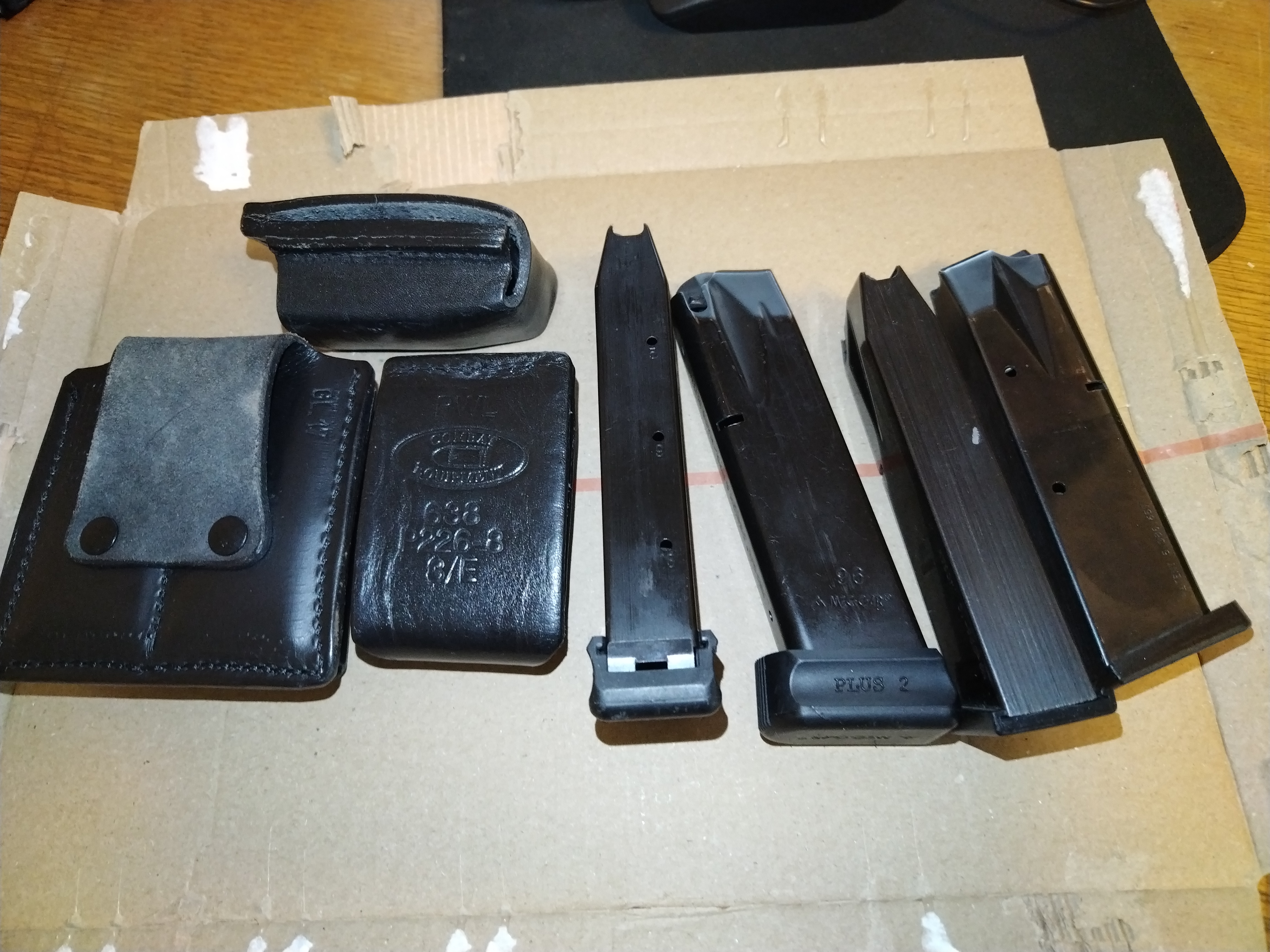1 st. Sickinger dubbelhölster i läder (egentligen för Glock 17 men lösa passbitar medföljer). 75:-