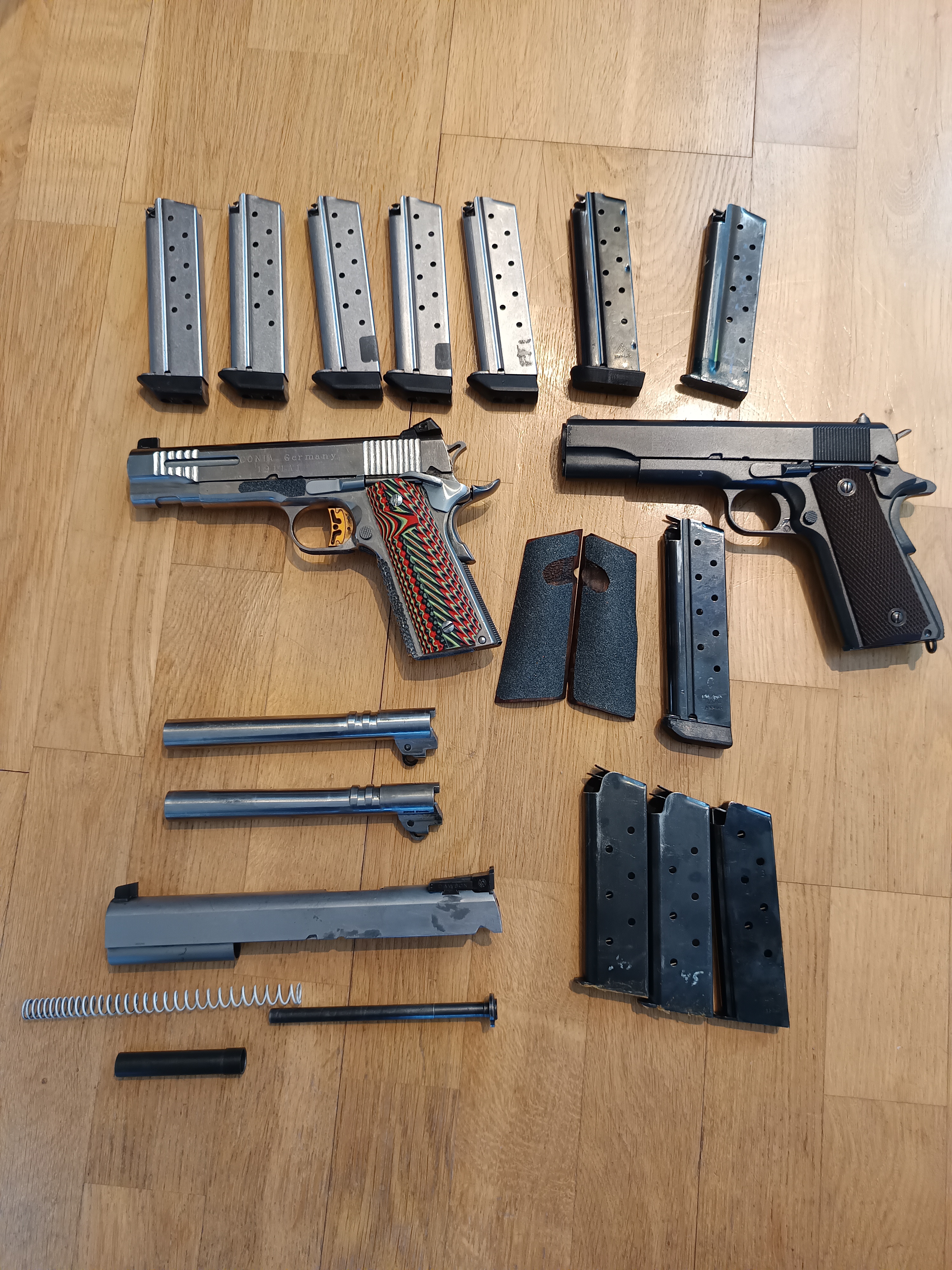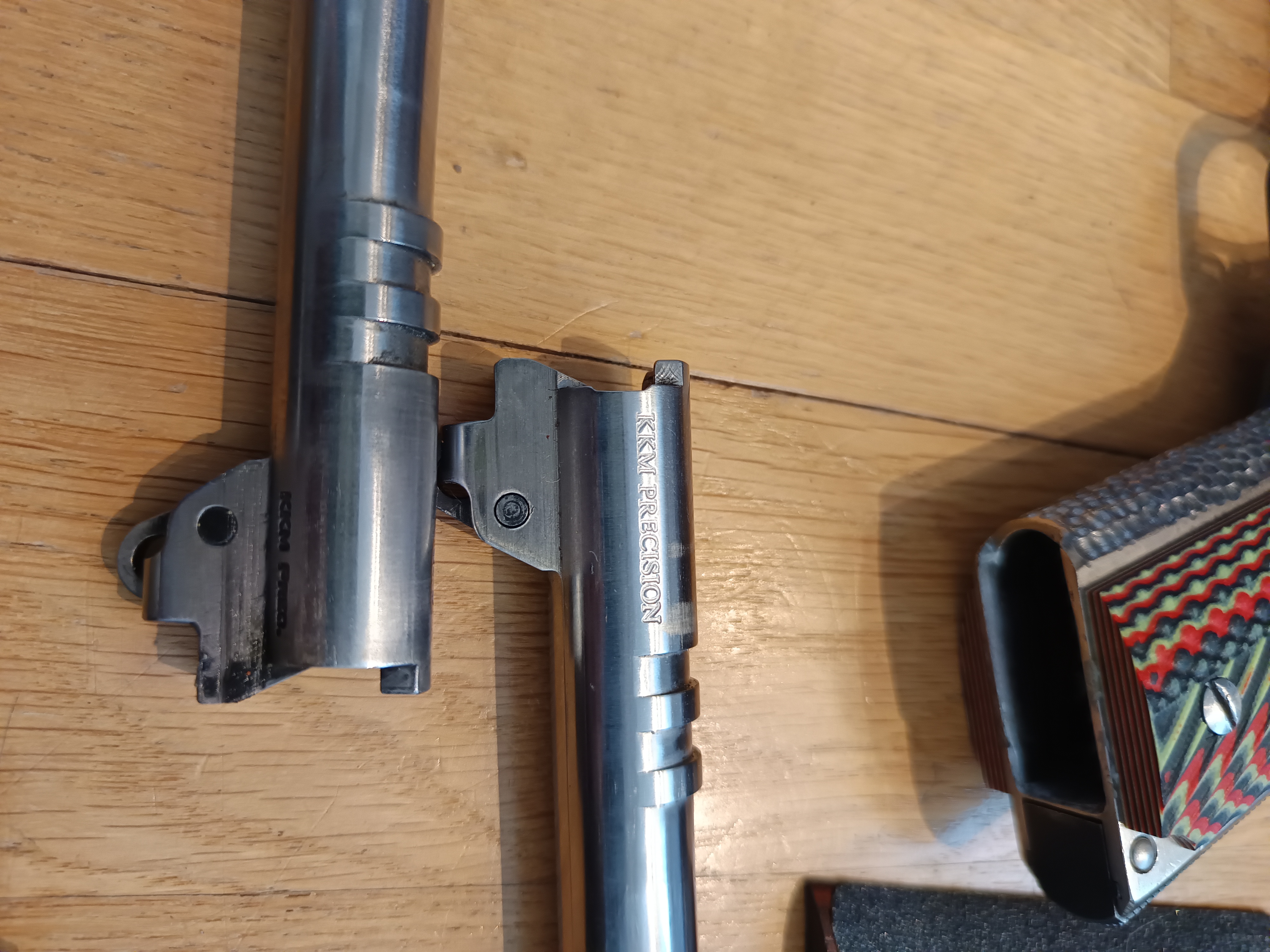 Rampad KKM bullpipor 45 ACP 5" + 10mm 6" + 9mm 6". Mindre än 5000 skott genom .45 och 9 pipor, 10mm/40SW mindre än 2000.