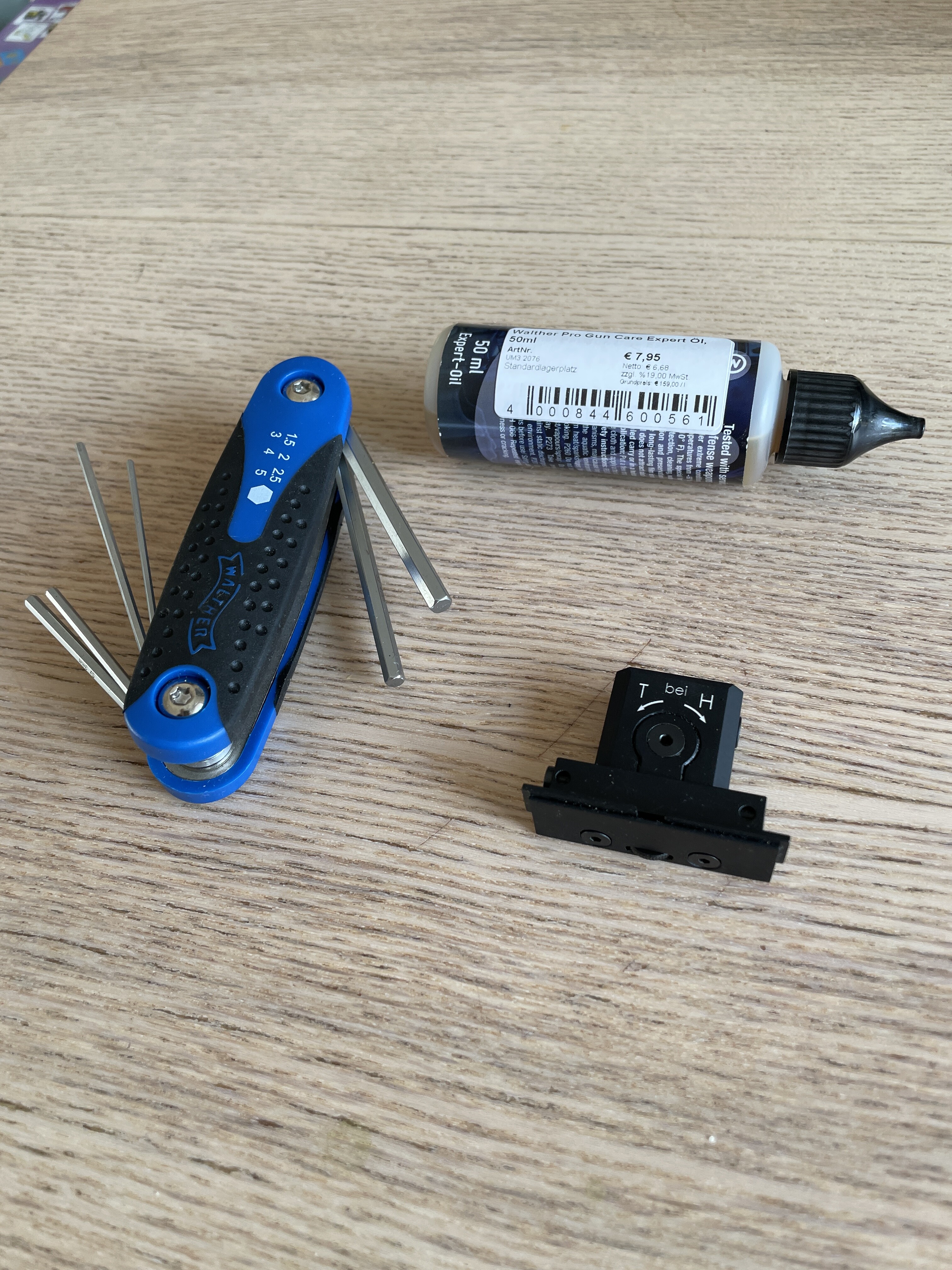 Jag har ett extra sikte (helt nytt) som på några sekunder kan bytas, tex om man inte vill skruva mellan fält och precisionsskytte. Även helt ny 50ml vapenolja samt ett princip oanvänt orginal multiverktyg för SSP. Bara dessa tre kostar nytt över 2000kr och är i nyskick/oanvända.