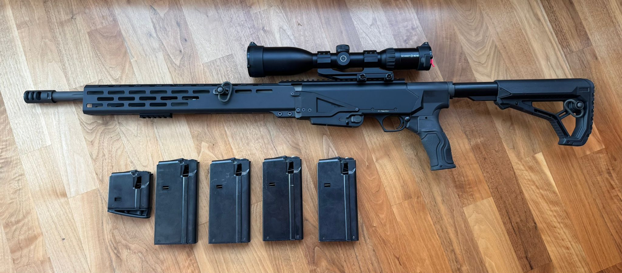 Browning Bar Match med Infitech handguard och kolvadapter, 4 stycken 20-skotts magasin och 1 jaktmagasin. Rekylbroms monterad.