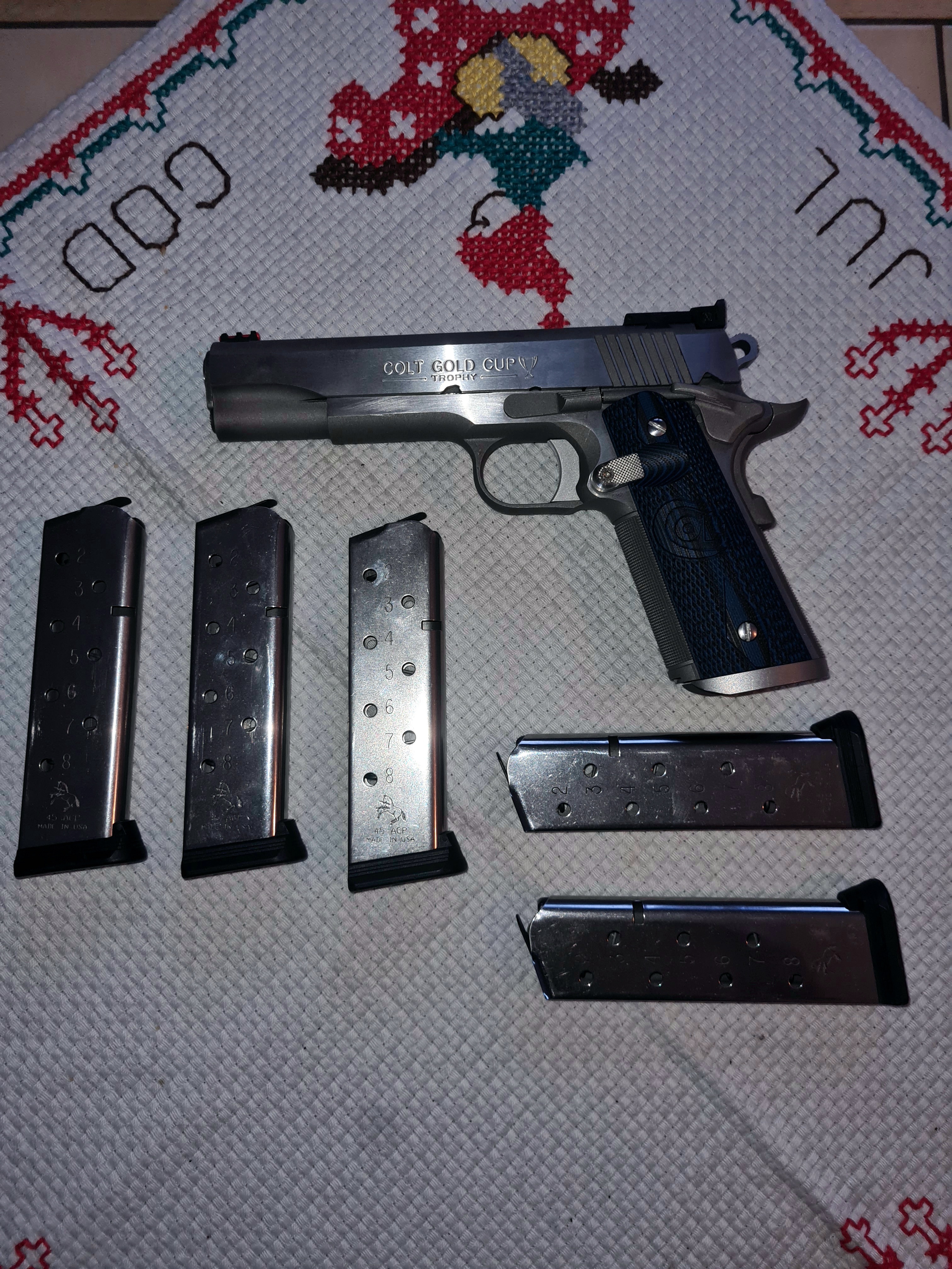 Säljer en colt 1911 45acp Gold cup trophy l de närmaste ny . Ändast gott 600 köpes plugg. 5 original magasin. wilson combat magasin release oversize . Nighthawk Custom short trigger . Även hel svart korn original colt . Wilson combat spring set. I övrigt helt original o orörd . Alla original papper . Original avtryckare Original magasin release är också med . Ny priset på allt är 27000 . Pris 17500 inklusive frakt . [20220106_143412_remastered] [20220106_143452_remastered] [20220106_143514…