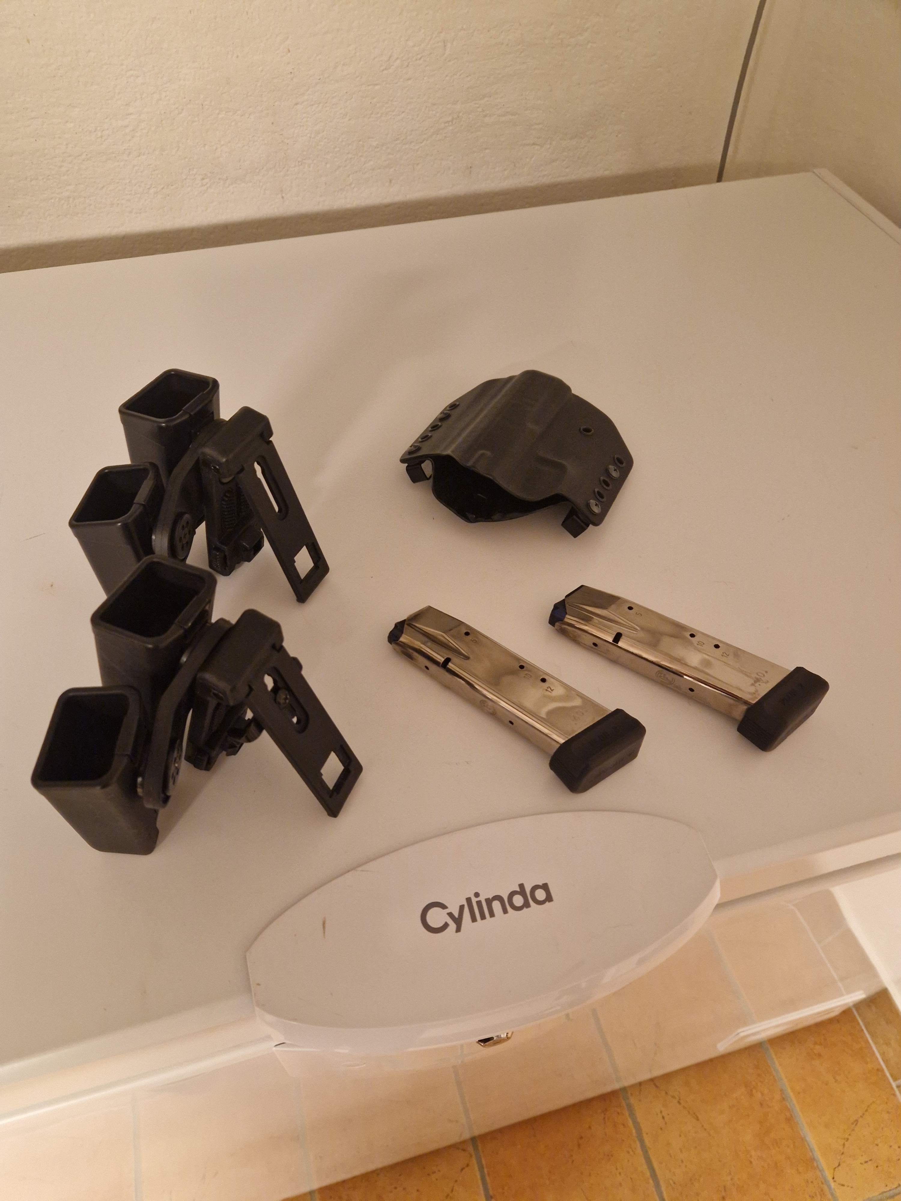 Allt bra skick. Hölster, kydex. Magasinhållare har chips för bälte.