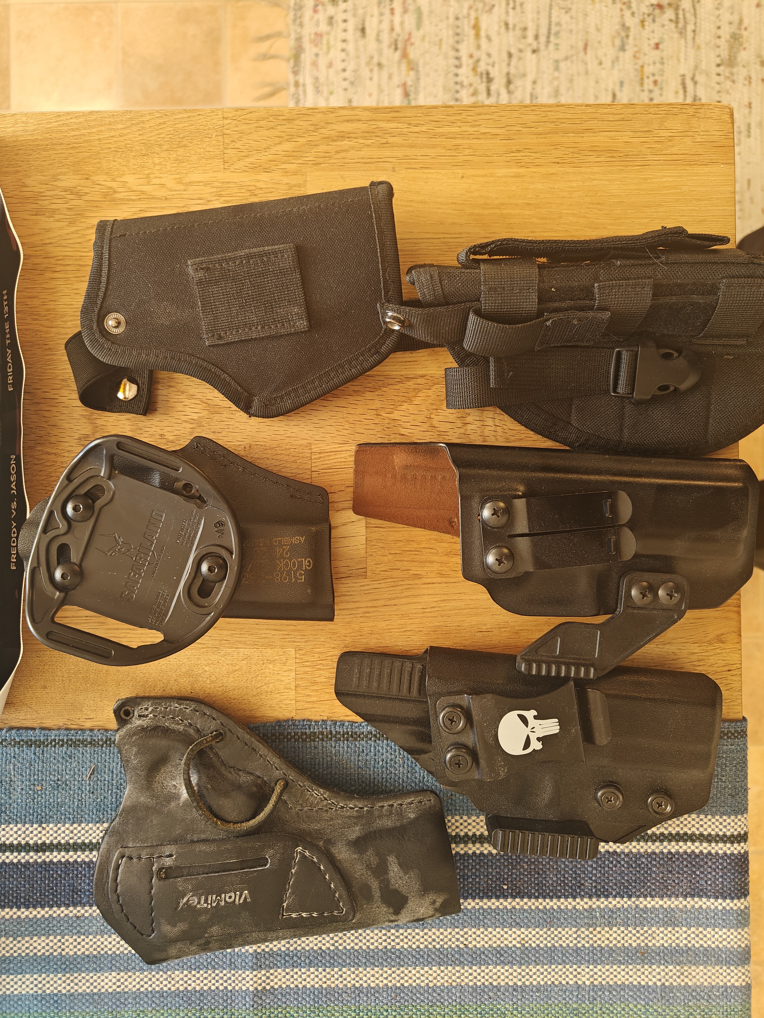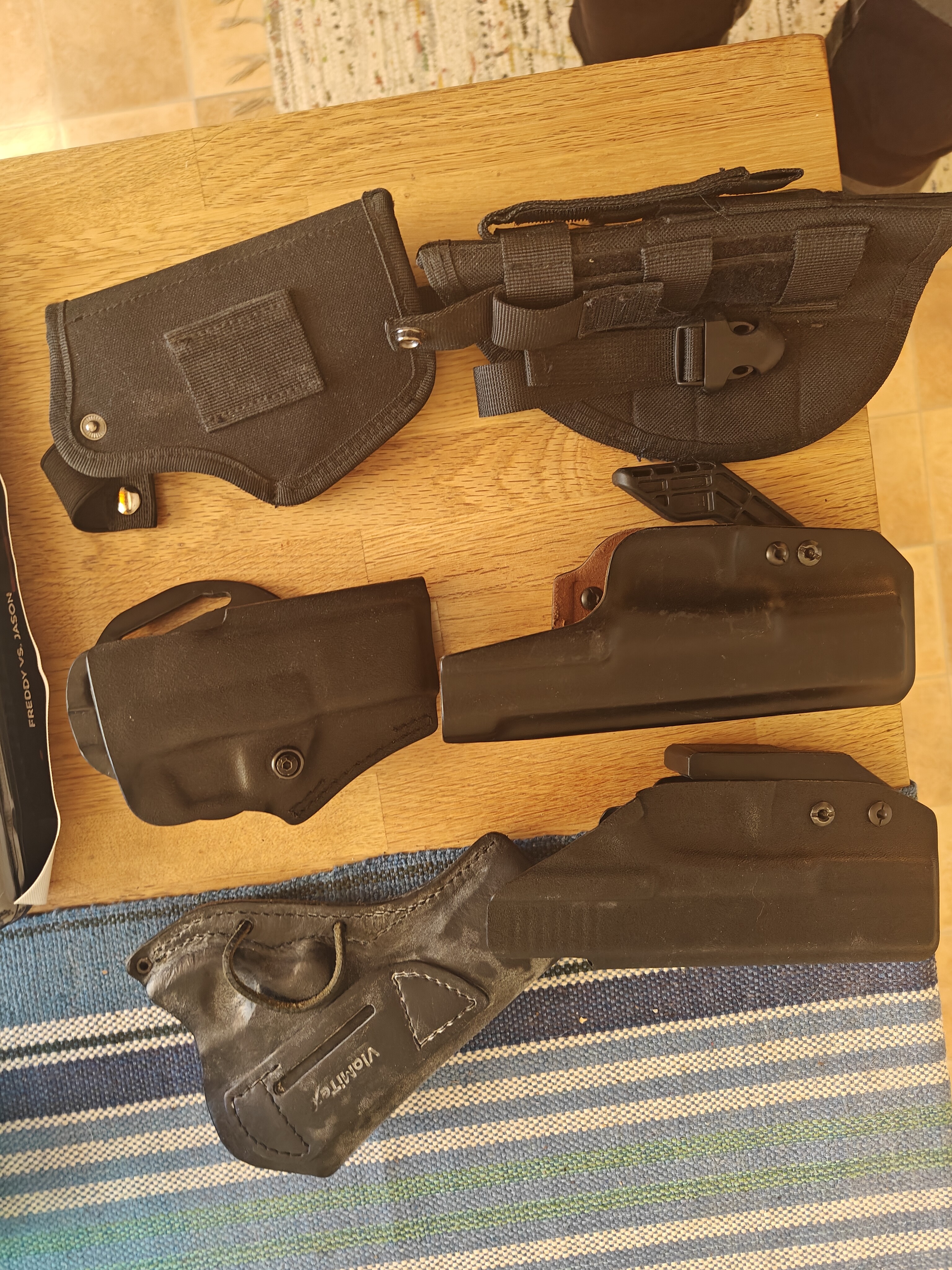 Har några hölster,vet inte exakt till vilka pistoler de kan tänkas passa till men gissar glock