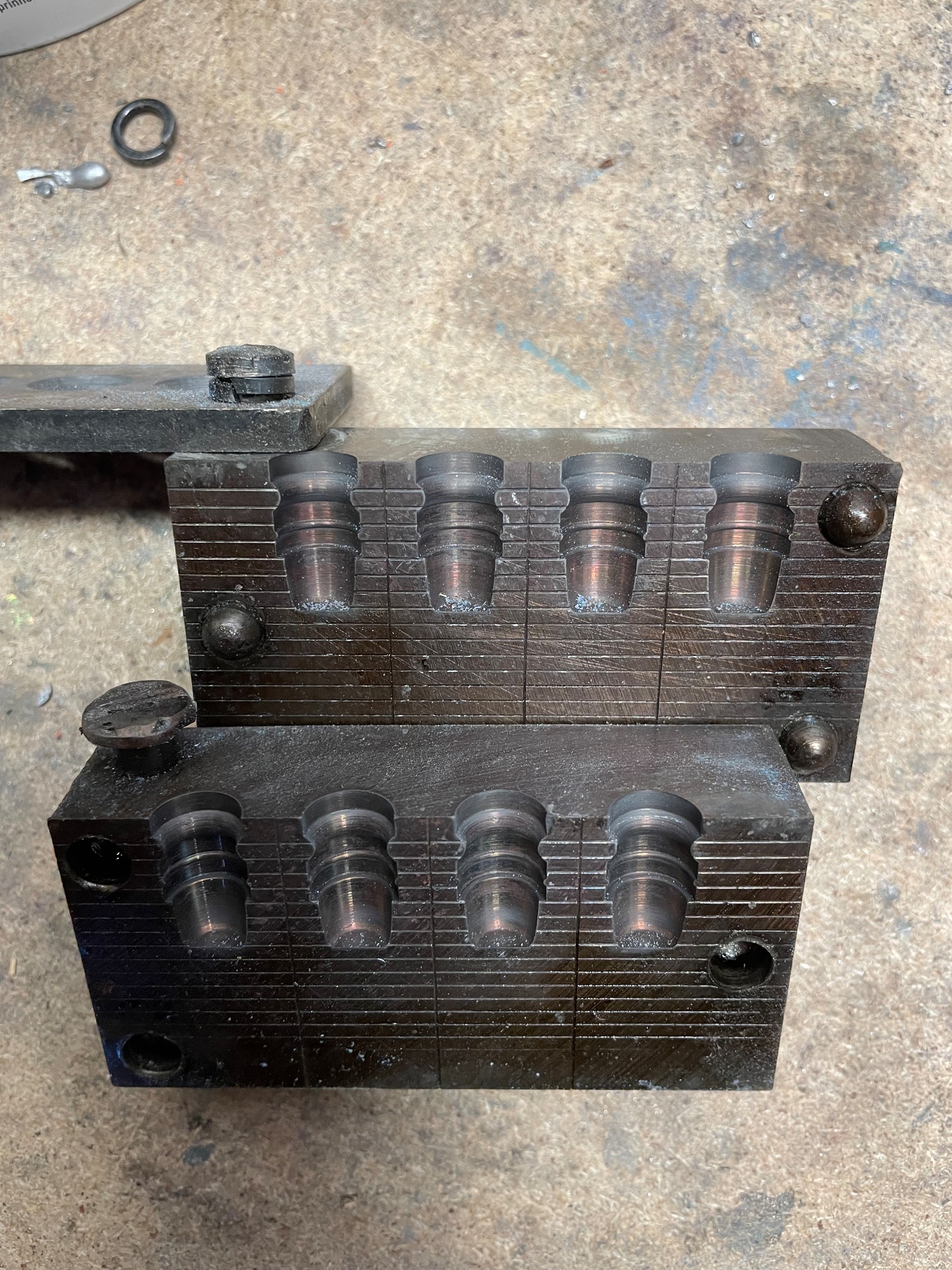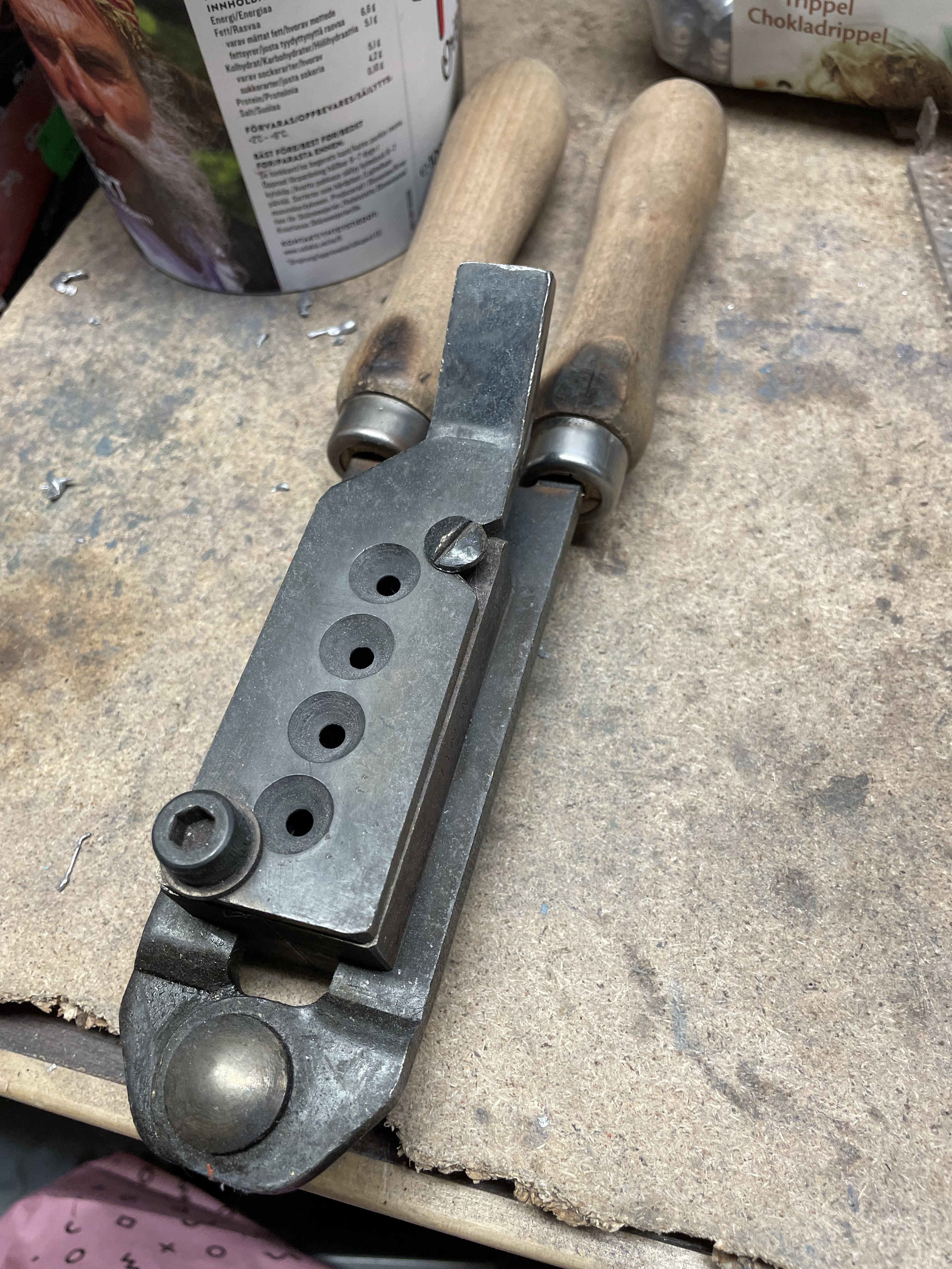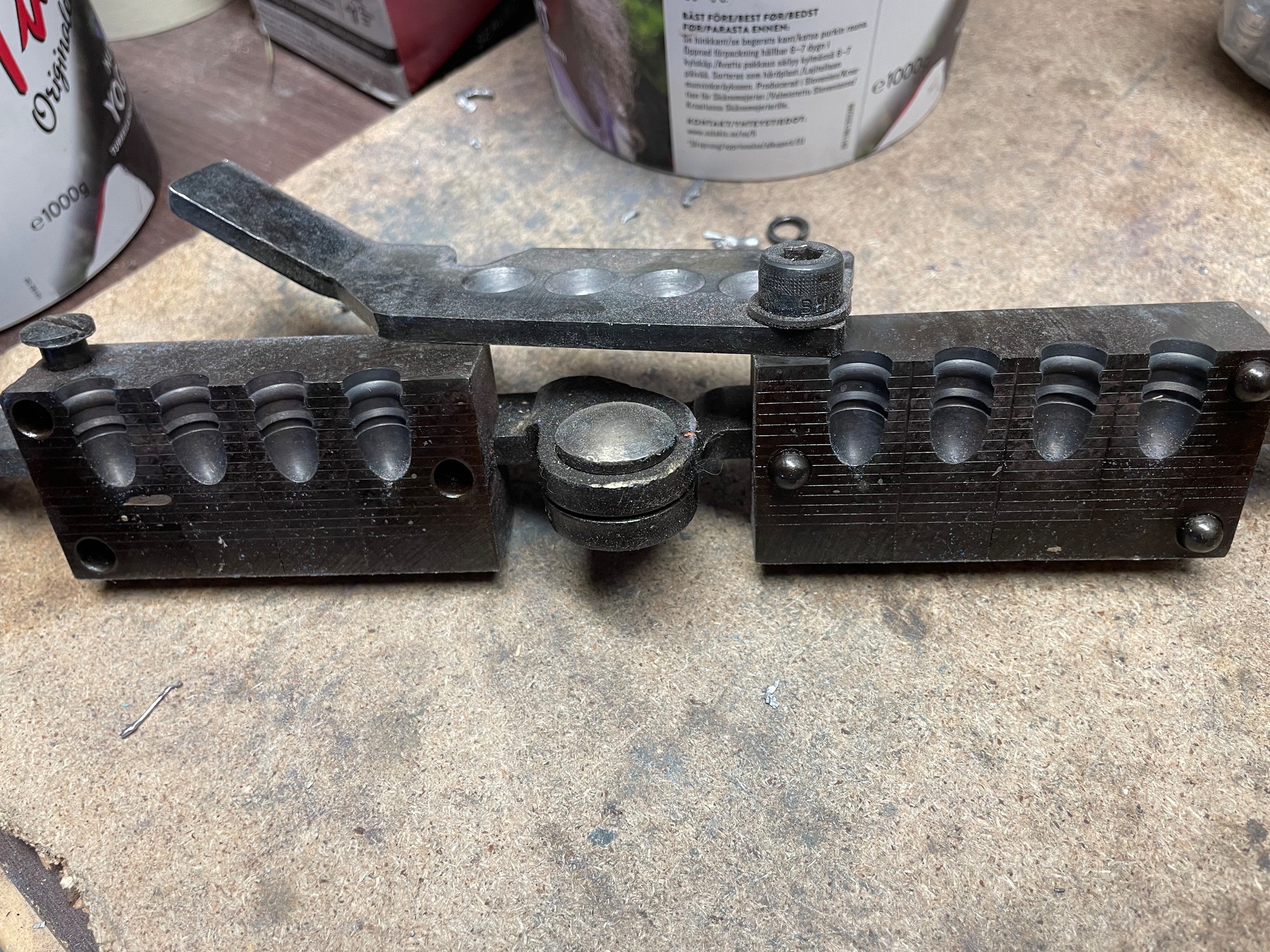 SÅLT Lyman 4-hålsblock i gjutjärn RN 158 gr. Lite nött men släpper bra kulor 750 kr med handtag