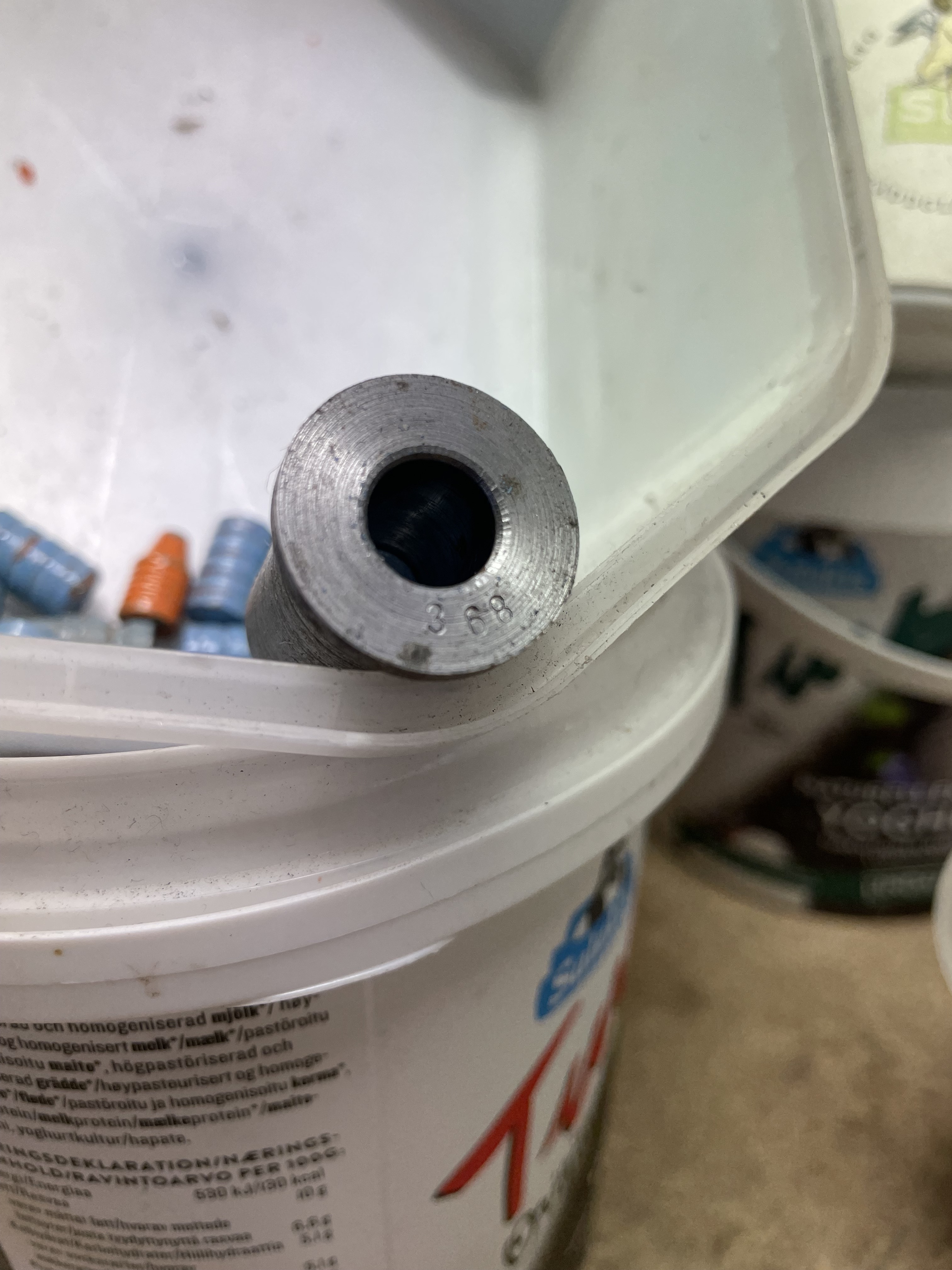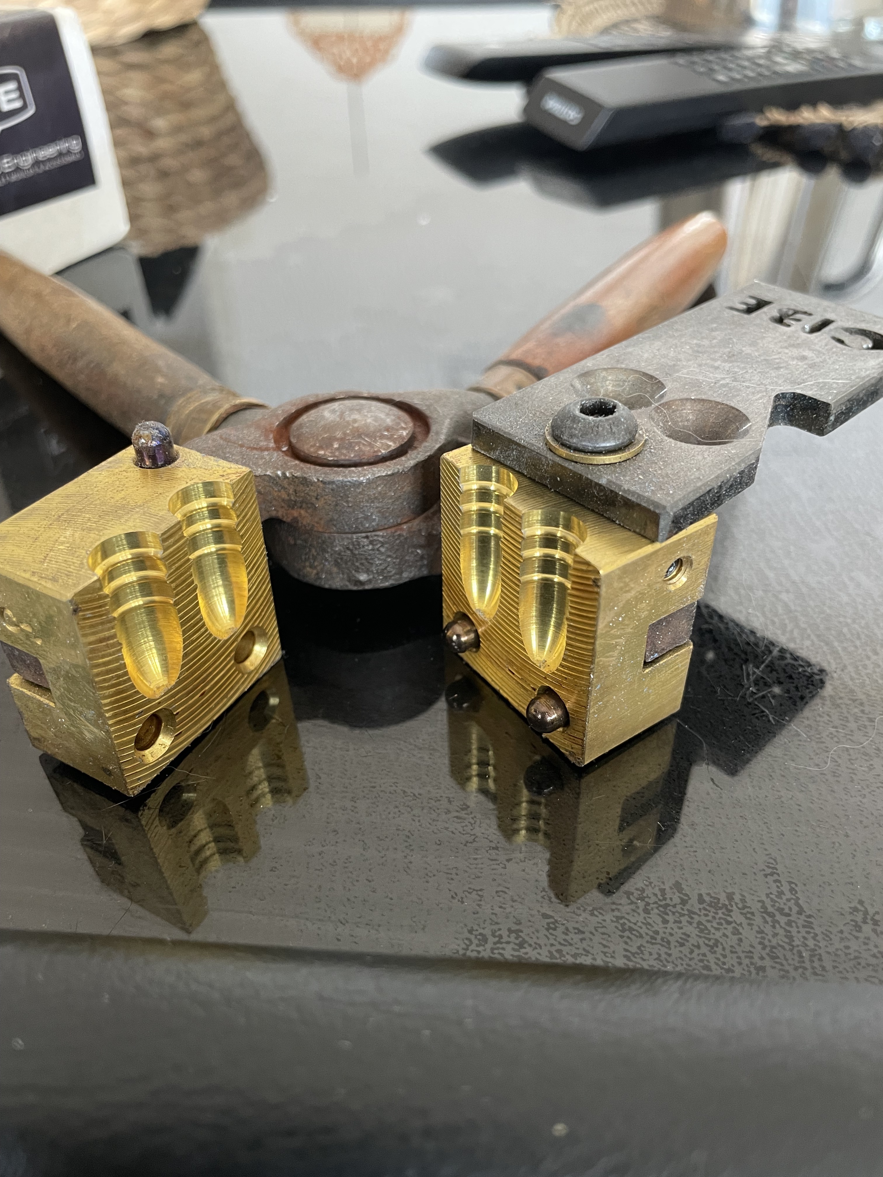 CBE mässingblock 2-håls kal .366, 210 gr rundnos till 9,3 studsare. Helt i nyskick med med papplåda och insexnycklar samt kalibreringsöga till Starpress .368 1300 kr med handtag