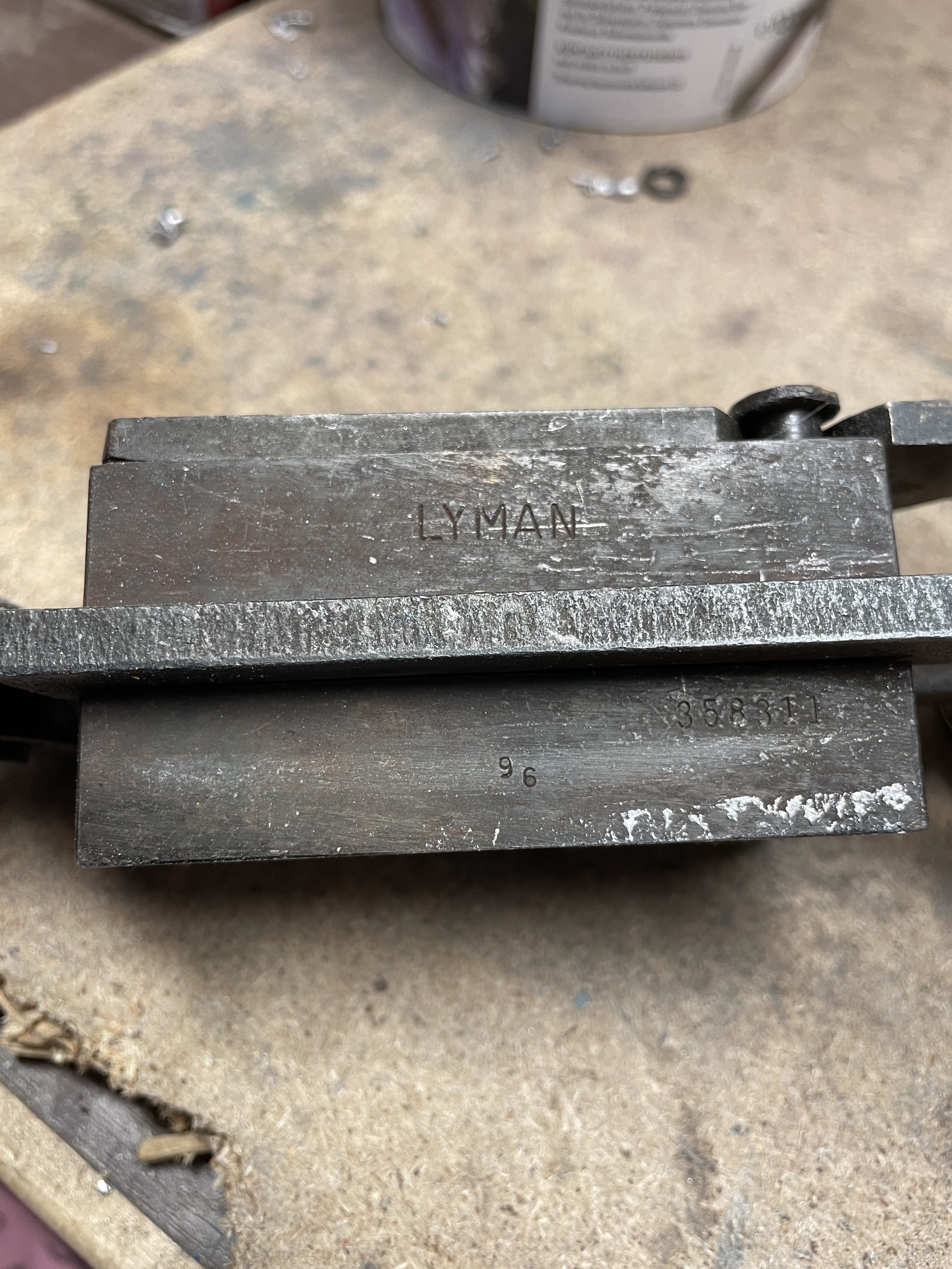 SÅLT Lyman 4-hålsblock i gjutjärn swc 158 gr. Bra skick 600 kr utan handtag