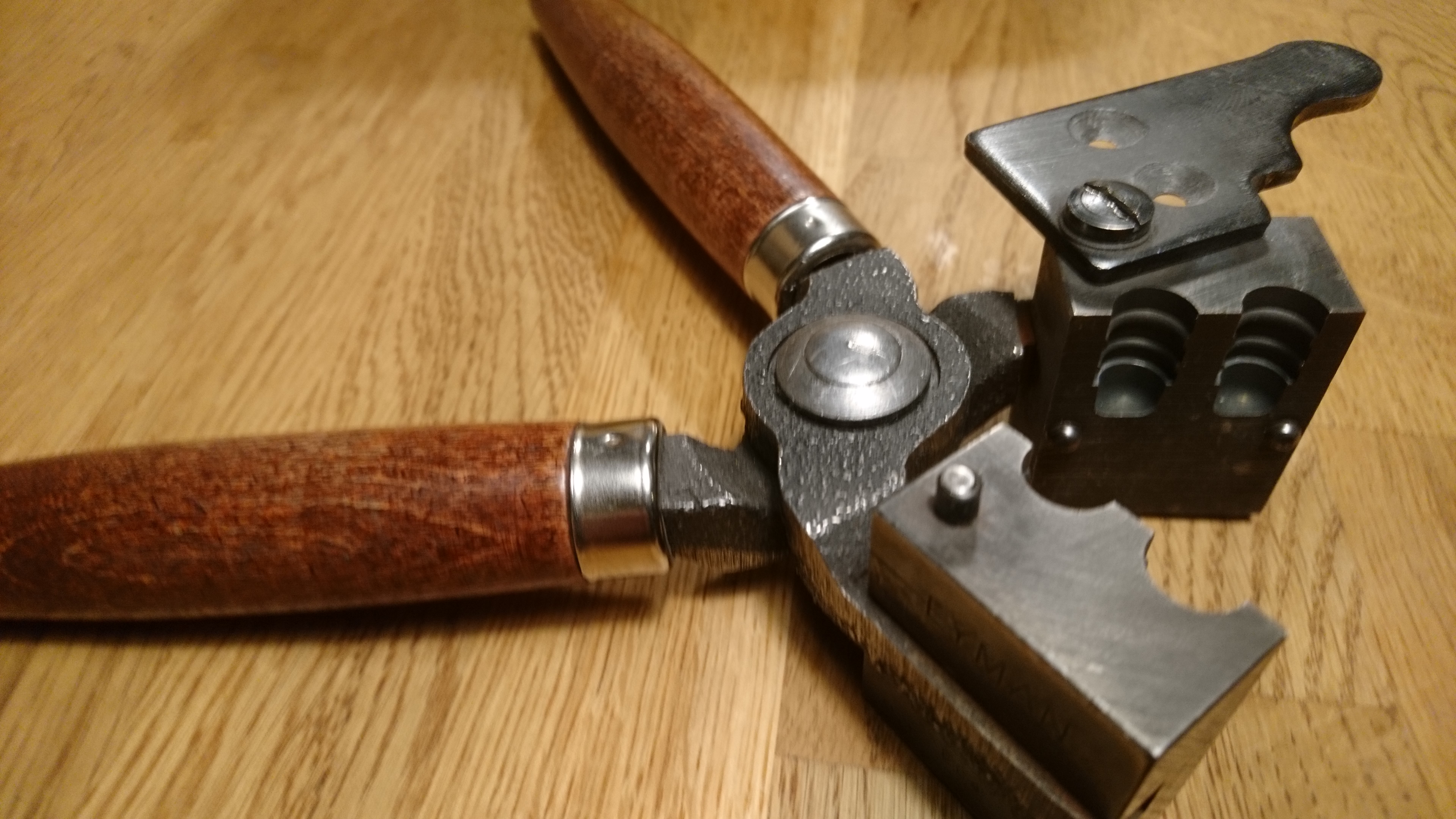 Lyman 2håls block med handtag till38/357 swc 600:-