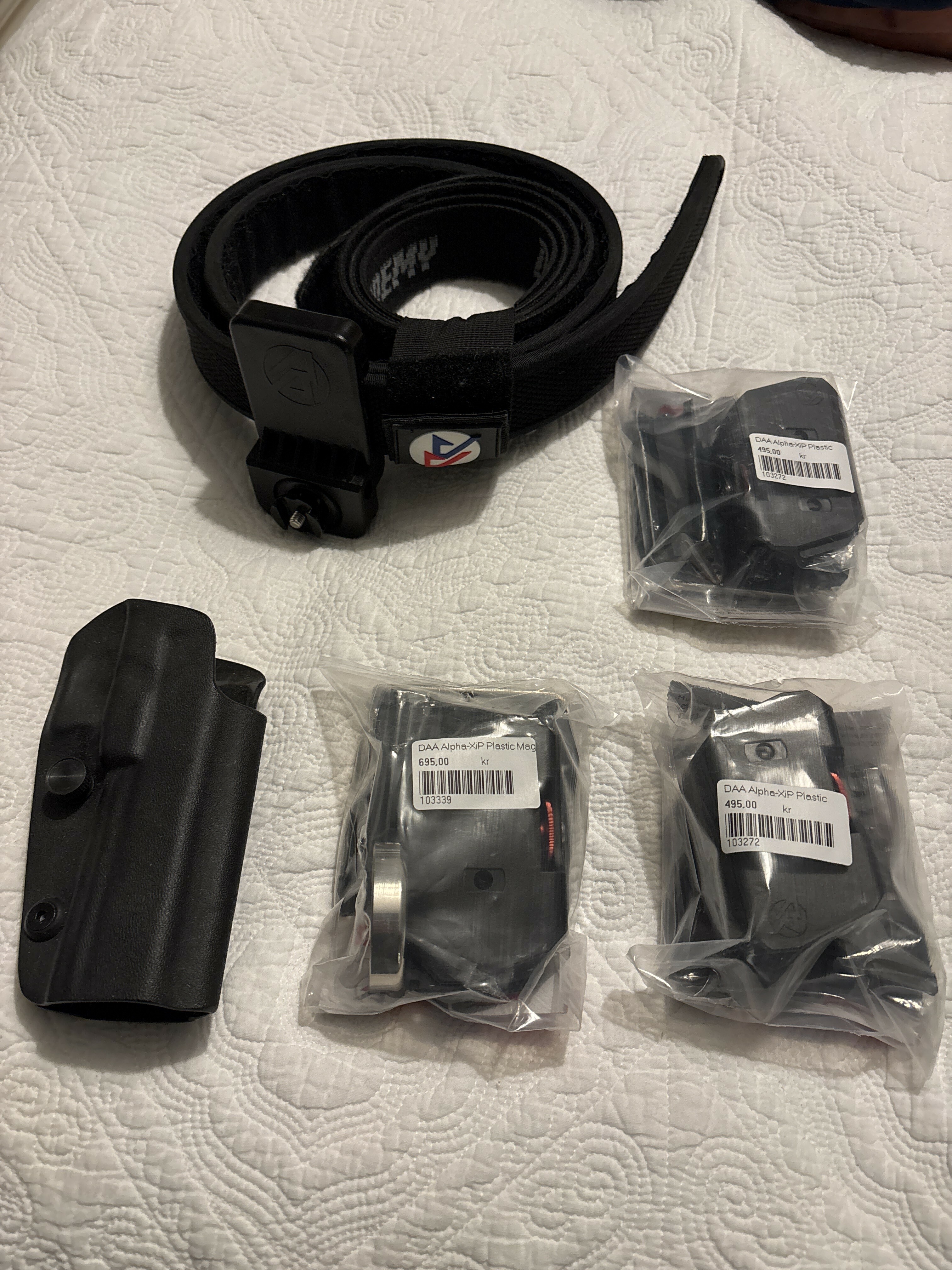 DAA rigg med hölster samt 3 st helt nya magasin hållare varav ett med magnet. (Beg bälte och hölster, övrigt ouppackat)