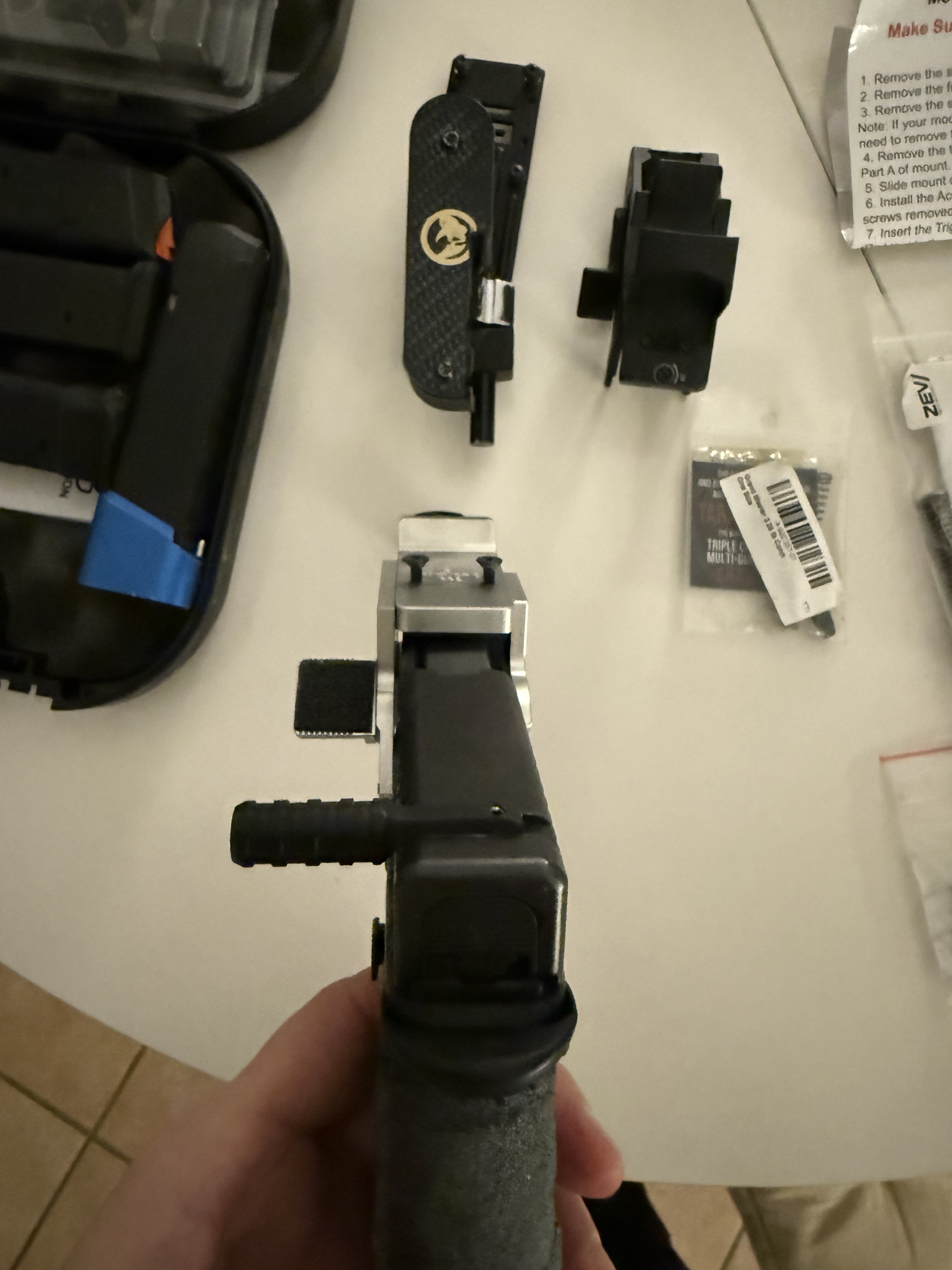 Optikfäste från Toni systems med vector optics rödpunkt (OPTIKEN MEDFÖLJER). Detta fäste har kärvat i gängorna och skulle behöva gängas om.