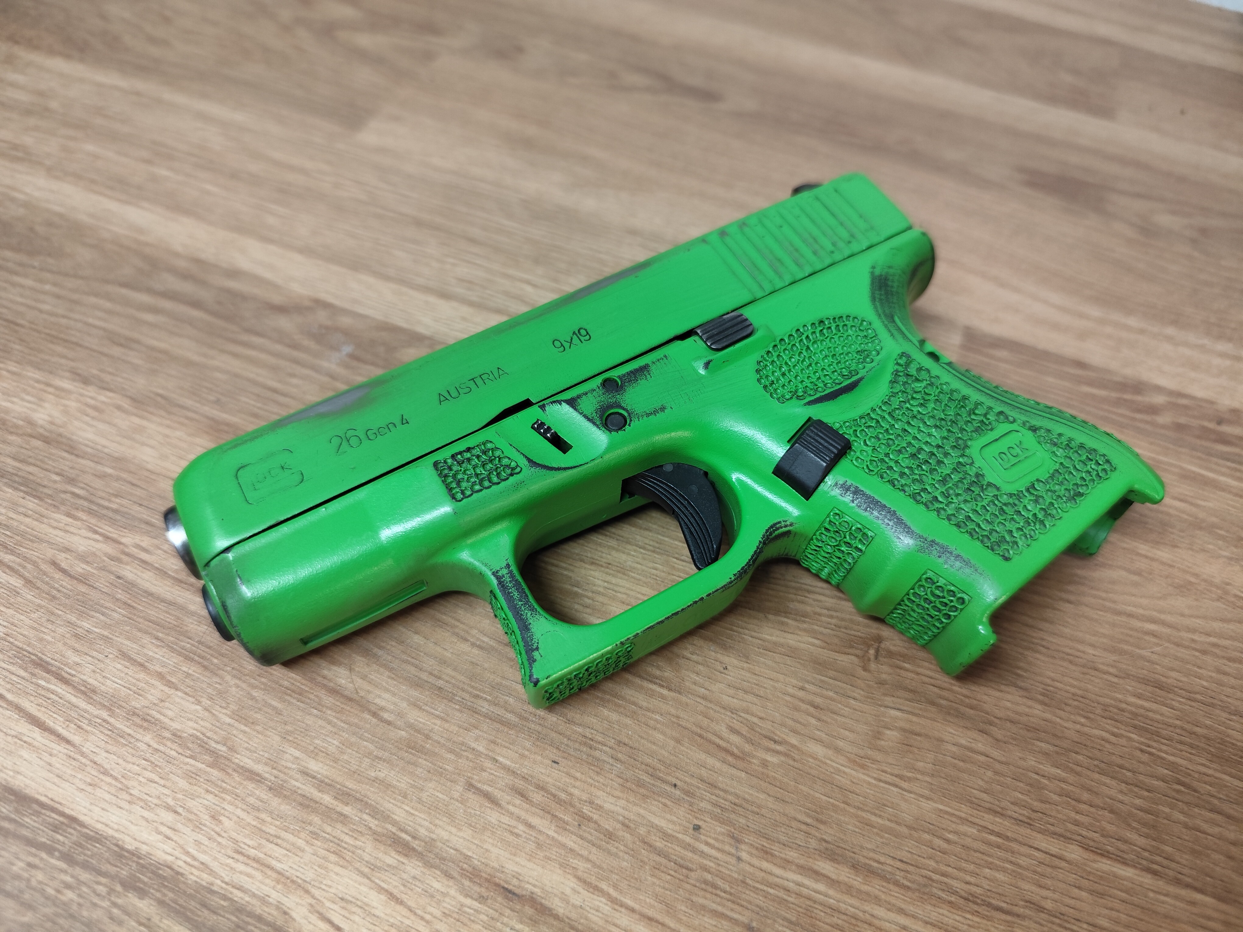 Vill du vara värst på banan? Då är den här Glock 26an i fantastisk Zombie apokalyptisk grön perfekt för dig.