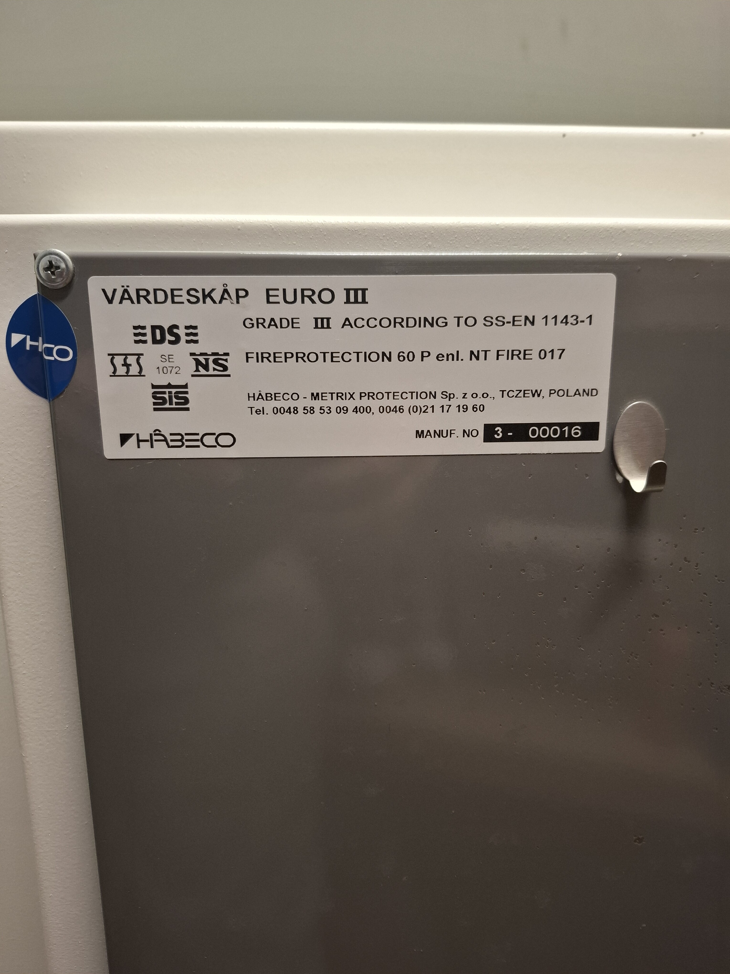 Inbrottsklass SS EN 1143-1 Grade III