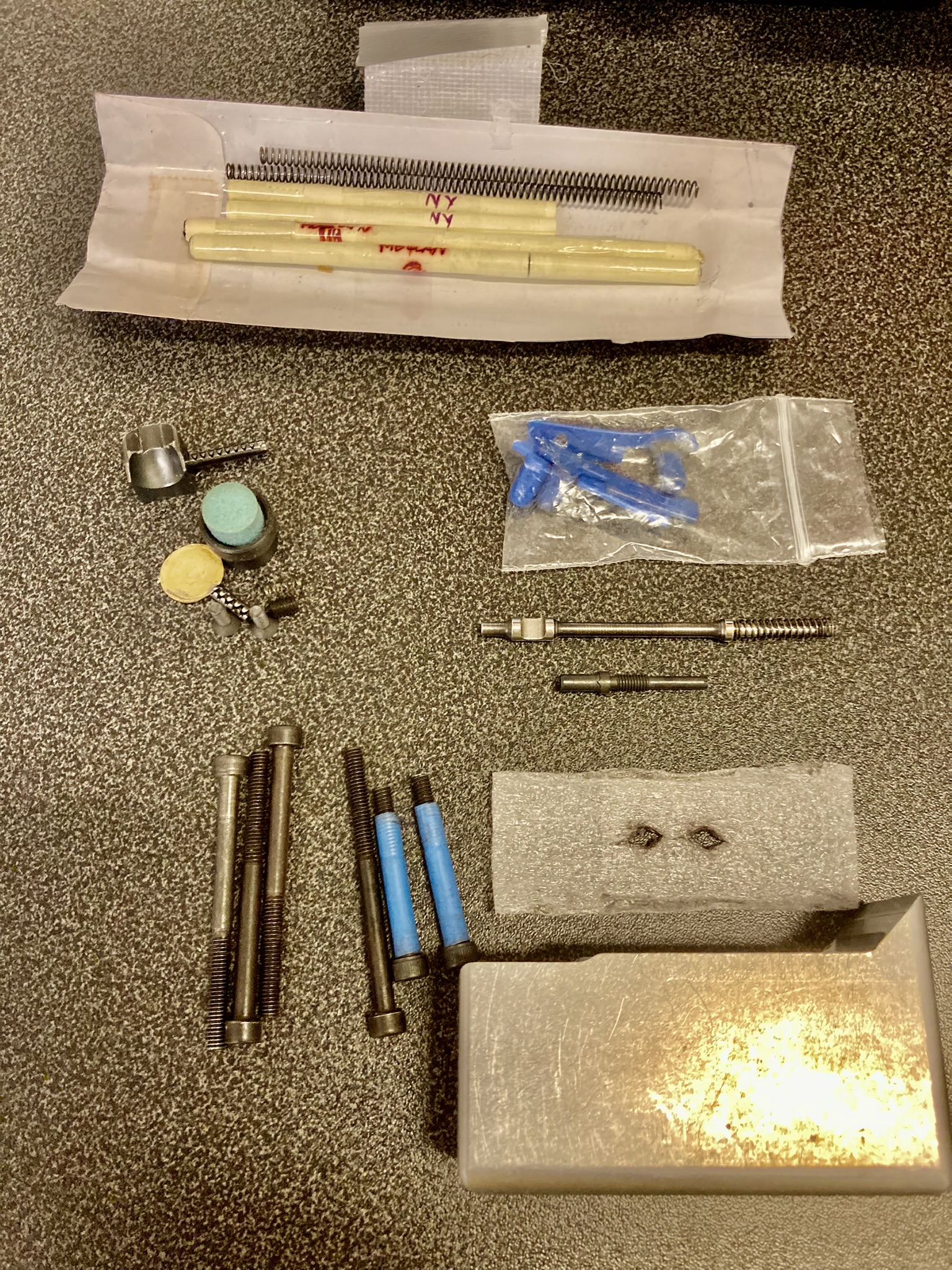 Du får med några reservdelar och jag kan tänka mig att släppa iväg mitt lilla (svindyra) momentverktyg till rätt köpare (notera den gröna biten som fått krympslang på sig för att inte gno runt skruvhålen och nöta). Jag använder det till piphållarens tre skruv där jag lägger mer och mer tryck på skruvarna till jag stegvis når 2 och 2,5 Nm. Lite nördigt kanske men då drar man inte heller pipan snett eller gängar sönder stommen.