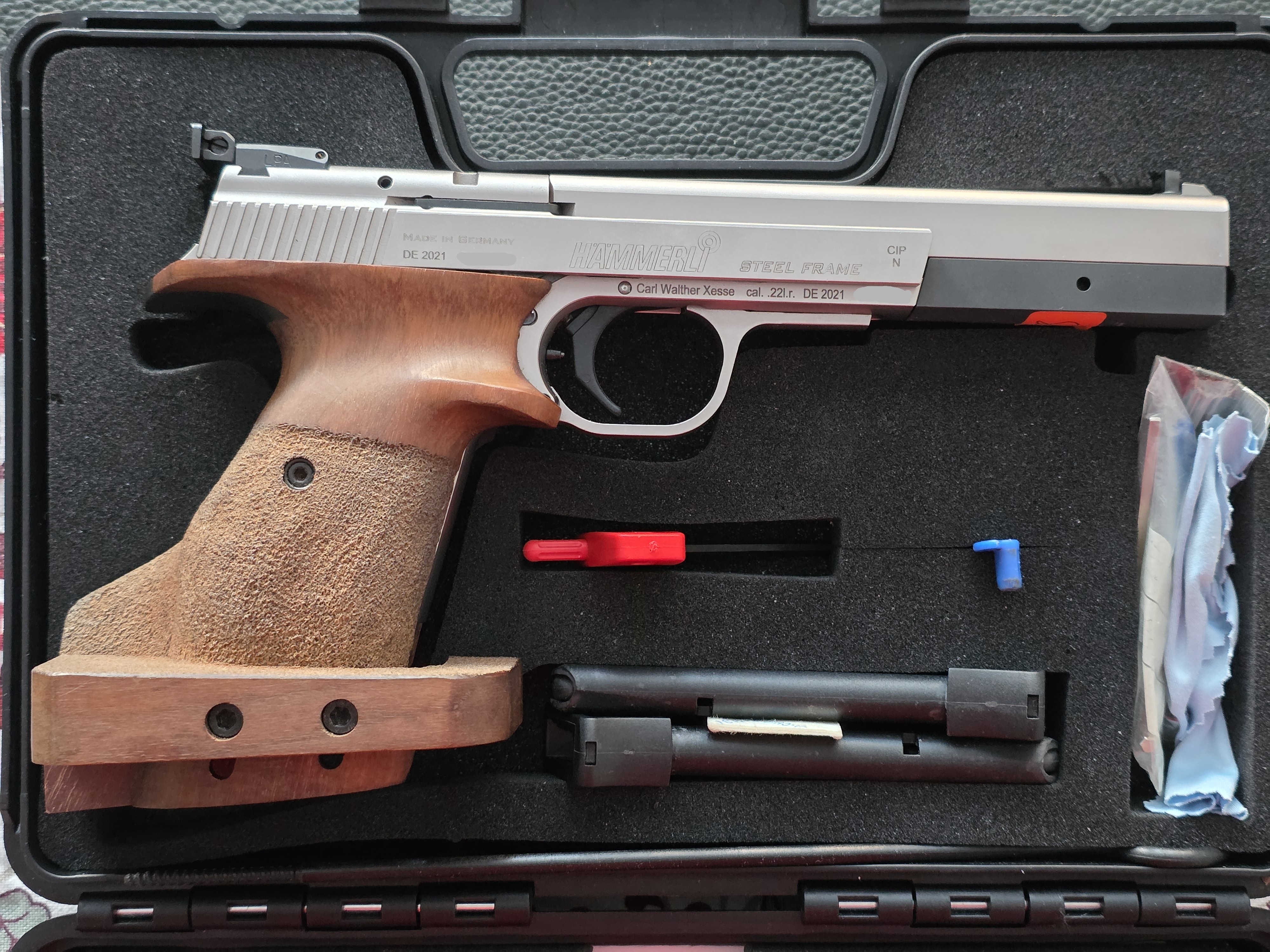 2 magasin, originallåda med tillbehör och dokumentation medföljer, samt ett enklare hölster och en ask klickpatroner.