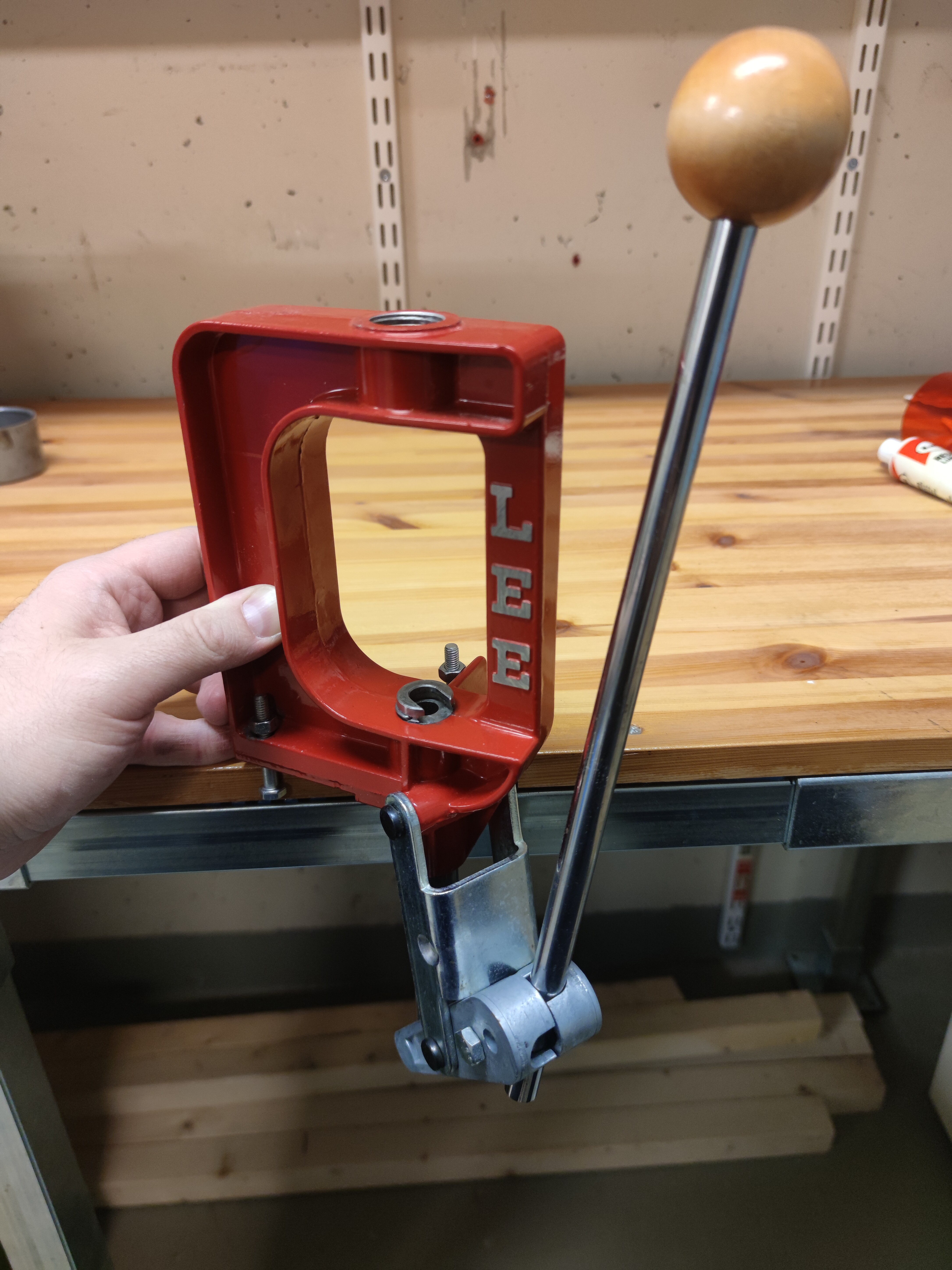 1st Lee press i bra skick. Har använts för att ta fram test laddningar på 357 magnum.