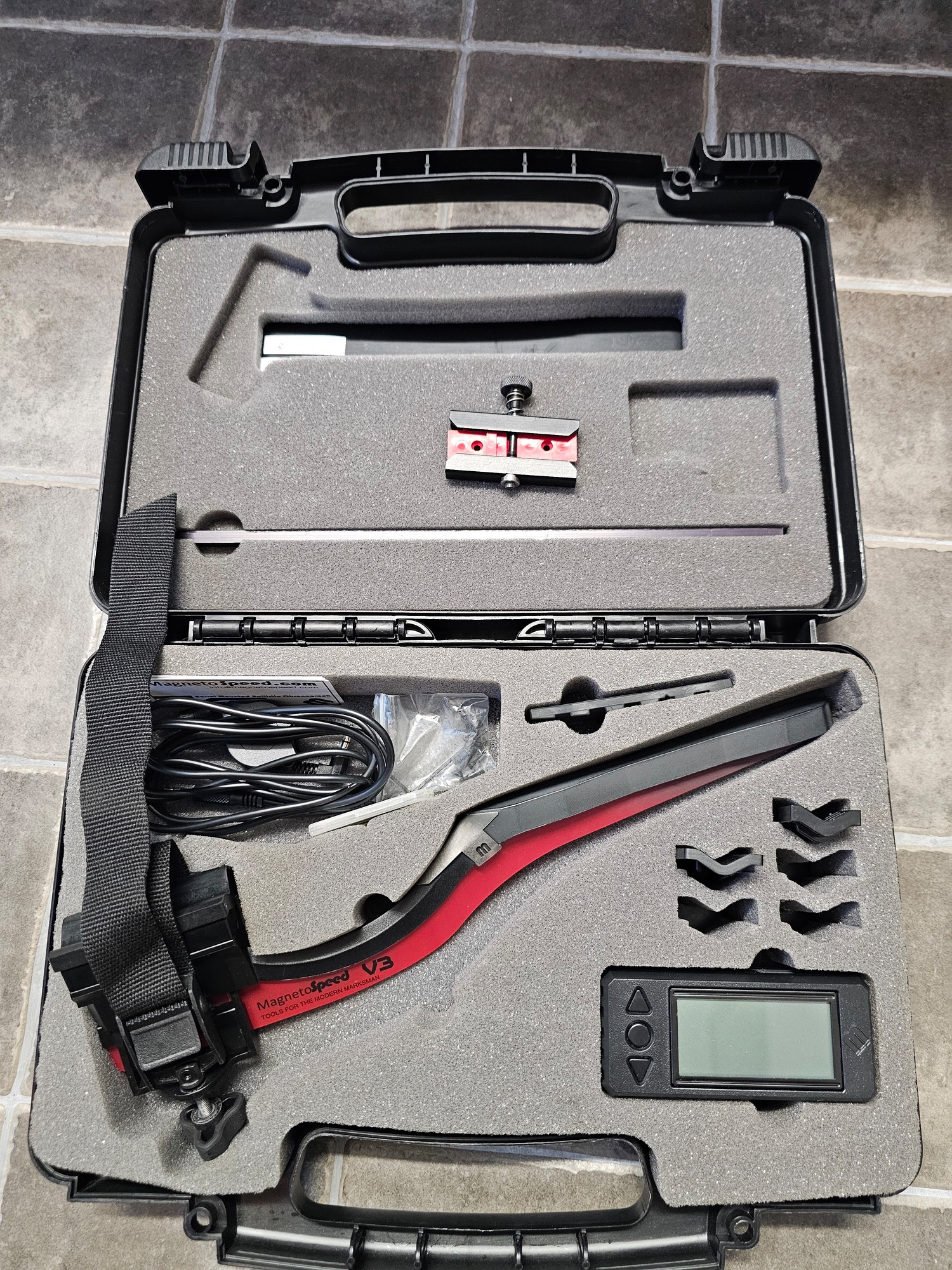 Magneto Speed v3 med picadapter och hardcase. Alla adaptrar finns men några är monterade på sensorn när bilden togs, där av så ligger de inte synliga i väskan. Pris 3000:- och köparen står för frakten. Den finns i Arvika.