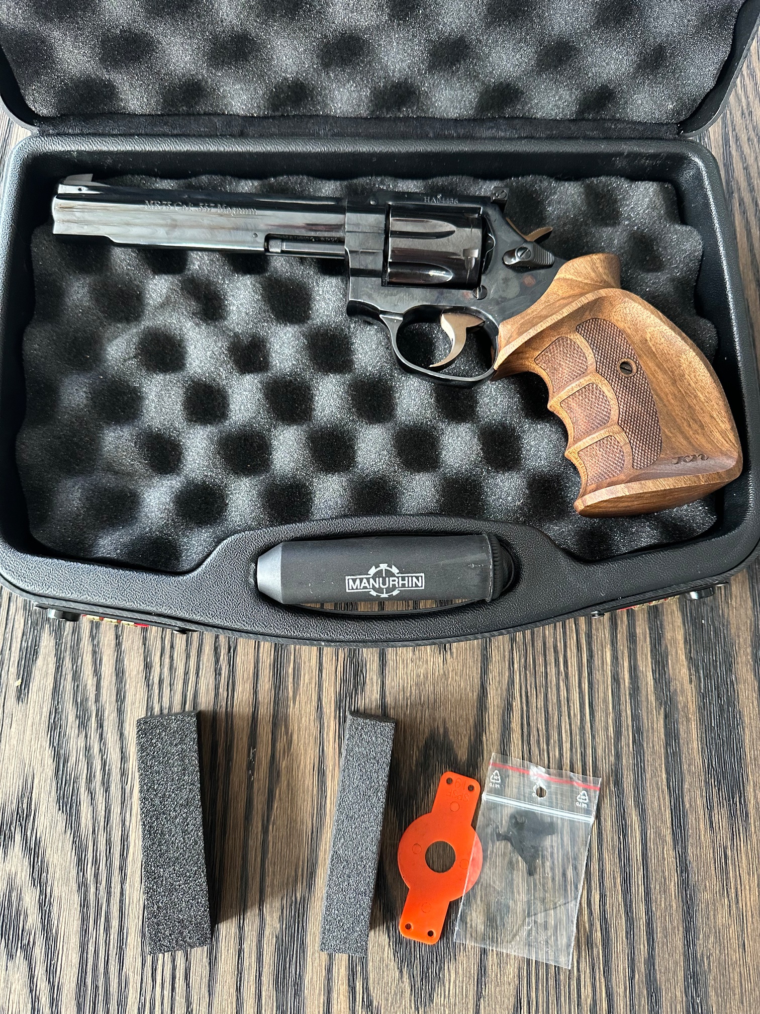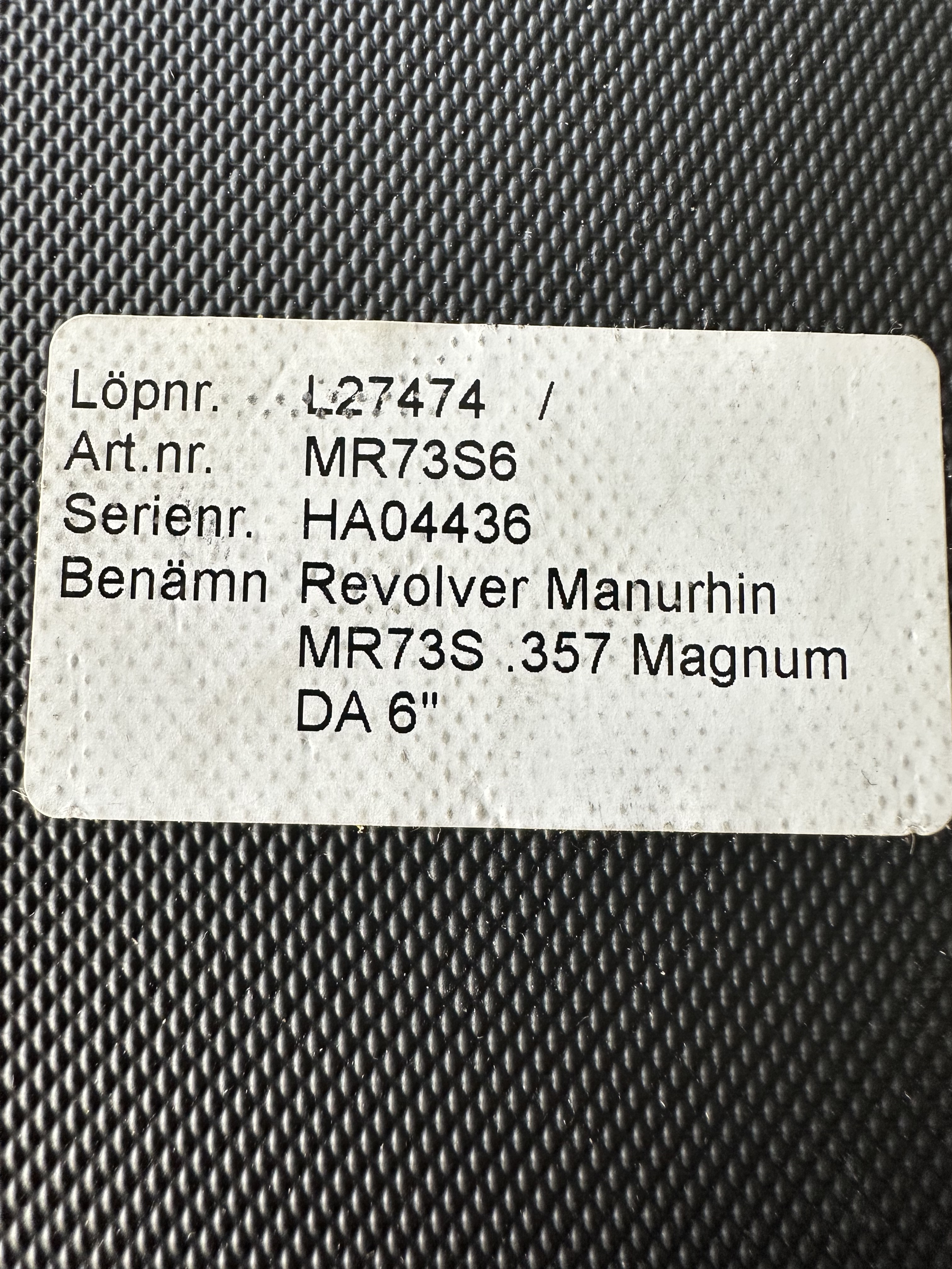 Revolver Manurhin MR73S Magnum DA 6” säljes i mycket fint skick med träkolv.
