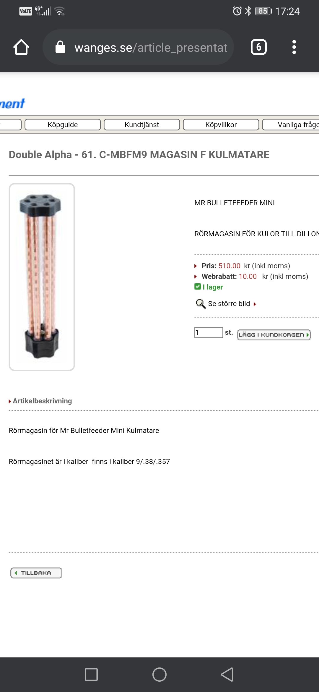 2 styck MR bullet feeder mini “magasin” för 9mm/38/357 enligt bild nedan.