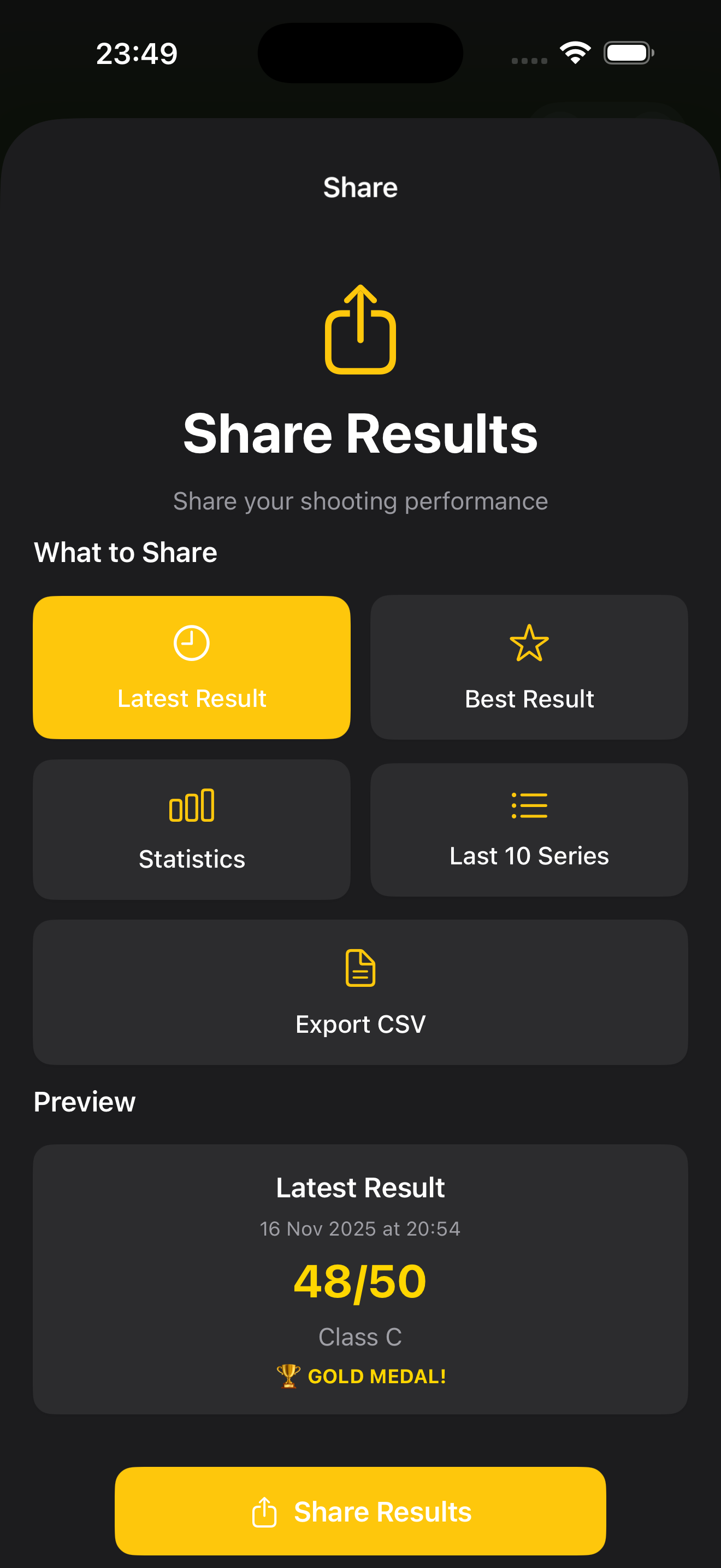 Appen är i nuläget baserad på Svenska Pistolskytteförbundets regler för precisionsskytte. Du kan registrera dina serier, få statistik och se din utveckling över tid. Tanken är att bygga vidare med fler grenar och kanske även stöd för andra förbund om det finns intresse.
