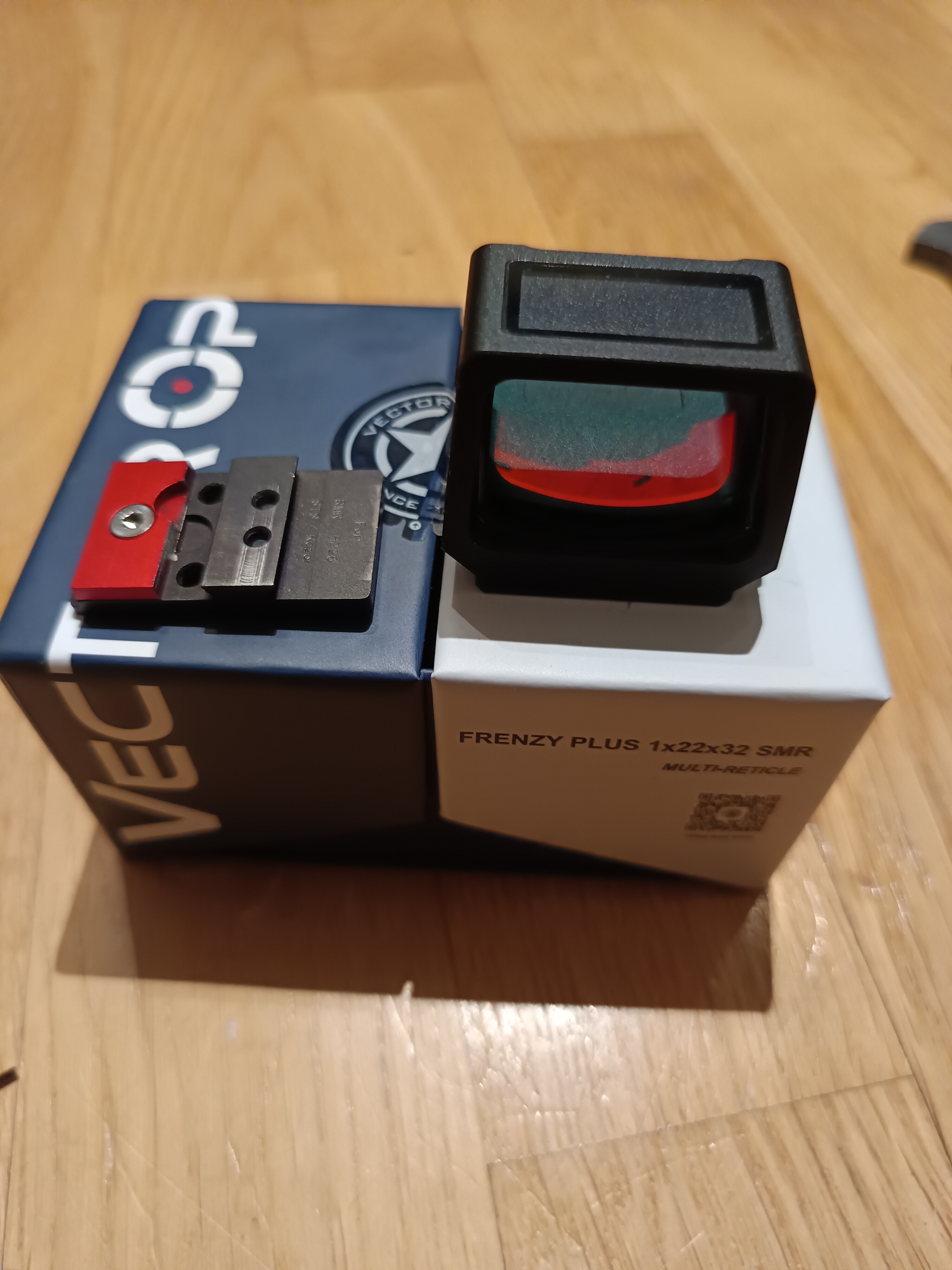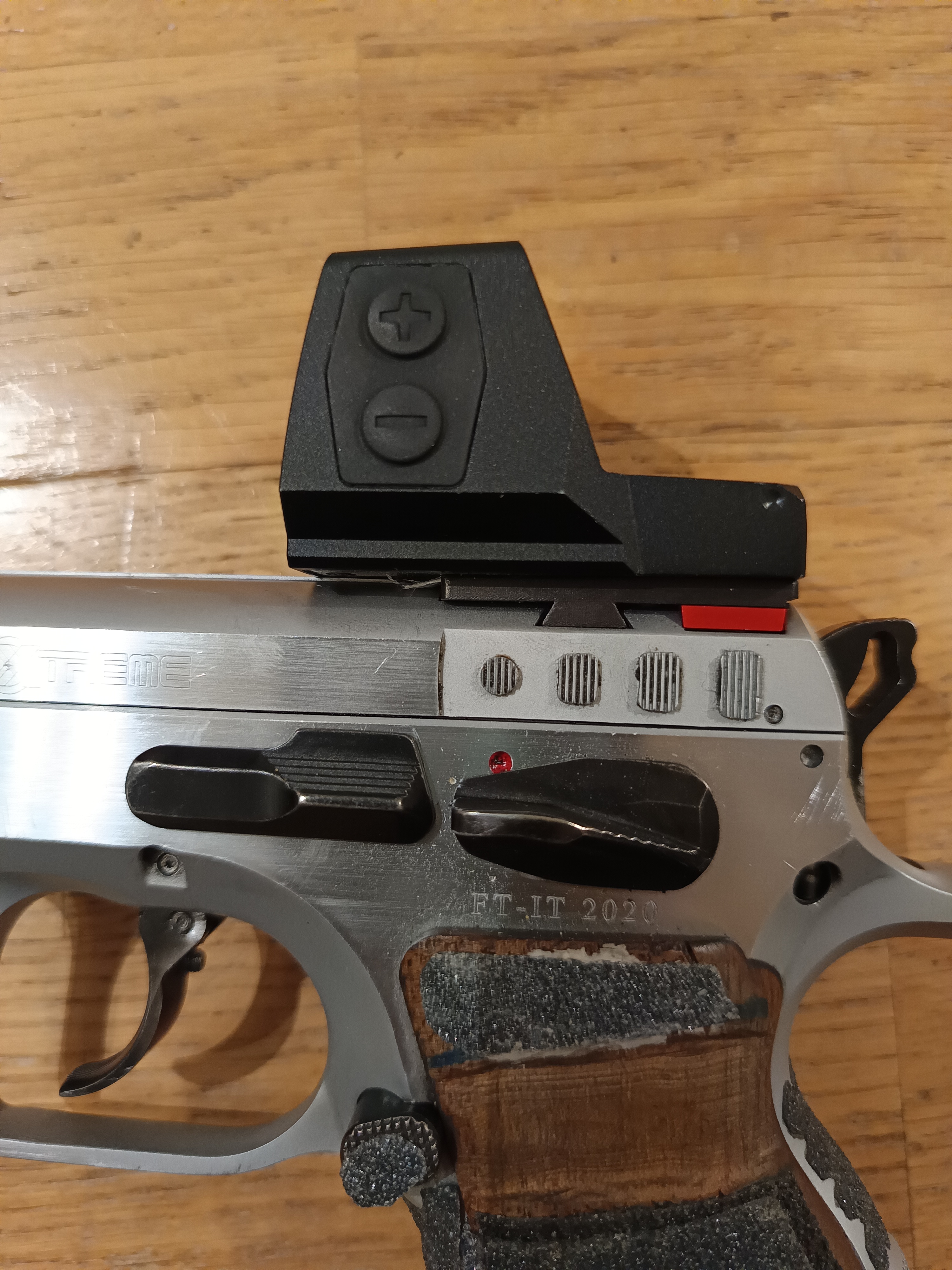 Optiken är en Vector Optics med C-More footprint och dovetail mount är från Tanfoglio. Ska passa alla Tanfo som har supersight.