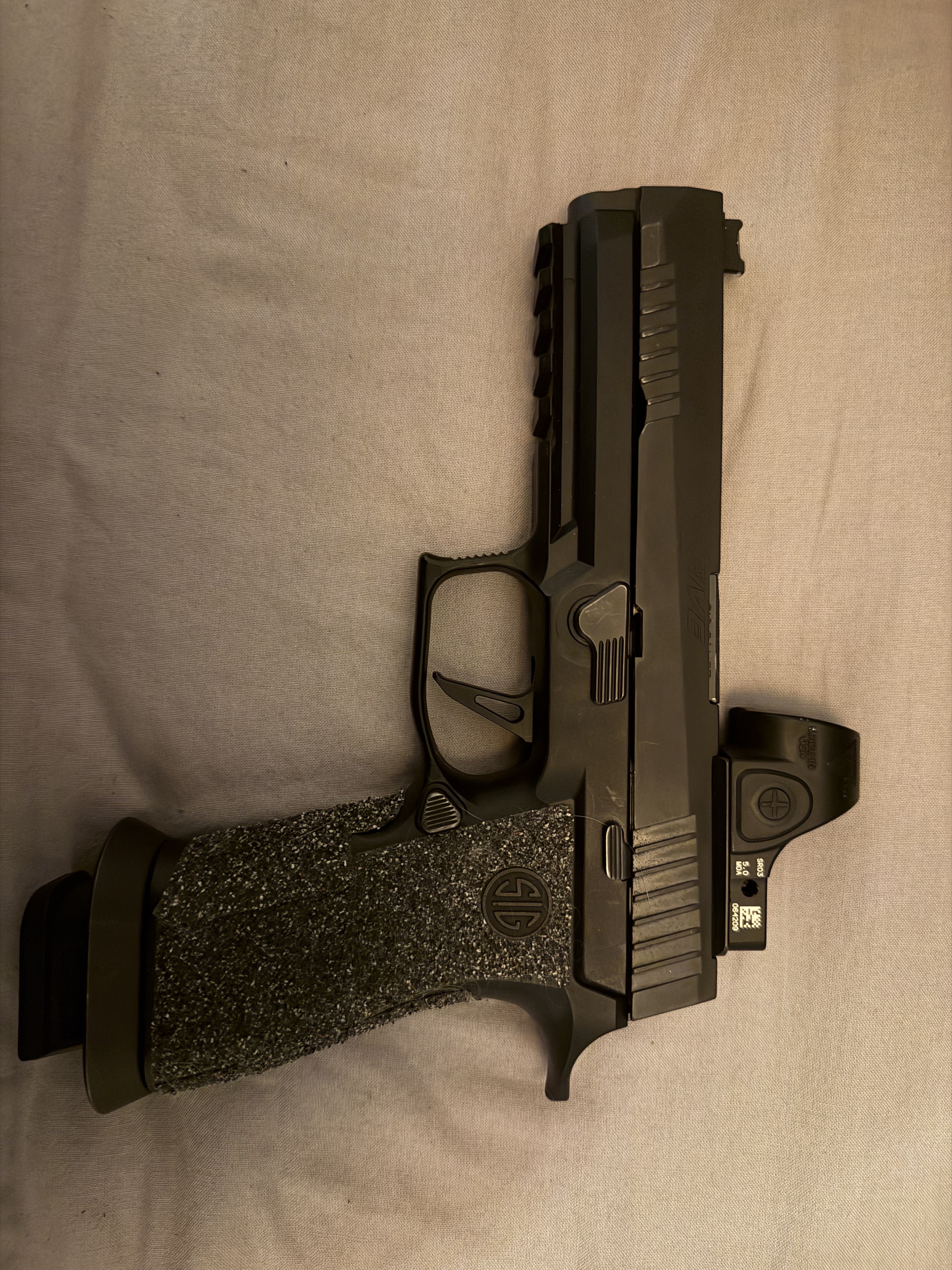 P320 X-five med Trijicon SRO 5moa säljes. Säljes till förmån för annan pistol, skjuter väldigt bra. 12000kr, siktet säljes EJ separat.