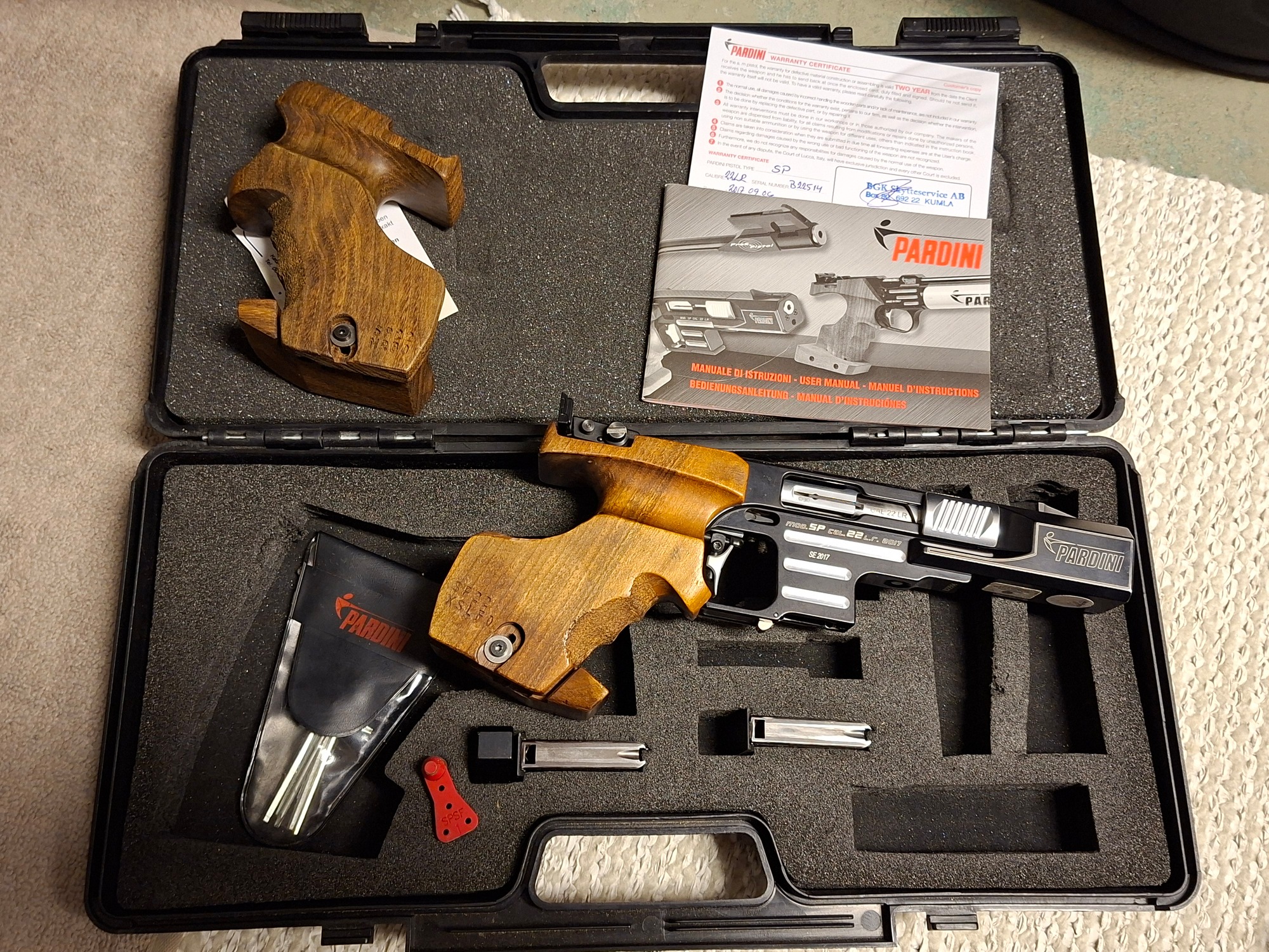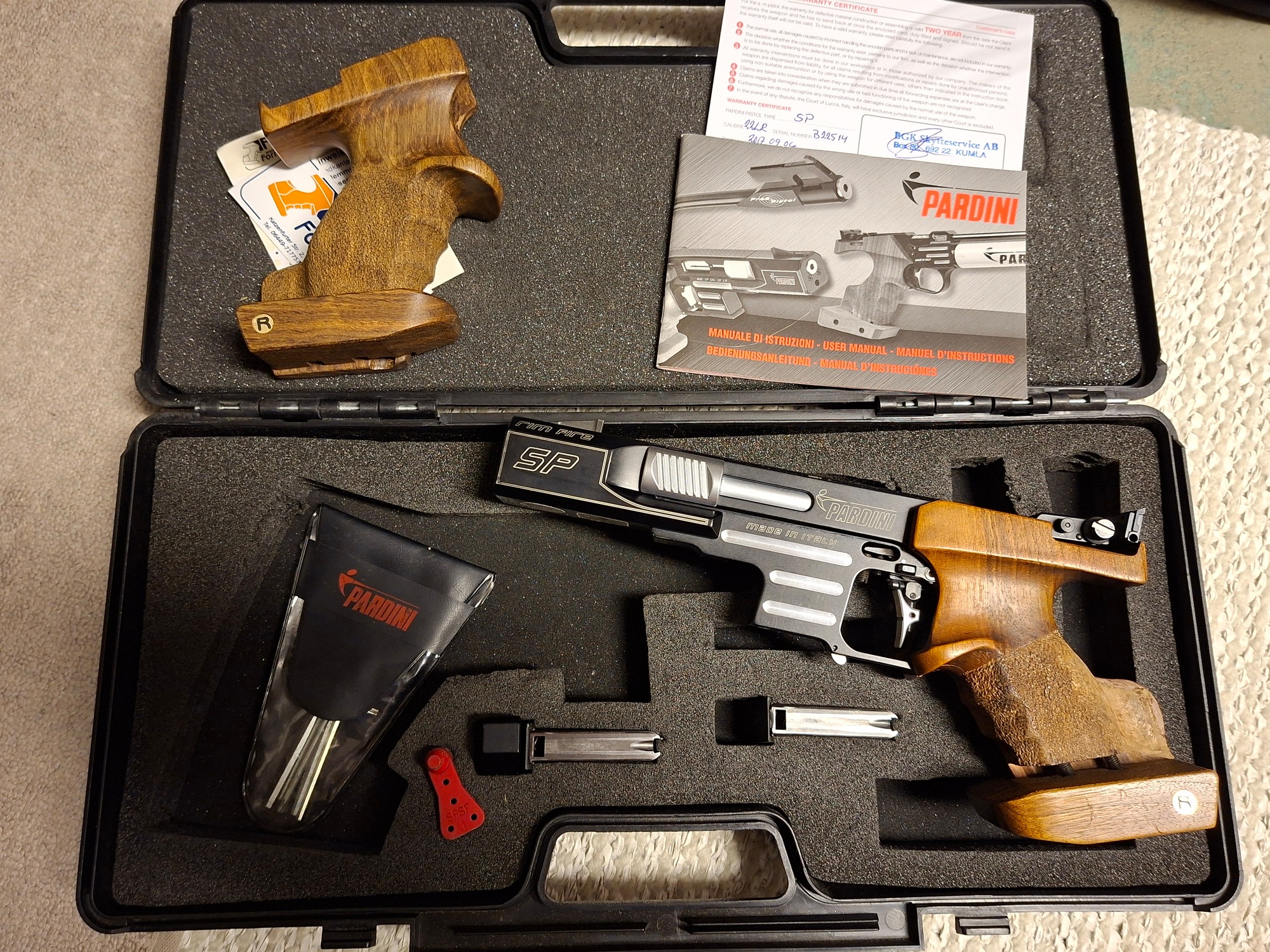 Säljer en mycket fin och lite använd Pardini SP 22:a med en Rink XSLF0 kolv på, det kan även följa med en ny Rink MRB0 kolv i priset. Vapnet ligger i orginalväska med verktyg. 2 st 6-skottsmagasin