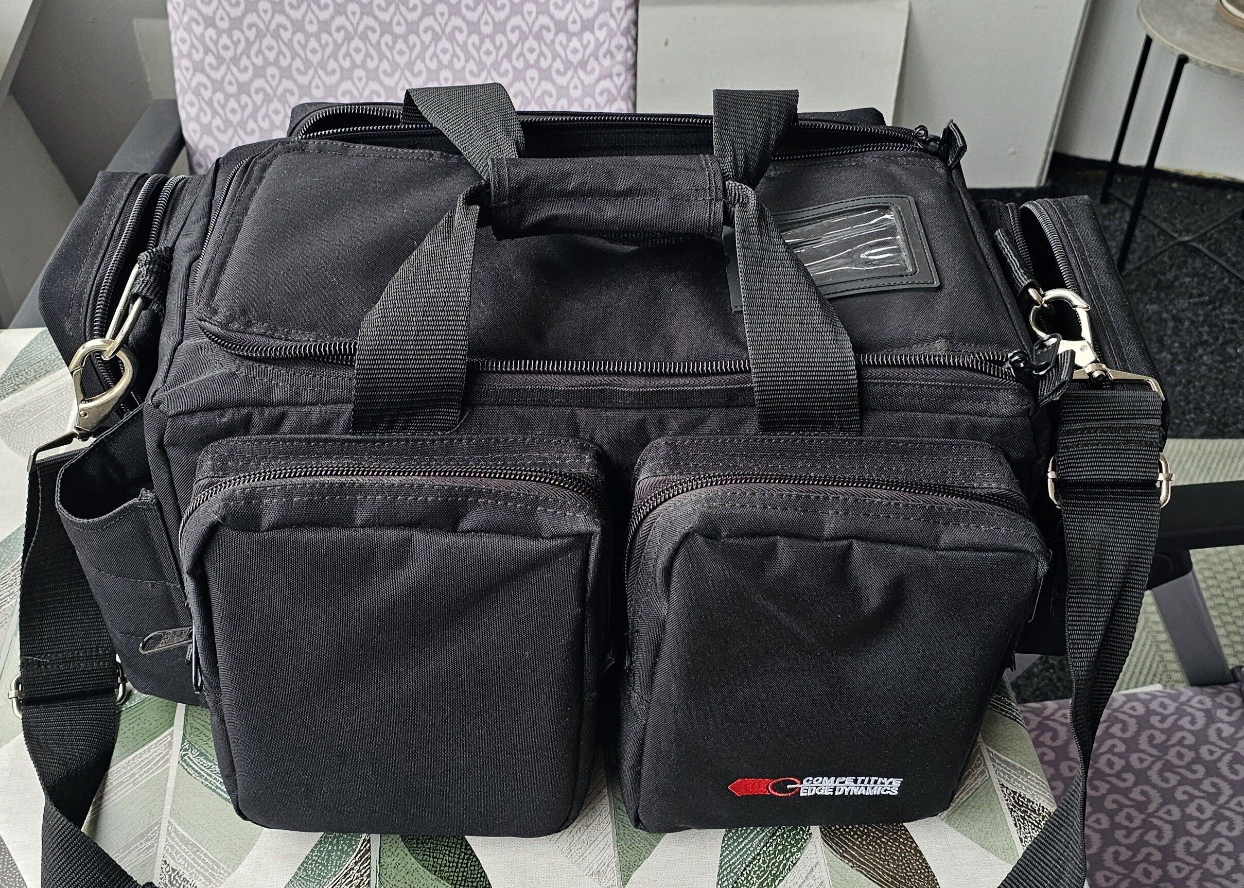 Fin bag från Competition Edge Dynamics. Perfekt för IPSC-skyttar men även för vanliga skyttar. Inga skador förutom att dynan på bärremmen har spruckit något (var för snålt sydd).