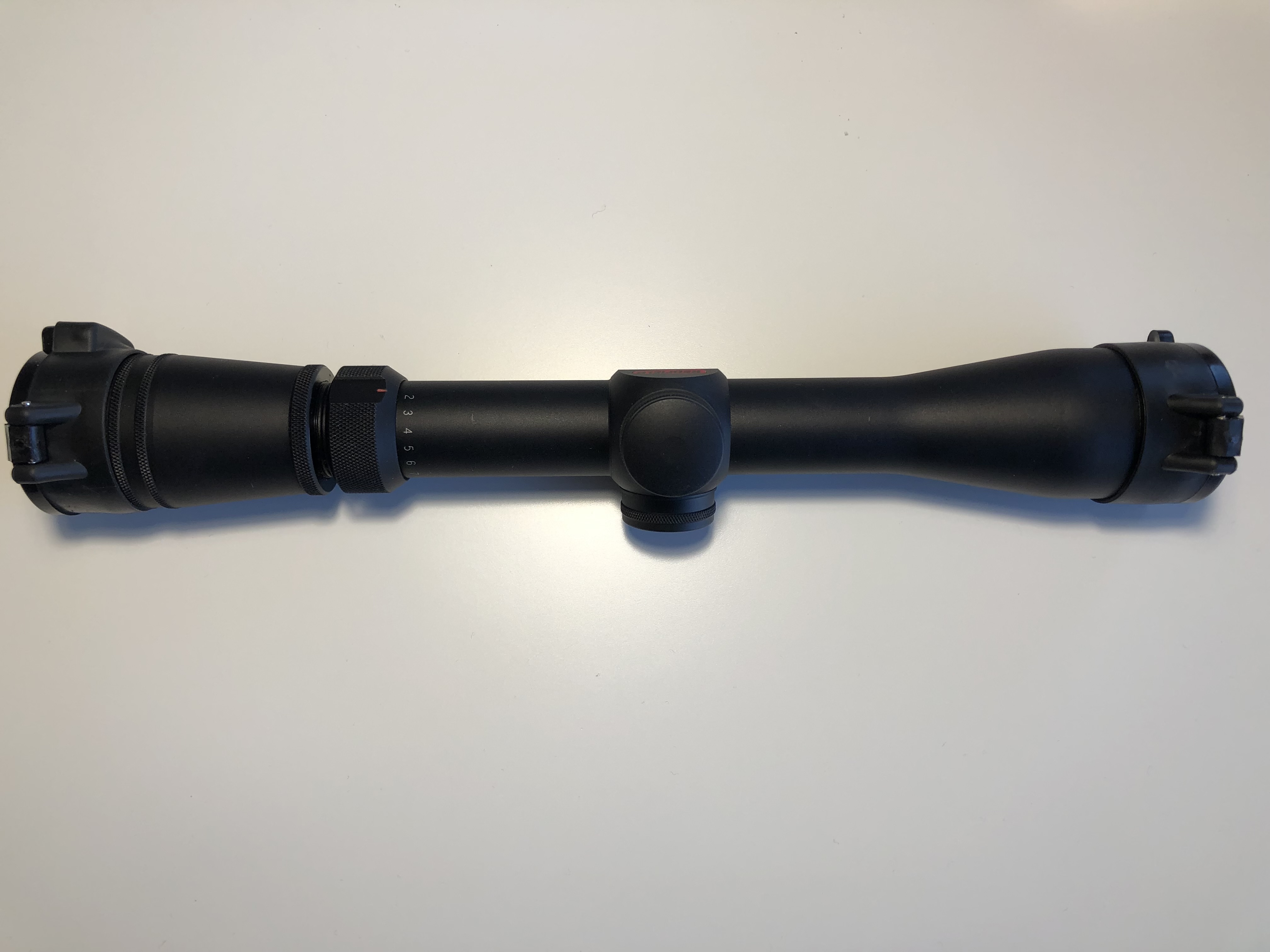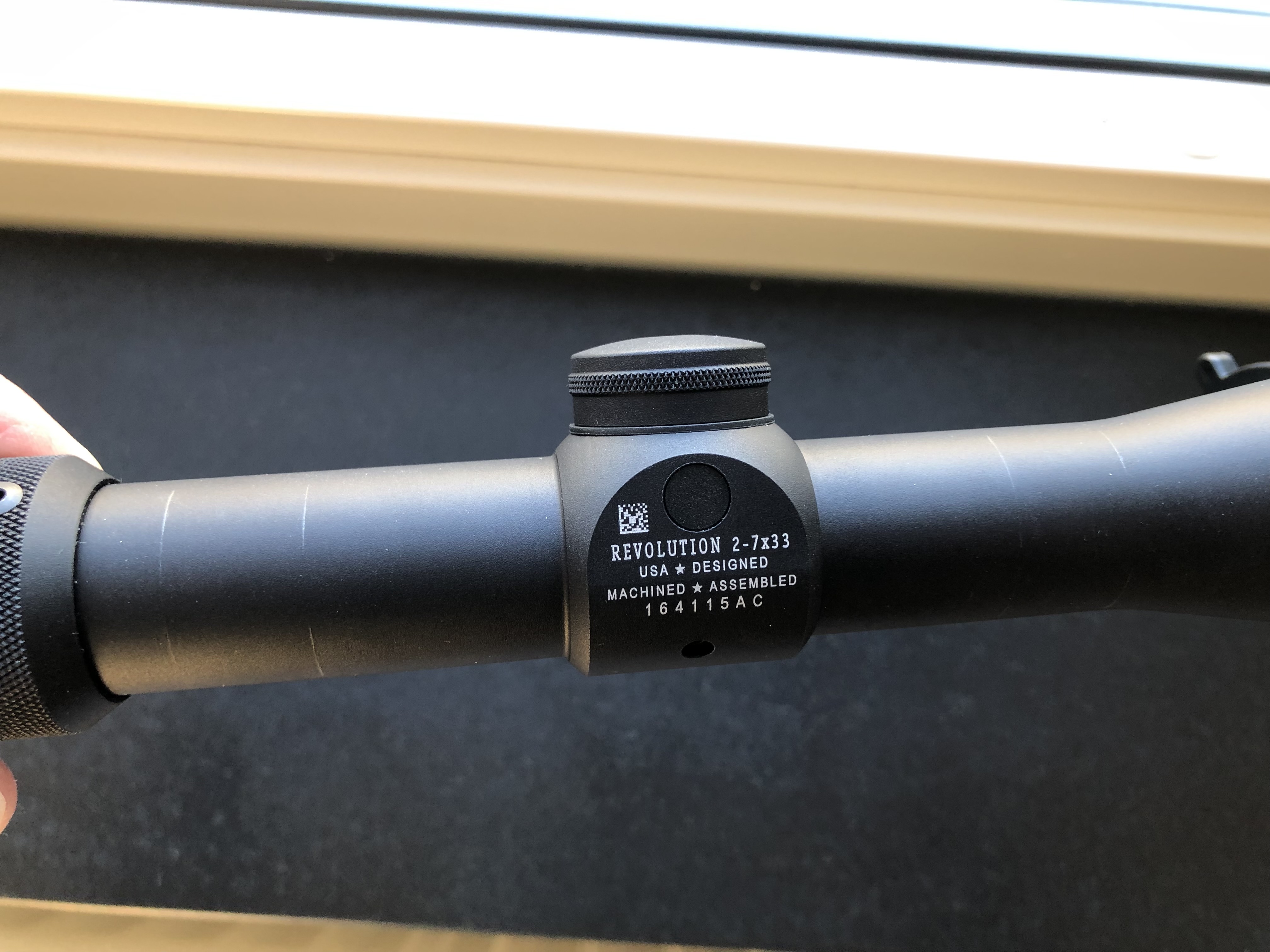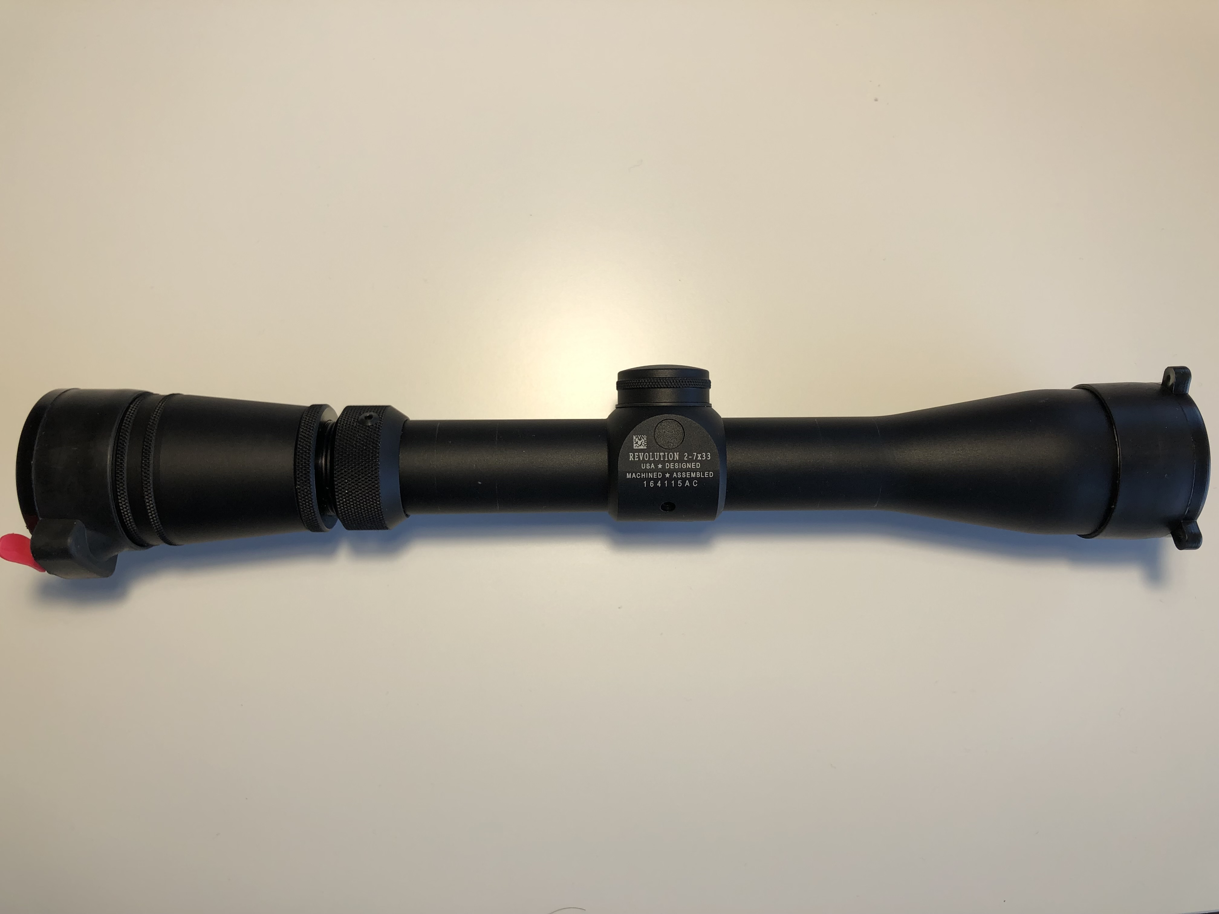Kikarsikte Redfield Revolution 2-7x33 med Butler Creek flippisar. Mindre märken efter tidigare montering (syns mest undertill) men i övrigt i toppskick. Duplex. Obelyst. 1-tumstub.