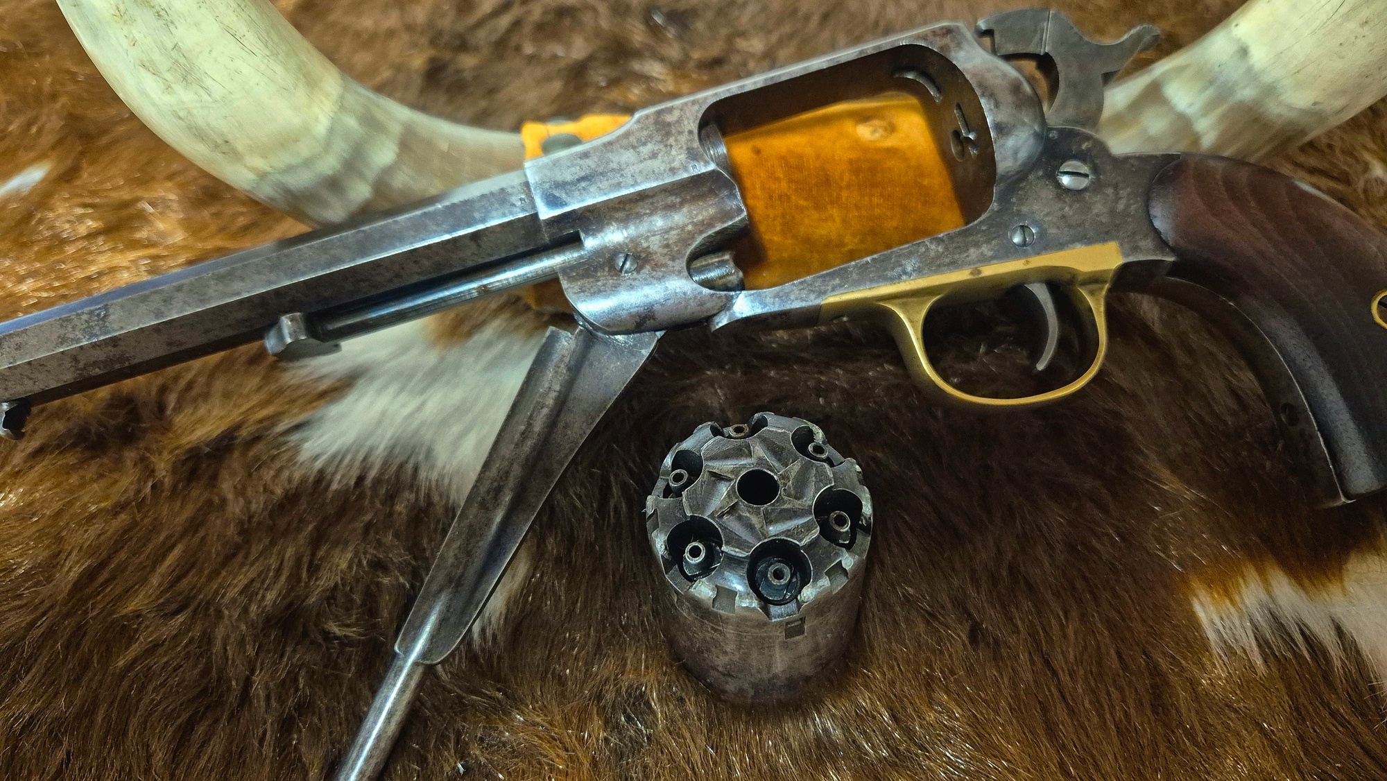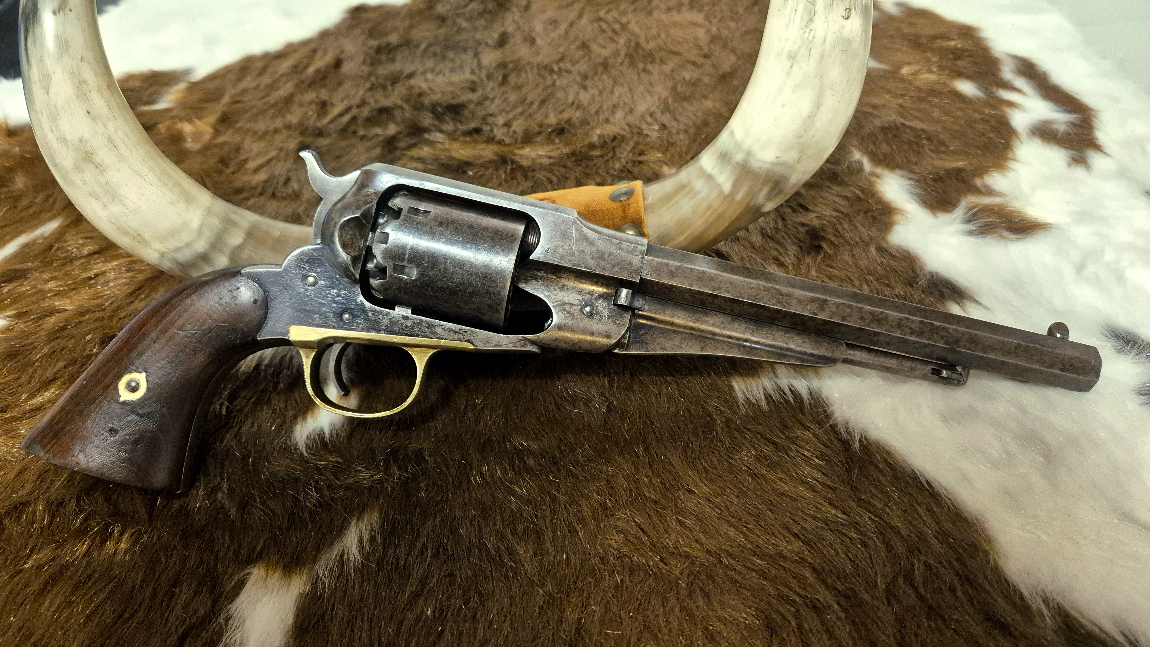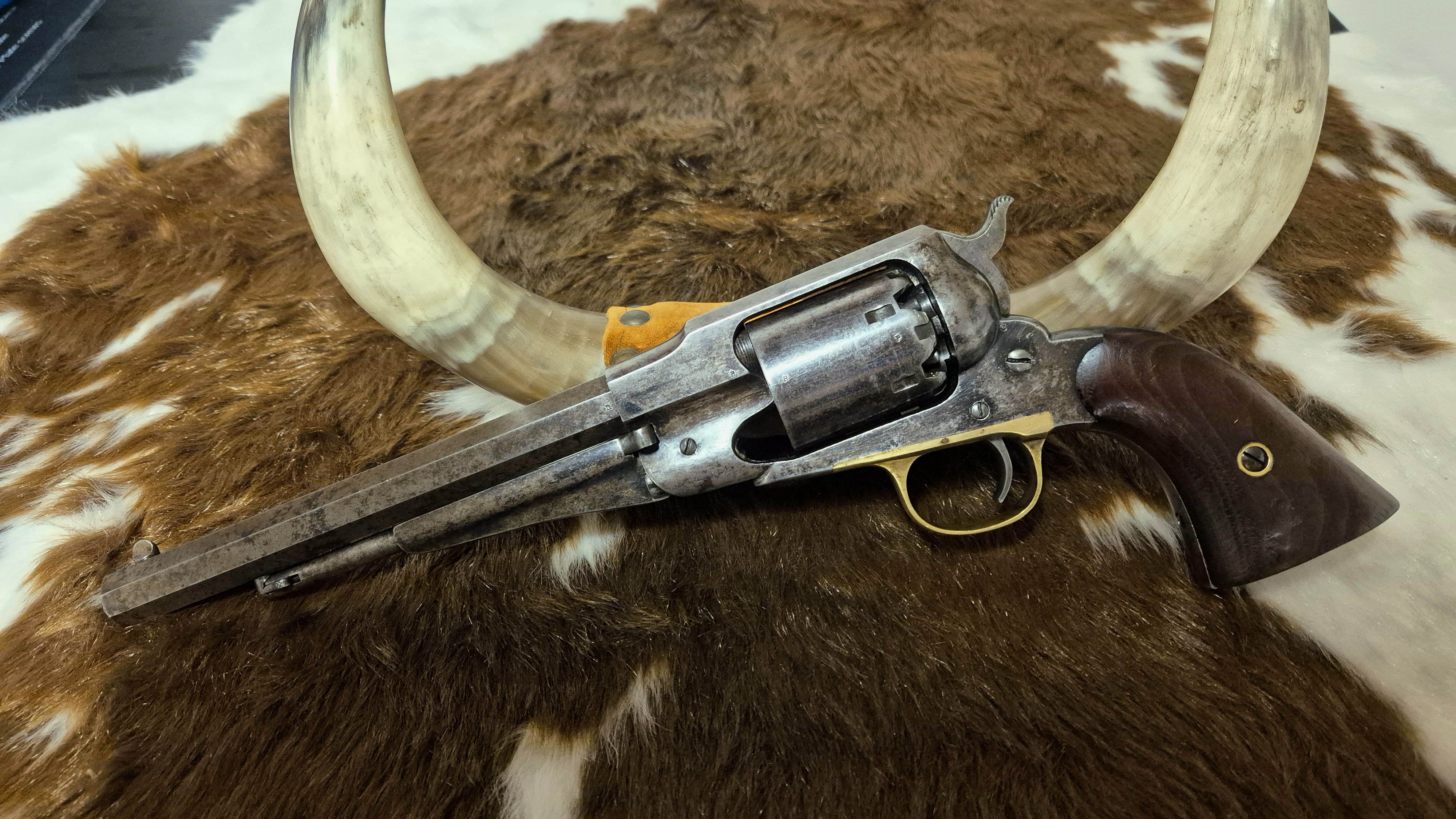 Remington Army I riktigt fint skick. Hel del original blånering kvar. Loppet i mycket bra skick, likaså kammrarna I trumman. Spel trumma/pipa 0.2mm. Mekaniskt i mycket gott skick, bra spänst i alla fjädrar. Nummerriktig. En mycket trevlig samlar revolver som även skulle passa utmärkt för precisions skytte. Har fler bilder om så önskas.
