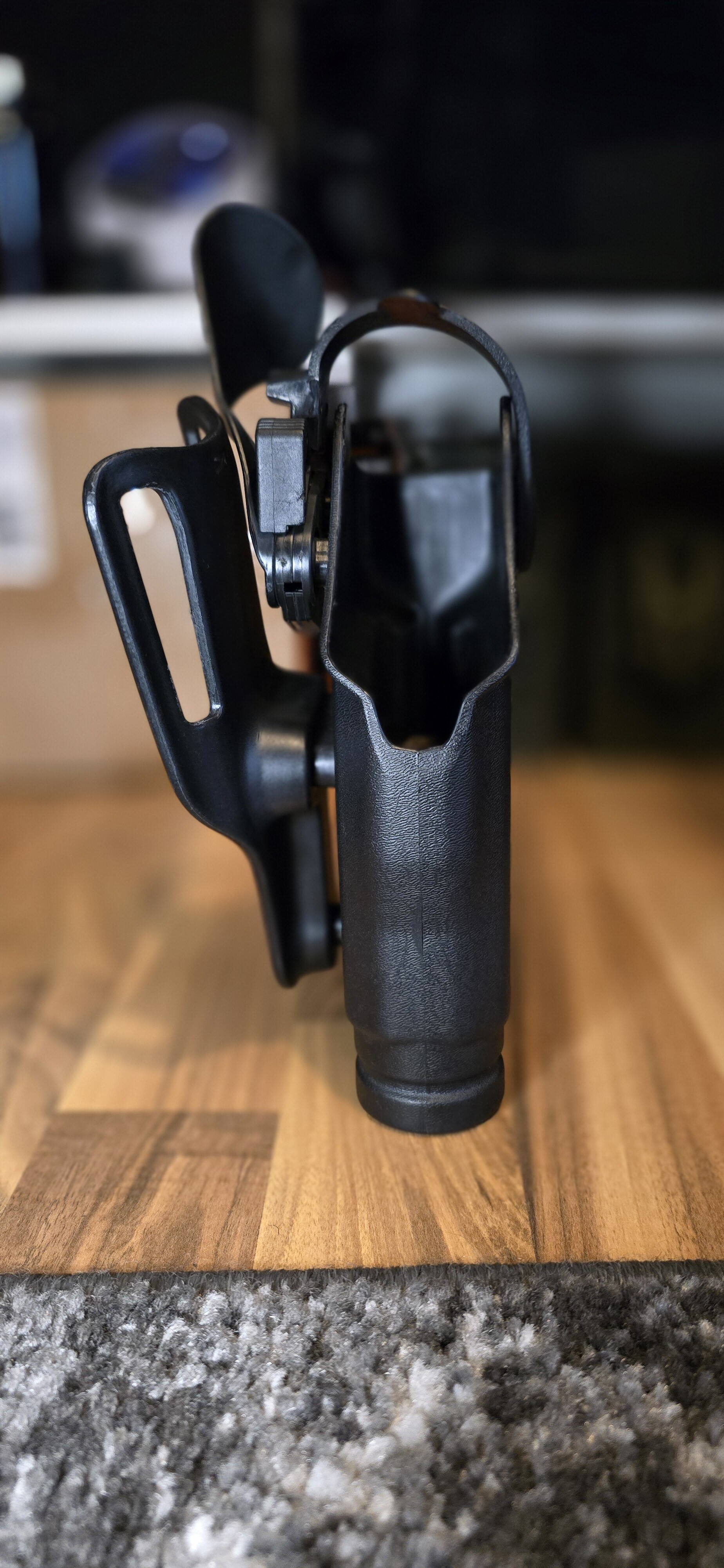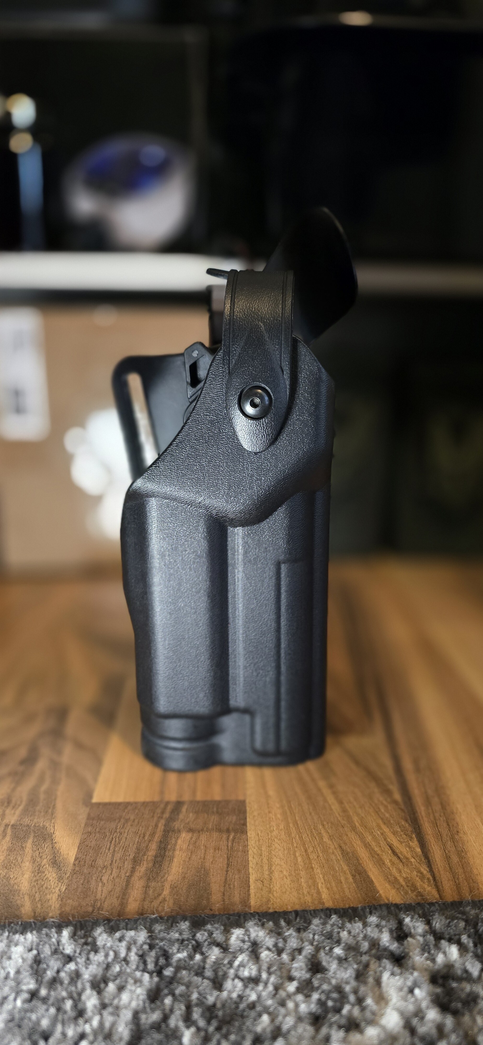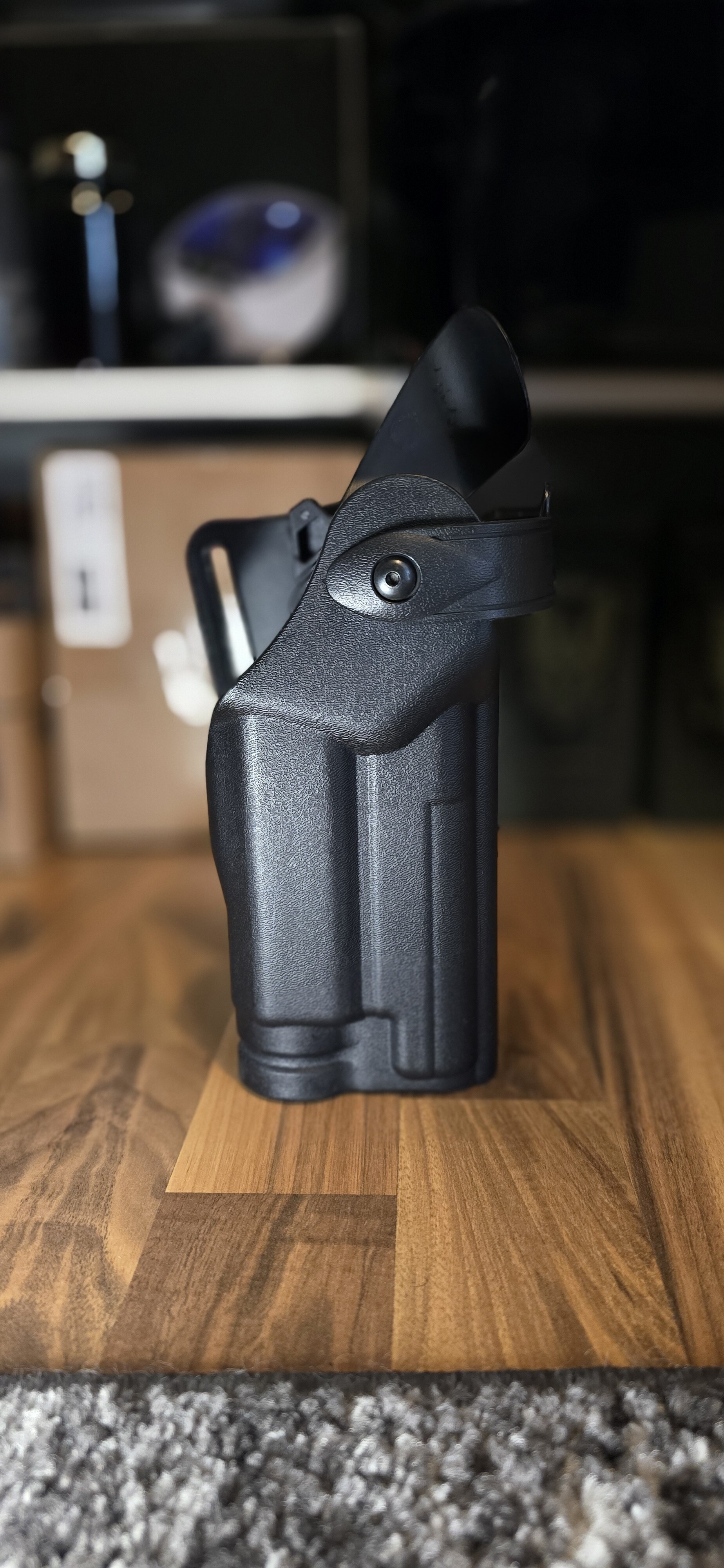 Säljer ett Safarilandhölster av tjänstemodell med SLS (self locking system) till en Sig Sauer P226 med surefire X200 lampa. Hölstret har även en extra låsningsfunktion ifall man vill låsa det ytterligare.
