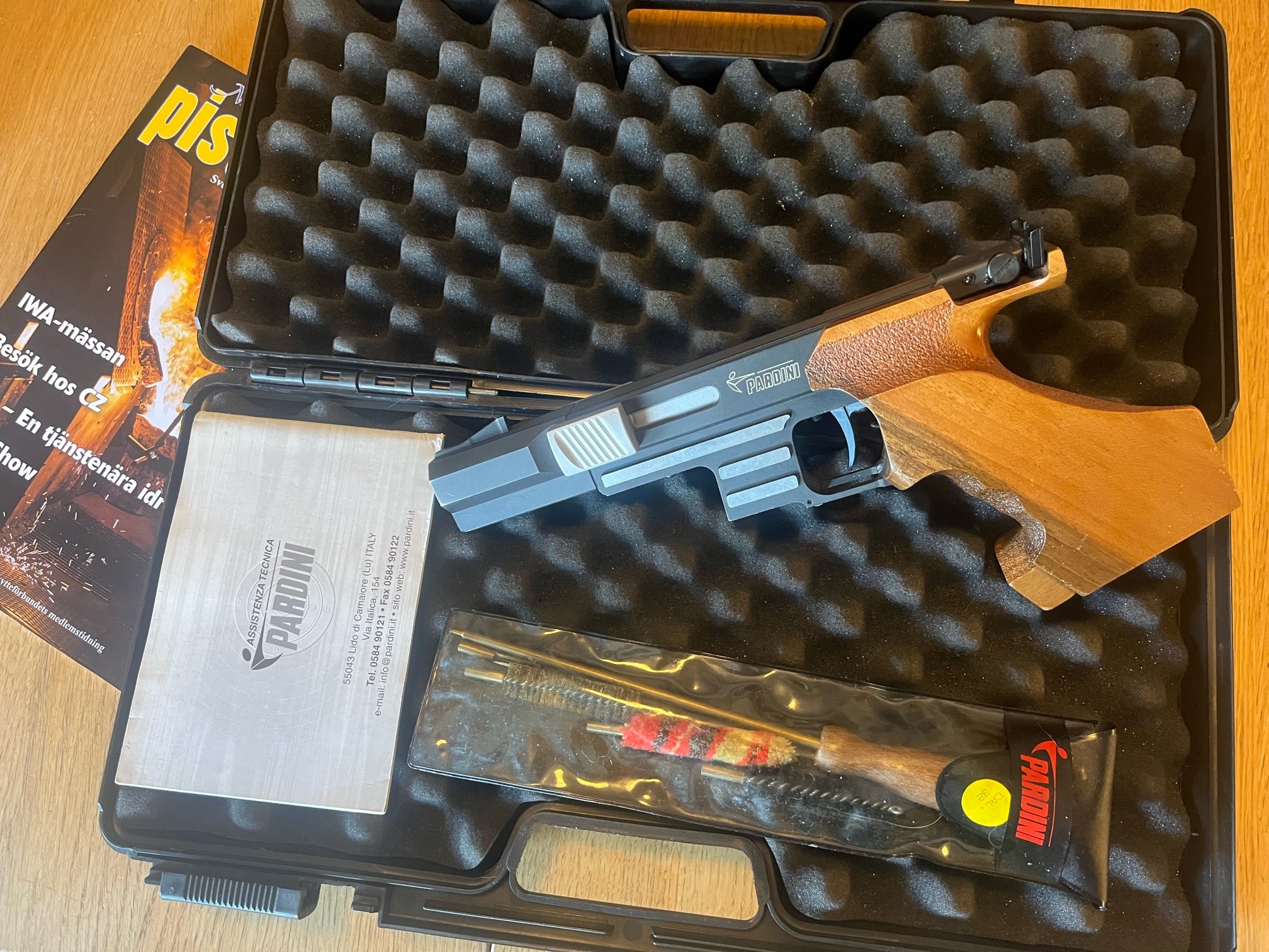På grund av byte till nyare med växelsats säljer jag en fin Pardini HP 32 med orörd originalkolv storlek L och ett magasin samt alla tillbehör.