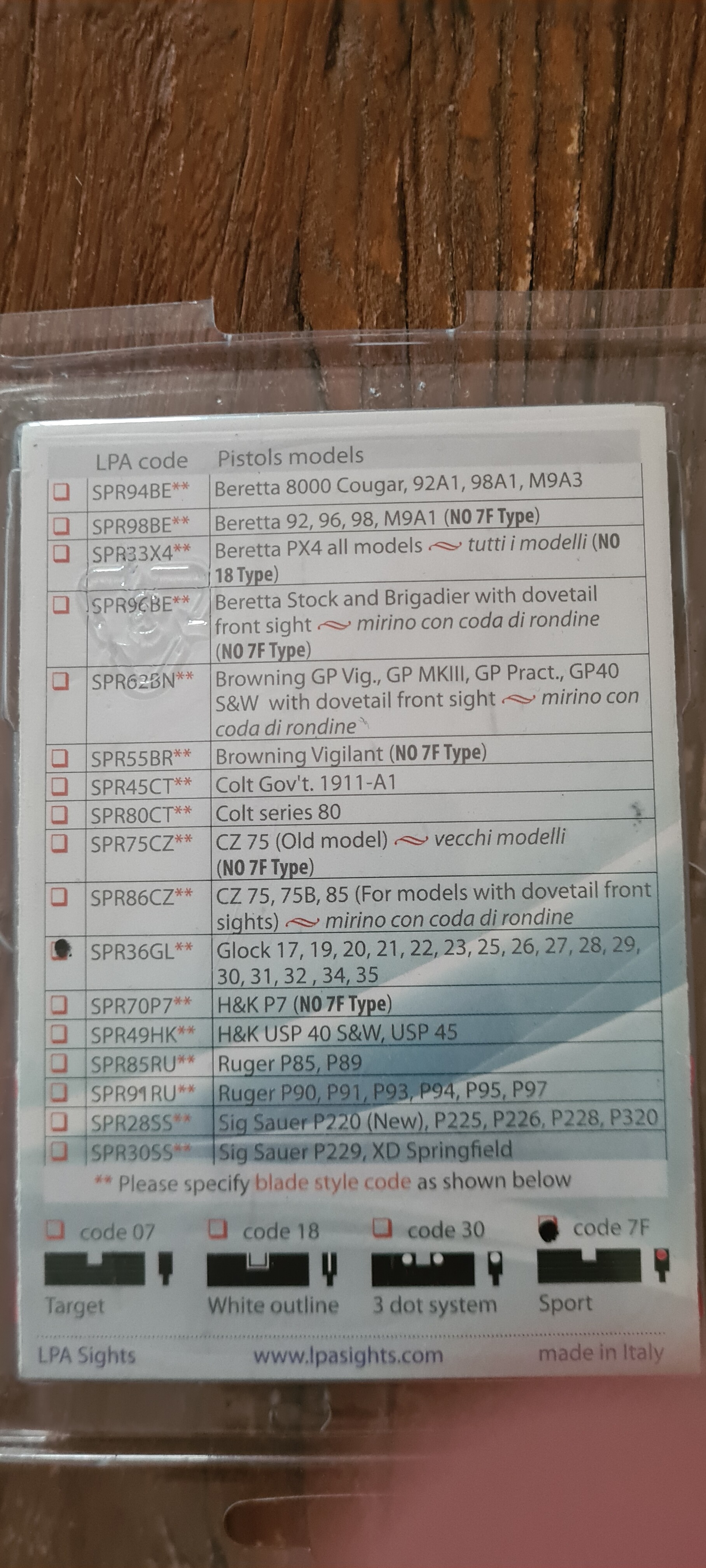 Glock LPA sikte SPR36GL7F Passar flesta glock se bild nedan för vilka.