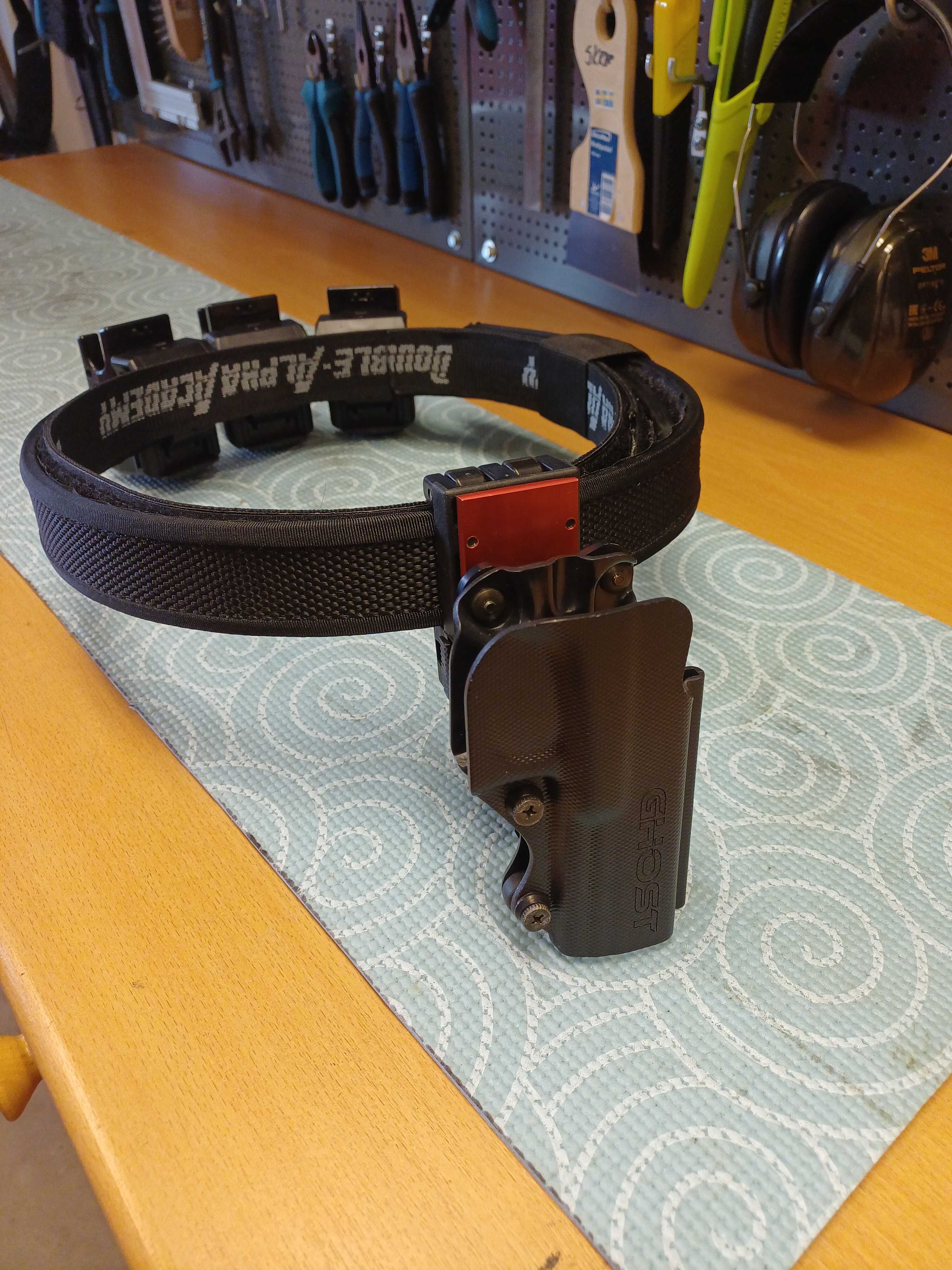 Glock-rigg enligt bild. Ghost hölster. Jag har haft Glock 17 i det. Ghost magasinhållare inkl. en magnet. DAA bälte kortat till strl 38.