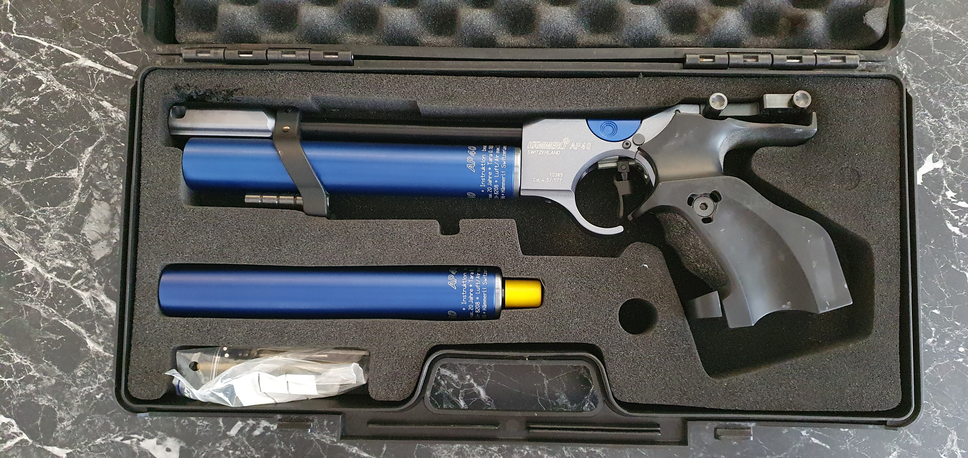 Det är en Hämmerli Ap40 som är måttligt skjuten. Ägaren innan mig hade den mest som “skåpprydnad” och jag var ganska flitig ett tag innan jag också lade undan den för att kanske ta upp luftpistolskyttet igen.