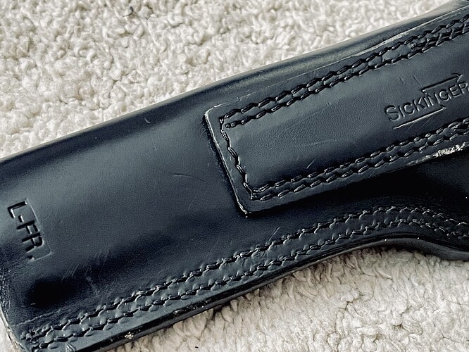 Läderhölster från Sickinger. Fästes enkelt i ett vanligt bälte.