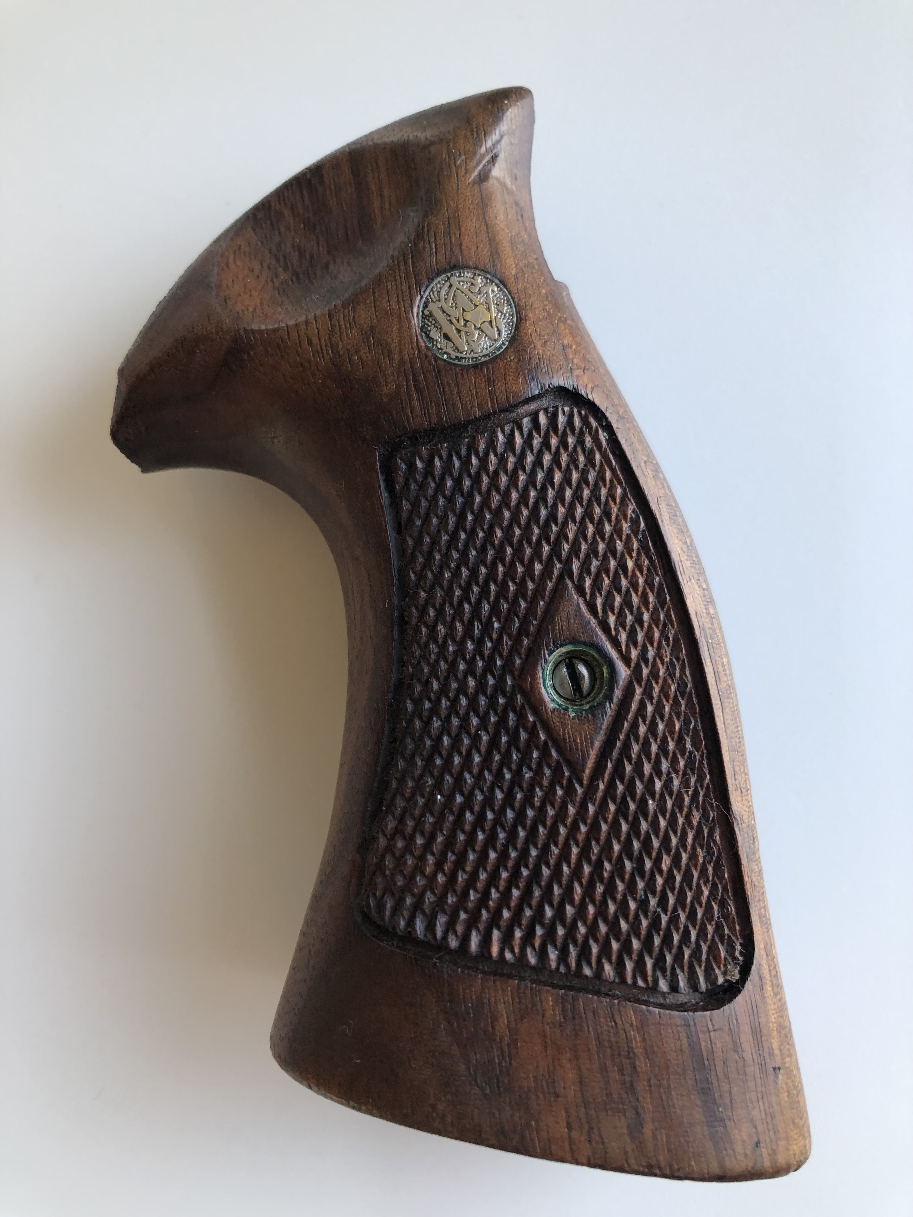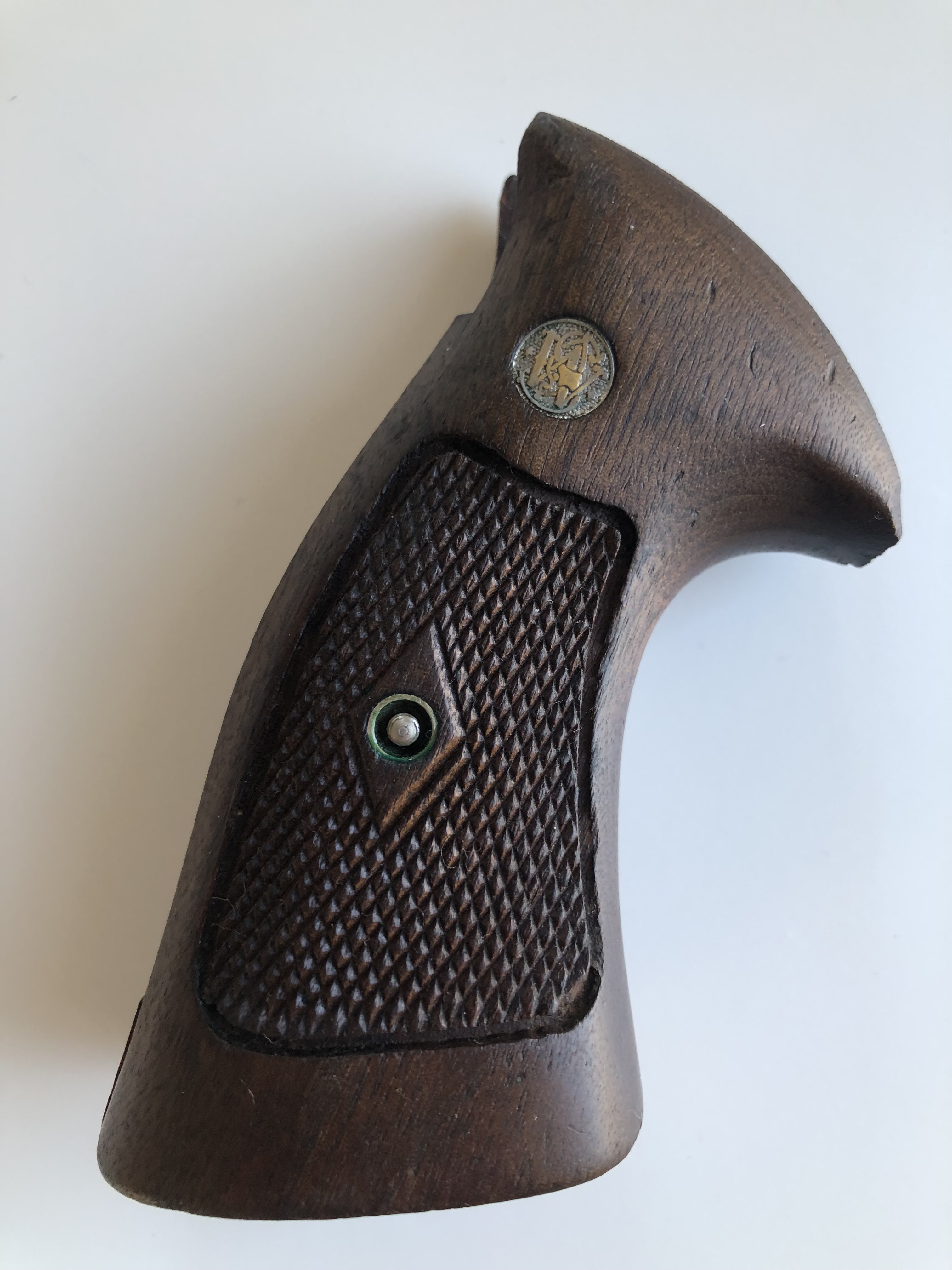 SÅLD Originalkolv till Smith and Wesson model 14 (som ju ibland kallas K38). Komplett med skruv. Använd förstås men annars i bra skick. Square butt.