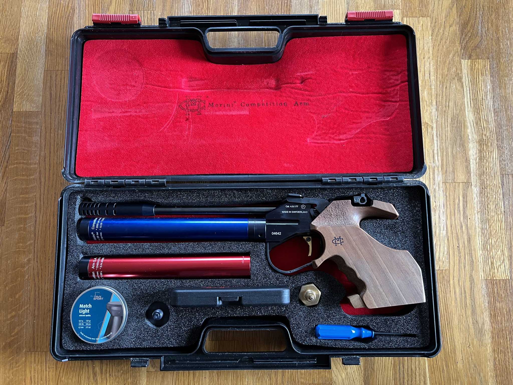 Säljer min gamla Morini CM162 MI, på grund av tappat intresse. Det är storlek M på den justerbara högerkolven. Med följer två tuber, båda från augusti 2010, så dessvärre inte tävlingsdugliga. Men de fungerar bra för att övningsskjuta. Annars allt på bilden följer med, om ni har några frågor om något som jag inte har nämnt är det bara att höra av er.