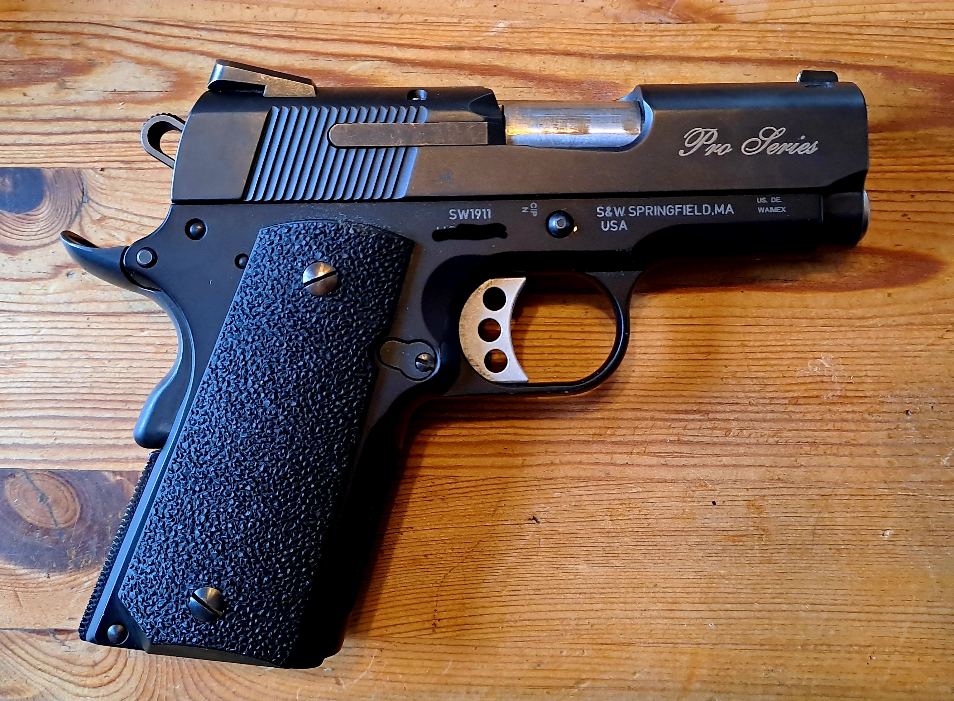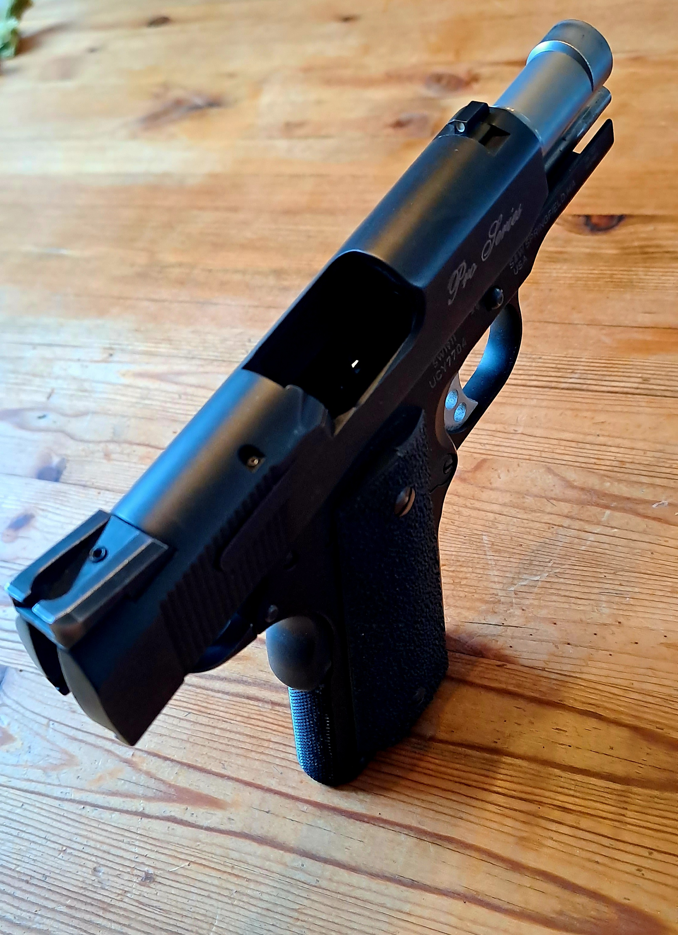 Oförskämt skön att skjuta med! Hanterar 45-oumphen bra trotts att den är så liten och lätt. Skjuter där man pekar. Väldigt kul på stål och grejer som flyger. Men nuförtiden skjuter jag nästan bara magnum och den får flytta till fördel för annan kanon. Men det satt hårt inne!!