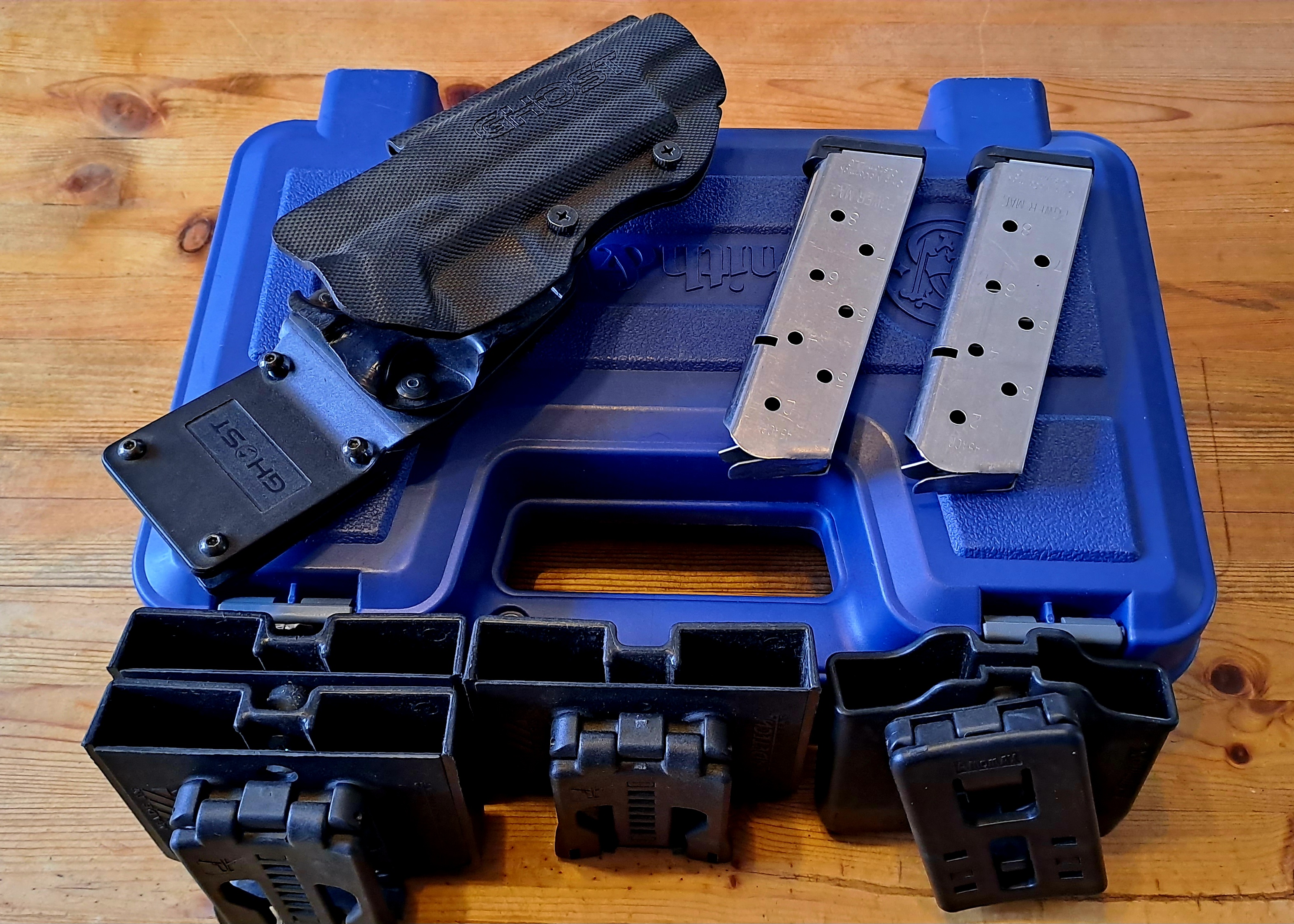 Magghållare, två extra 8-skotts magasin och ett ghost-hölster följer med. Även lite hylsor och ammo kan säljas till men de skickas inte.