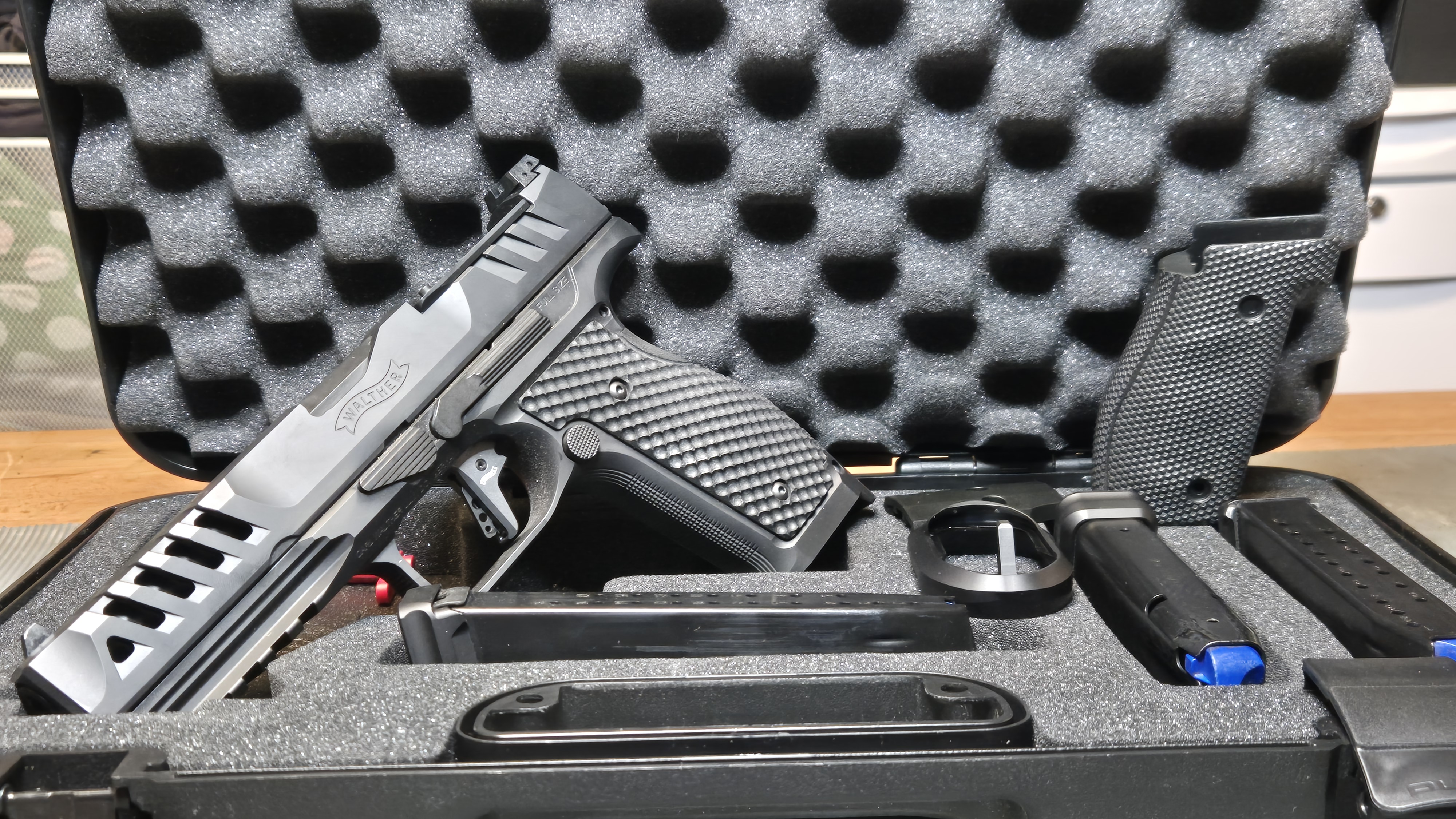 Sitter LOK Grips Palm Swell Bogies grepp samt Walthers platta för Holosun/RMR/SRO på.