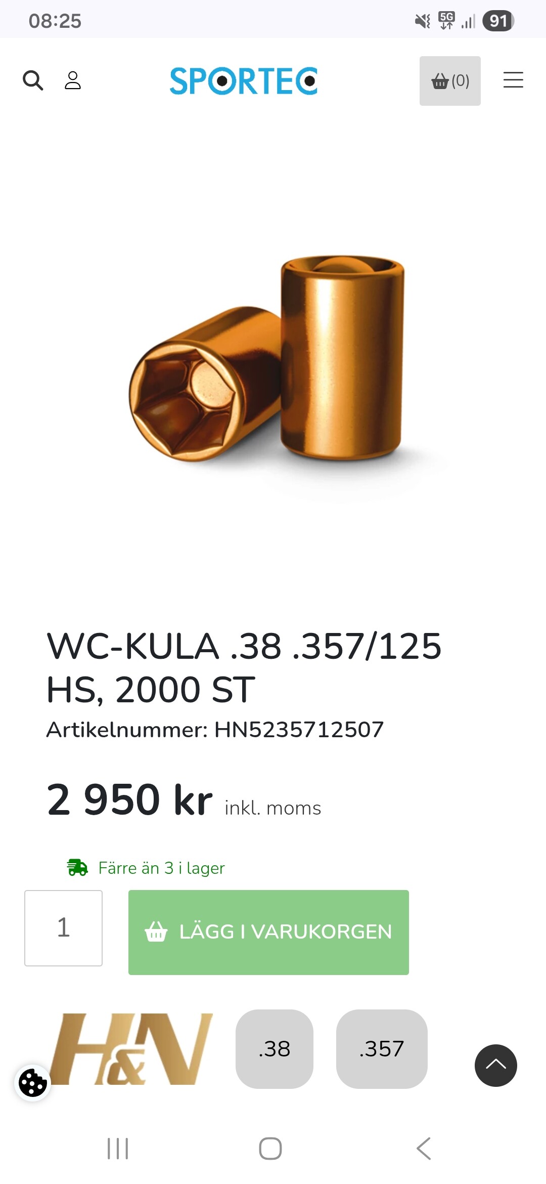WC-kula .38 .357/125 HS, 2000 st säljes.