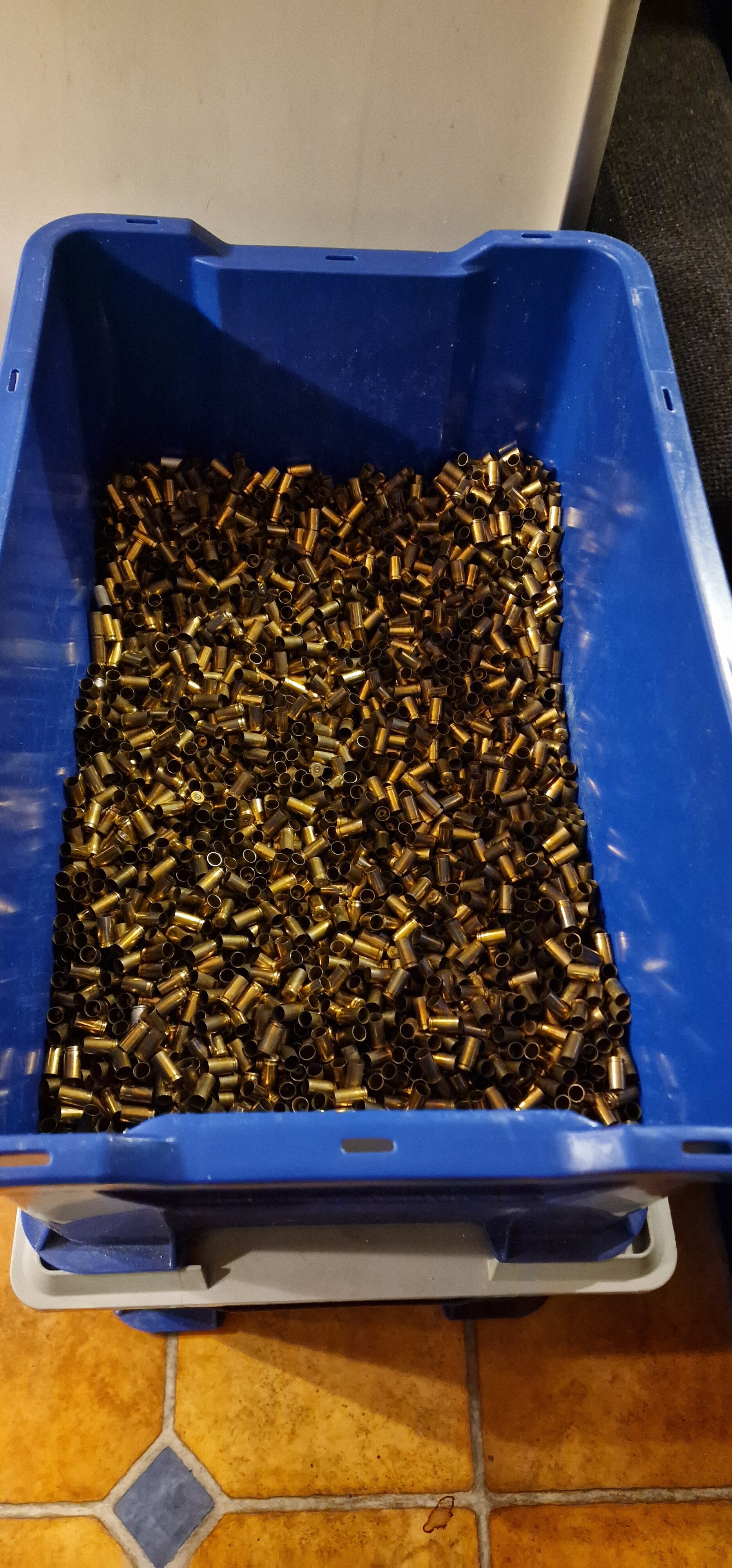 Jag har ca 34kg 9mm hylsor, över 8000st, i bra skick till salu då jag ej kommer ladda dessa.