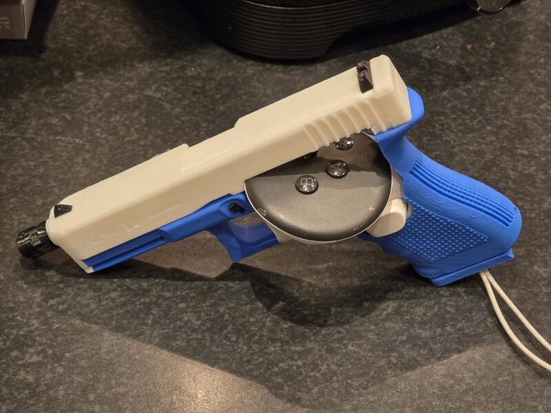 Säljes: Meta Quest 2 med 2st pistoladaptrar (vä/hö. G17) för t ex Ace Virtual Shooting. Rabattkod för 10% på Ace medföljer.