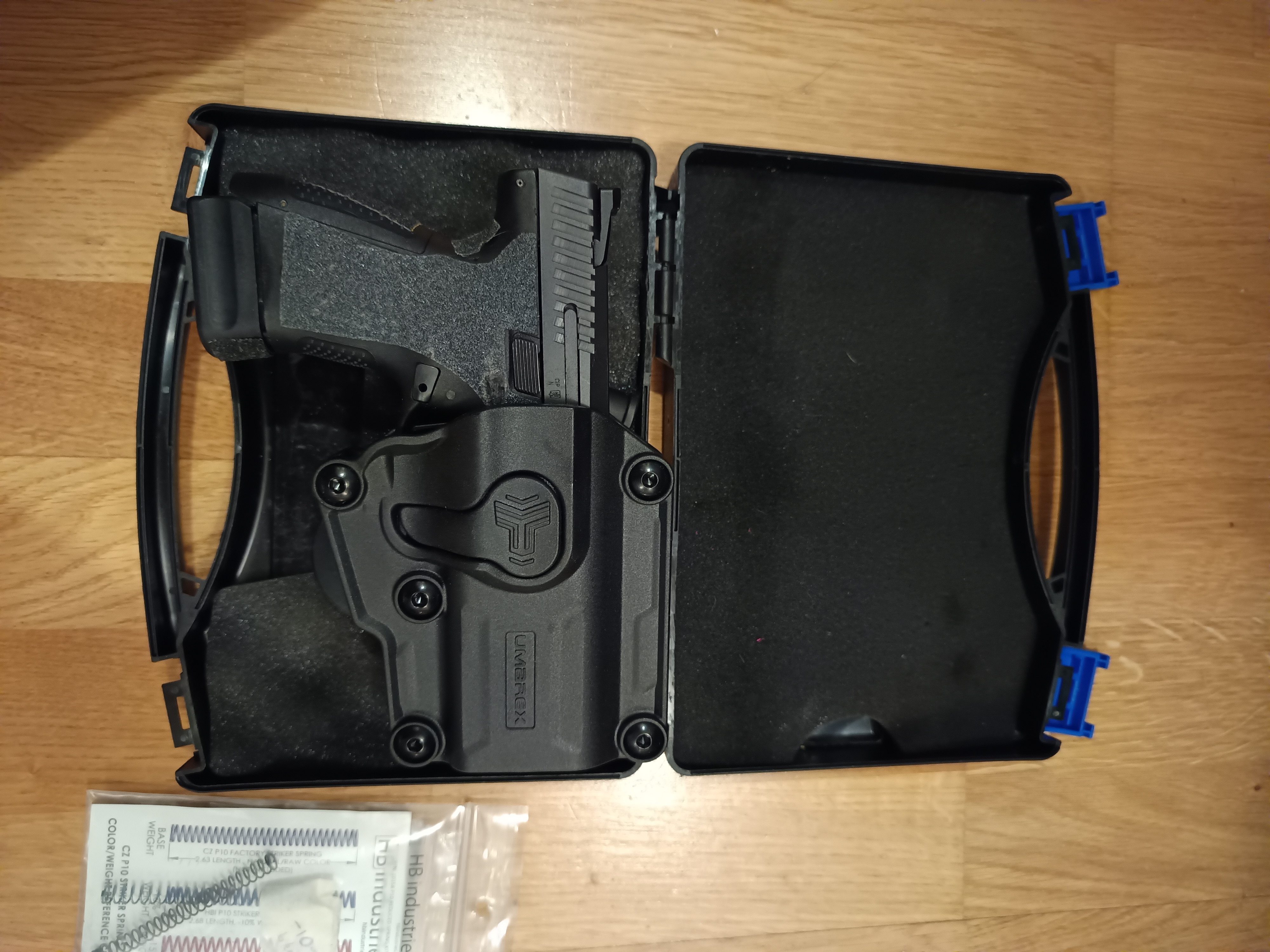 Kommer med CZs originala koffert (jag har den i mitt förråd, kan ta fram om du vill ha bild på den) + HBI striker spring + reservfjärdrar + hölster