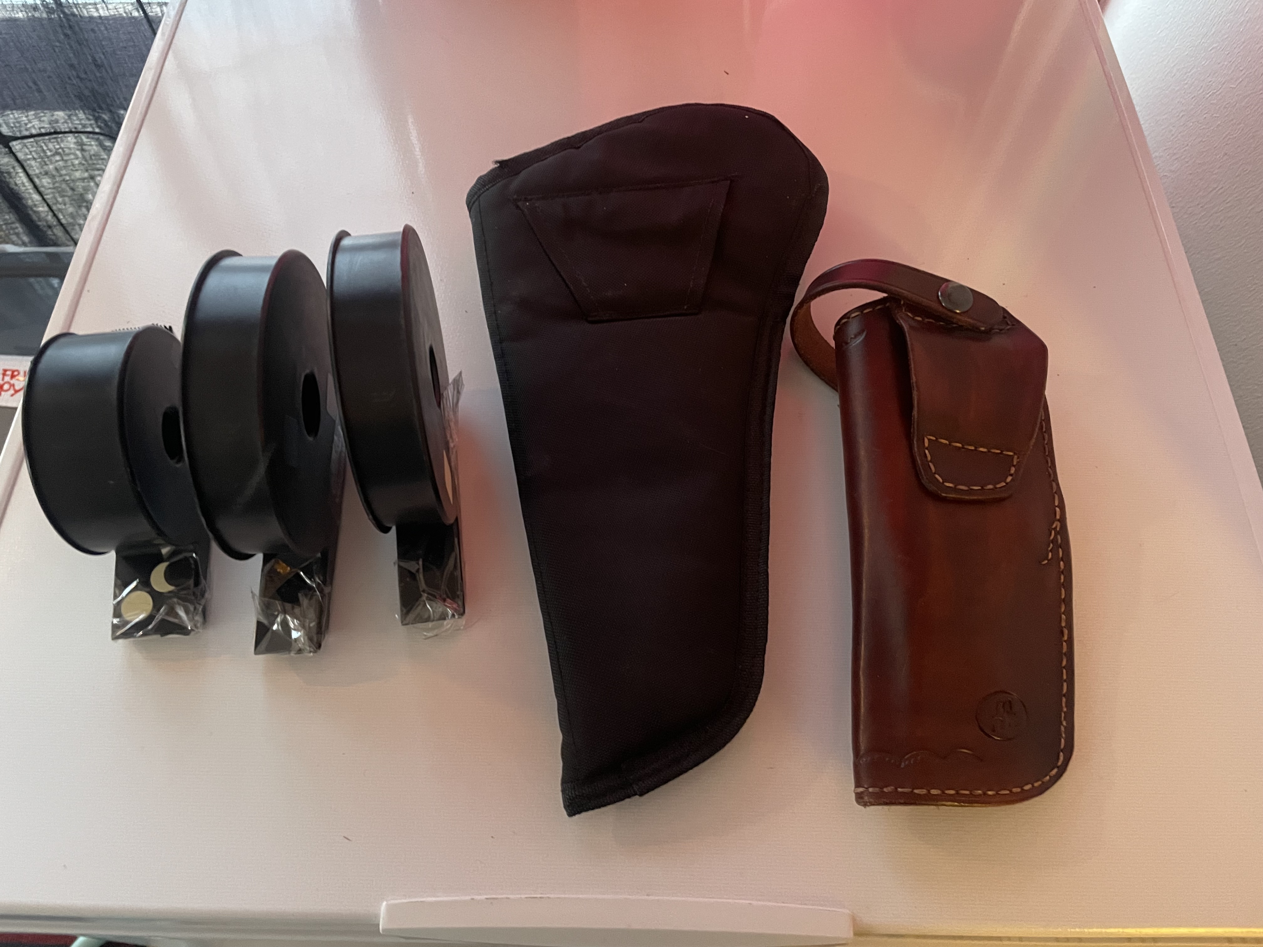 Hölster i läder specialsytt för Benelli mp90, knappt använt, tyghölster från Staffans vapen helt nytt. Dispenser för täcklappar enligt bild. Allt tillsammans för 1600kr. Finns i Vallentuna