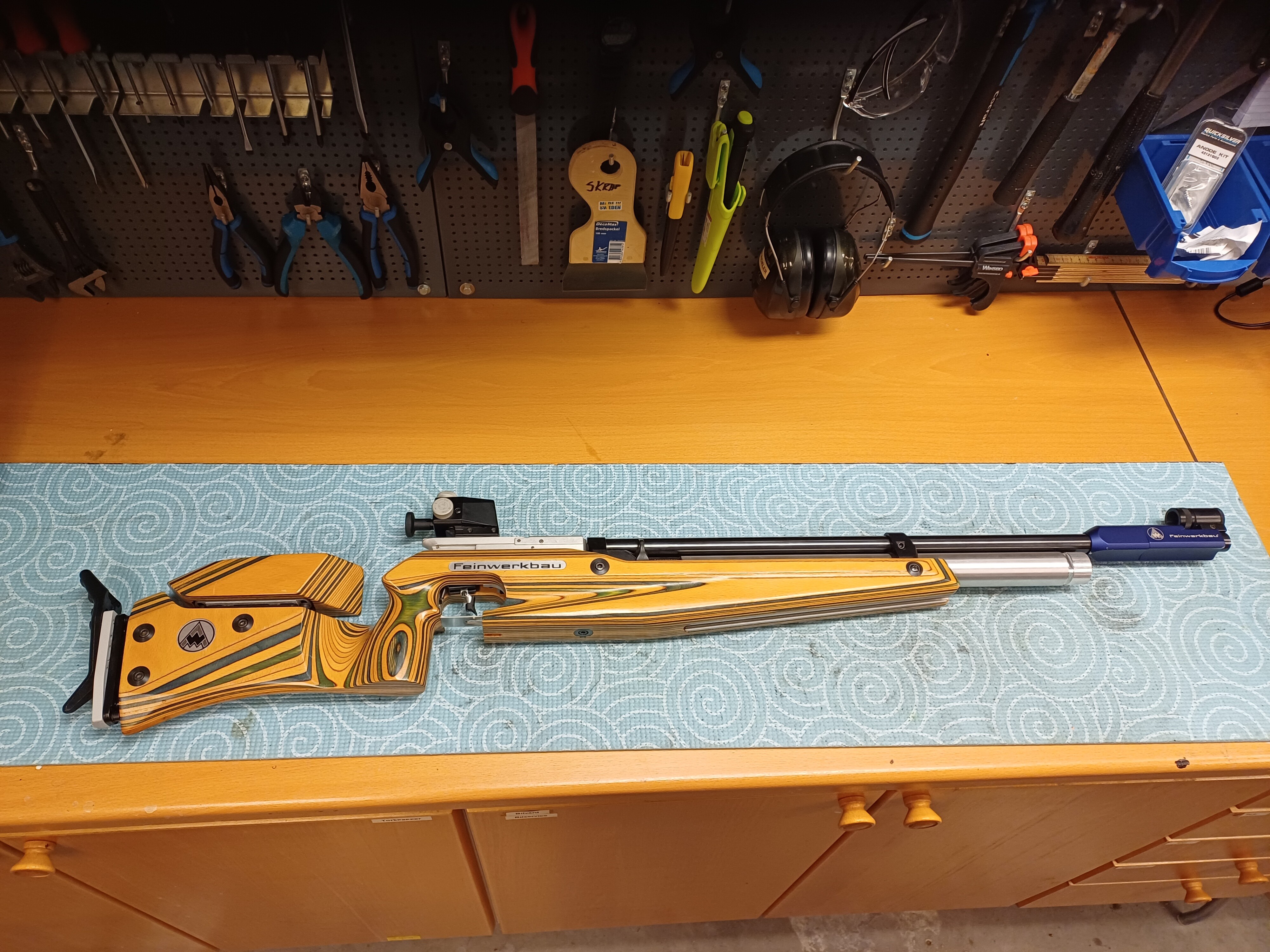 Feinwerkbau P70 luftgevär säljes. Väldigt fint skick. Lufttuben är daterad januari 2023 så godkänd i åtta år till.