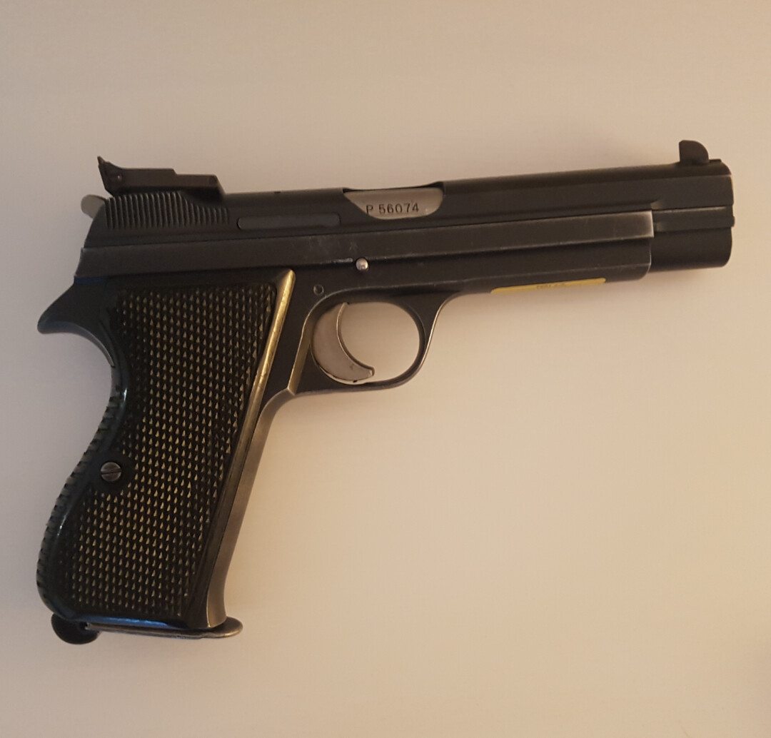 Sig neuhausen p210-6 i gott skick från 50-talet med 5" pipa och 1 magasin. Sikte ställbart, trycket krispigt och levererar 10or på löpande band. Inga sprickor eller modifierad stomme. Finns i södra Stockholm.
