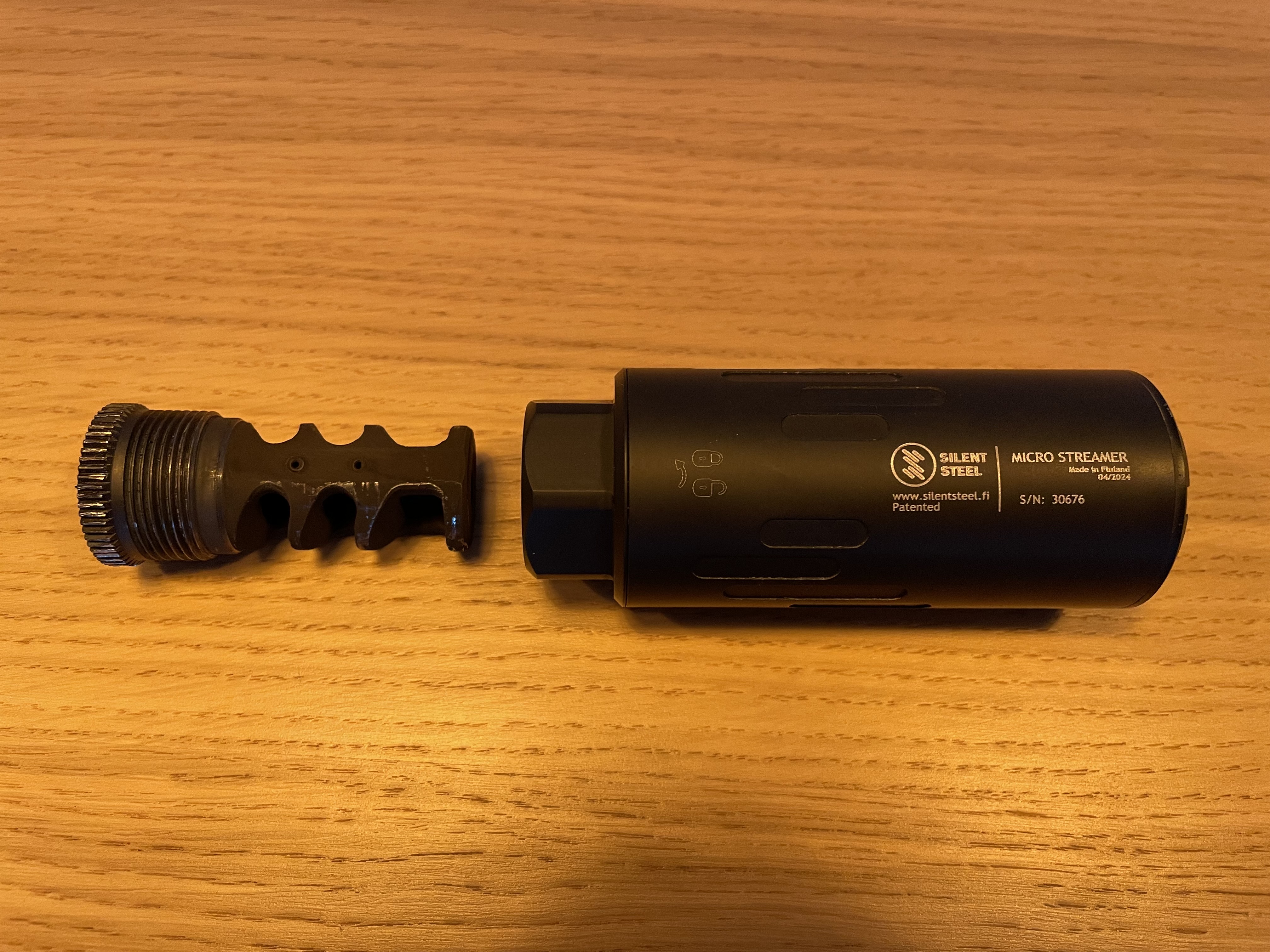 Säljer en ljuddämpare och en kompensator som suttit på en AR15.