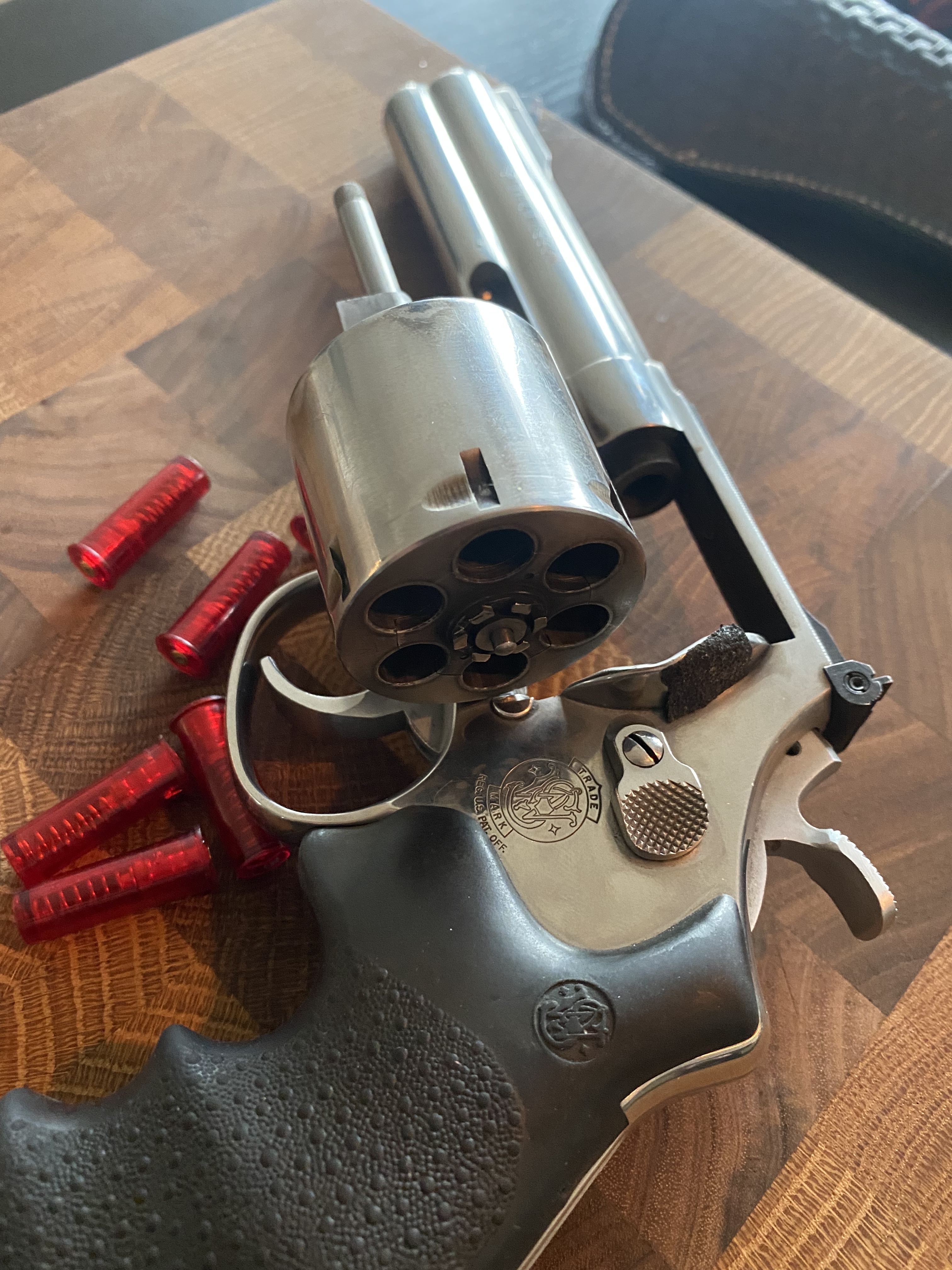 Smith & wesson 627-0 357/38 special, i grymt skick 5” pipa med ett SA trycke på 1390 gr. Samt skönt DA trycke. Inga som helst skador eller skavanker på denna revolver. HMK hölster samt 4 speedloader o 6 st klickpatroner. 10.500:-